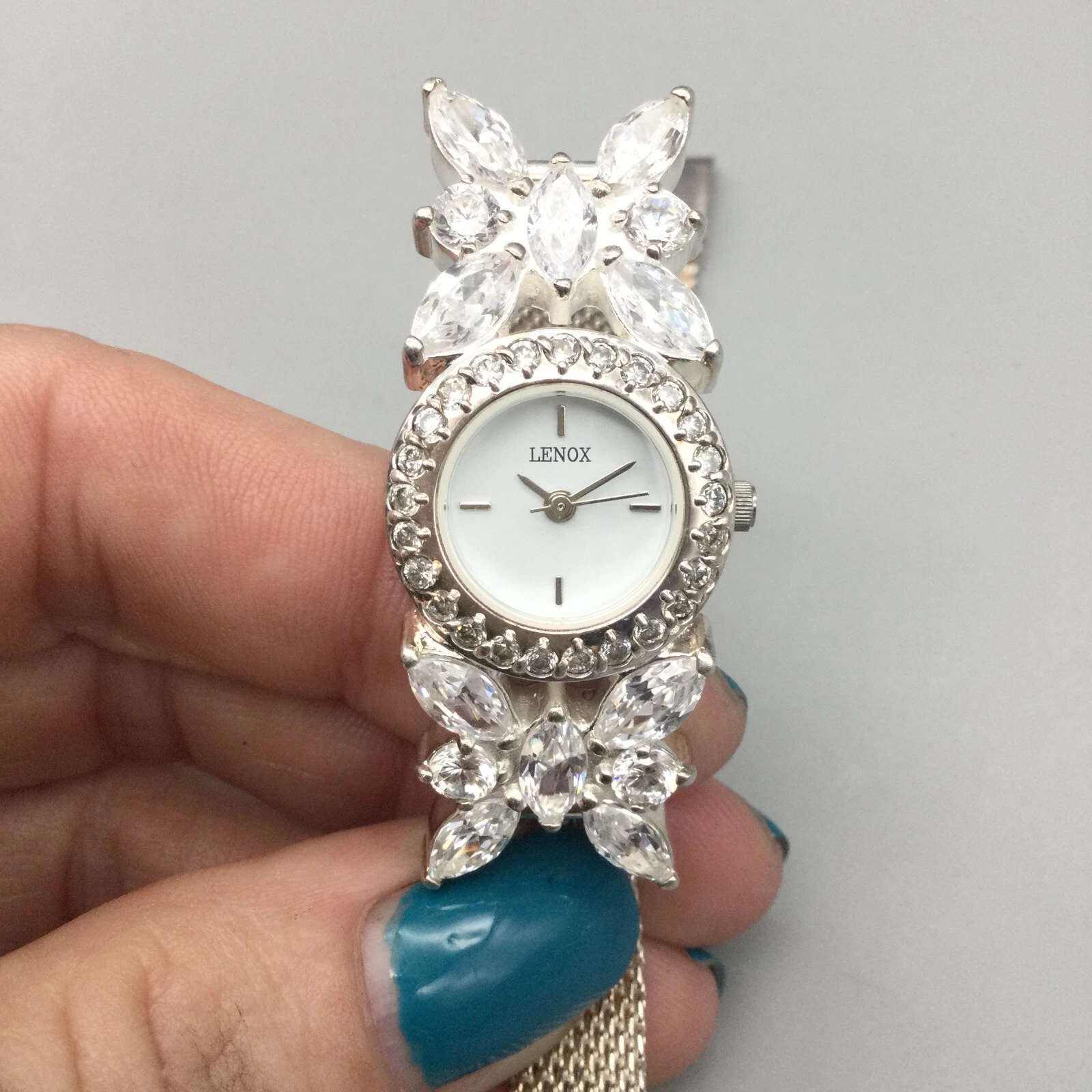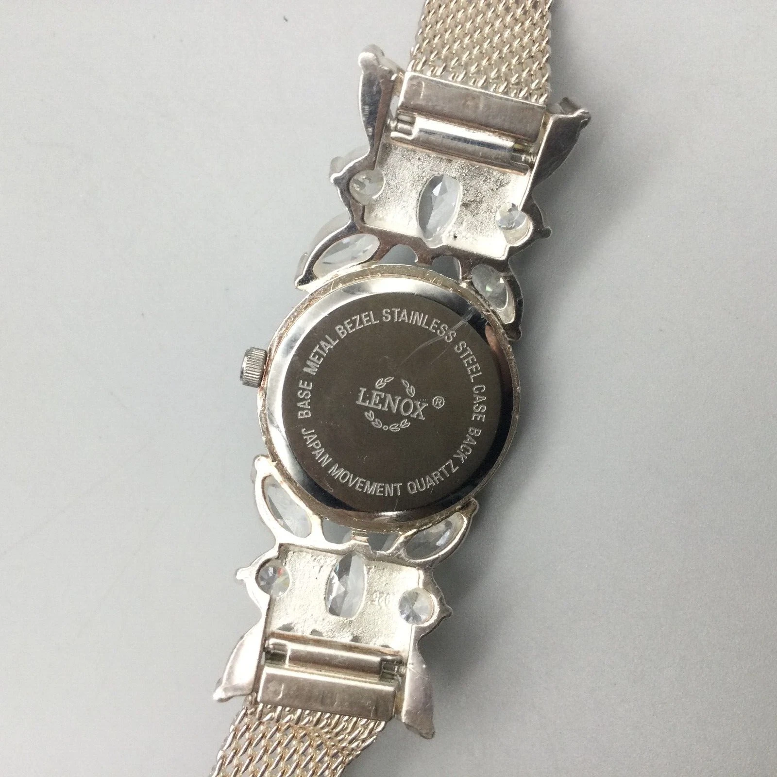 Lenox Crystal Butterfly Watch Women 20mm Sterling Silver Case New Battery 8.5"
