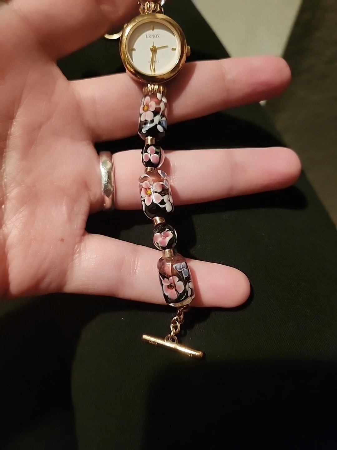 Lenox Ladies Sterling & Stainless Steel Glass Beaded Wrist Watch. Needs Battery
