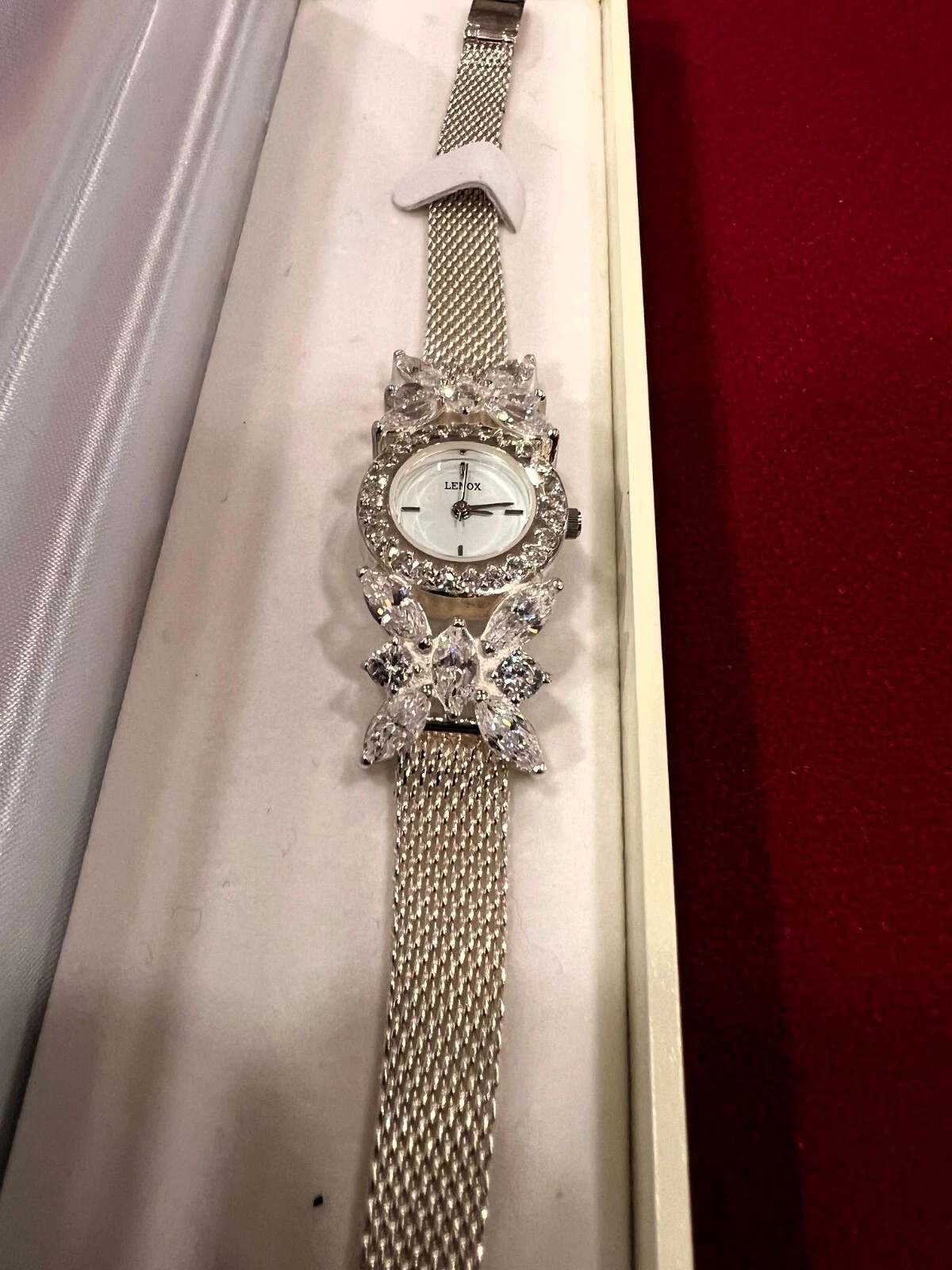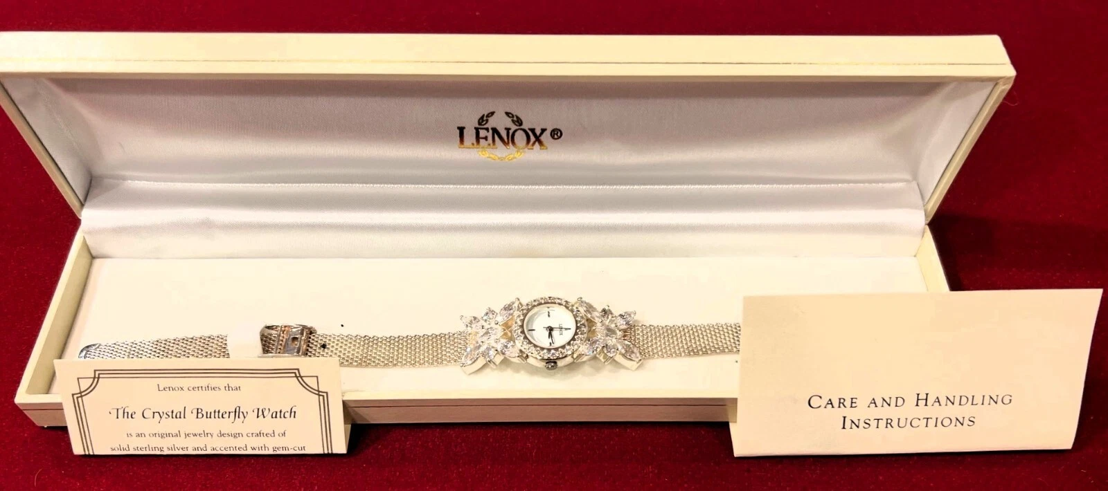 Designer Lenox Sterling Silver 925 Crystal Butterfly Watch Bracelet in Box