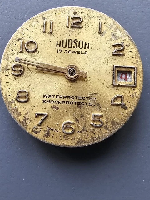 Vintage Rare Swiss Made Hudson 17 Jewels Date Dial Mechanical Watch Movement