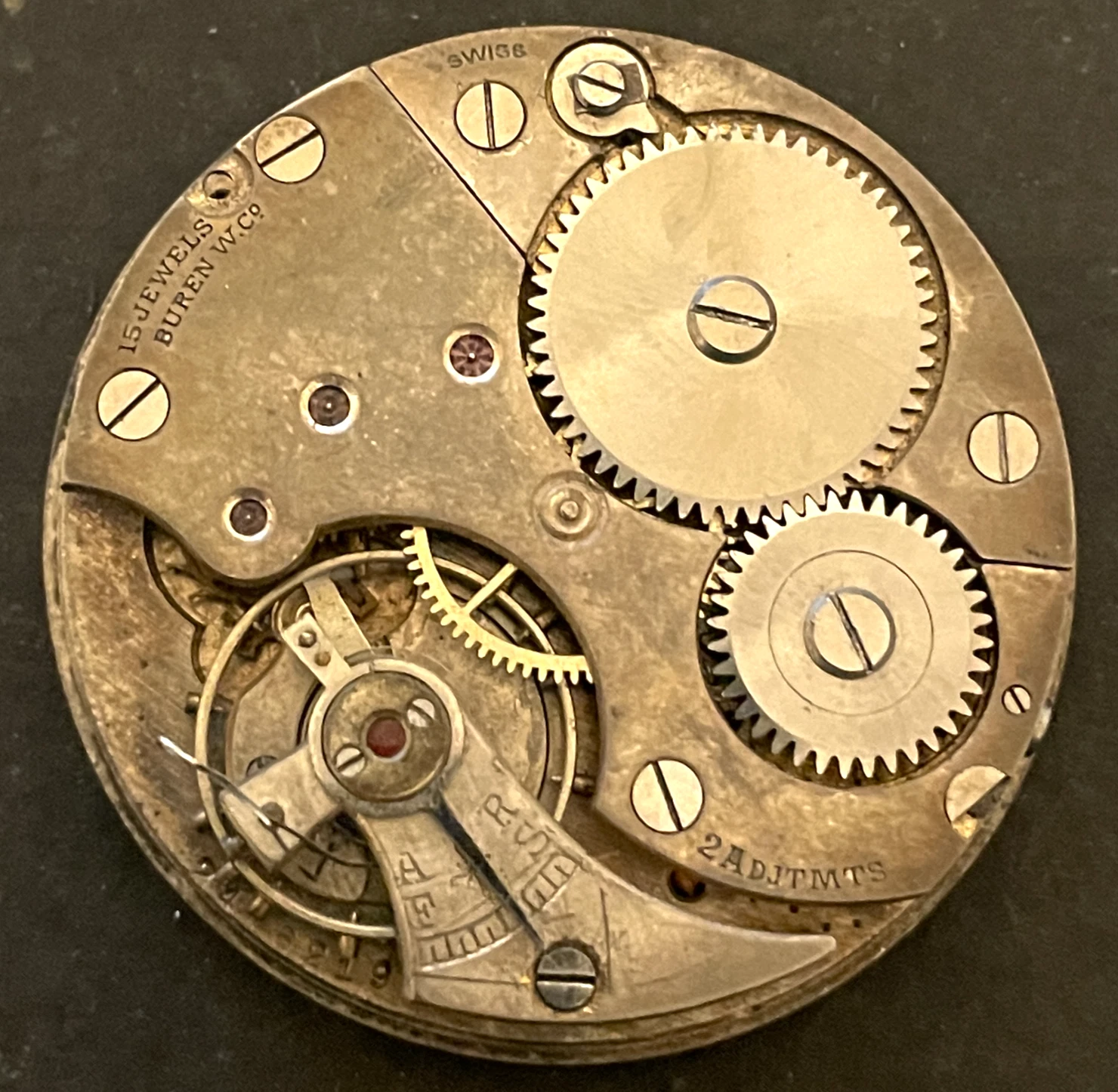 Antique Buren Pocket Watch Movement Parts/Repair 16s 15j Swiss