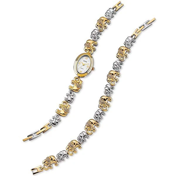 Silver & Gold Plated Elephant Watch & Bracelet Set by Lenox