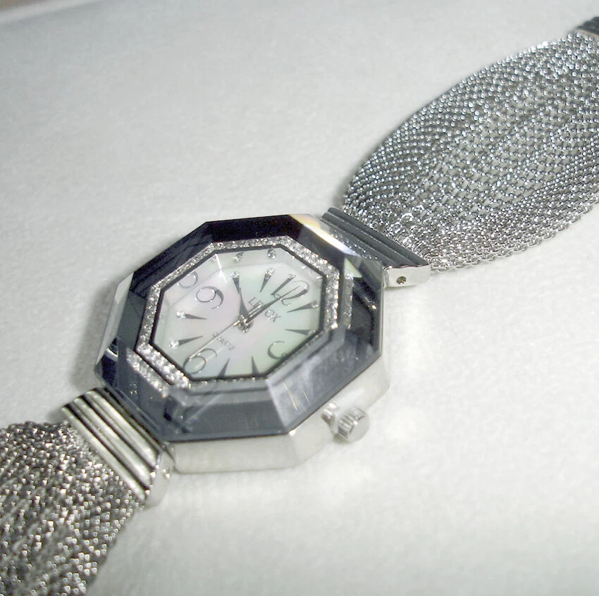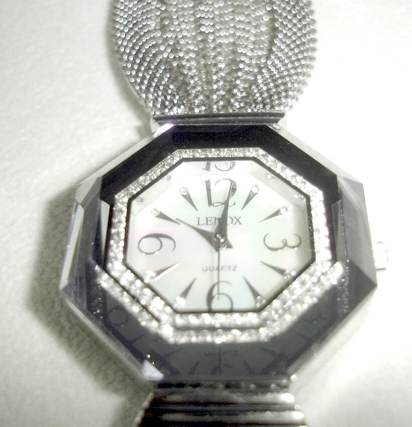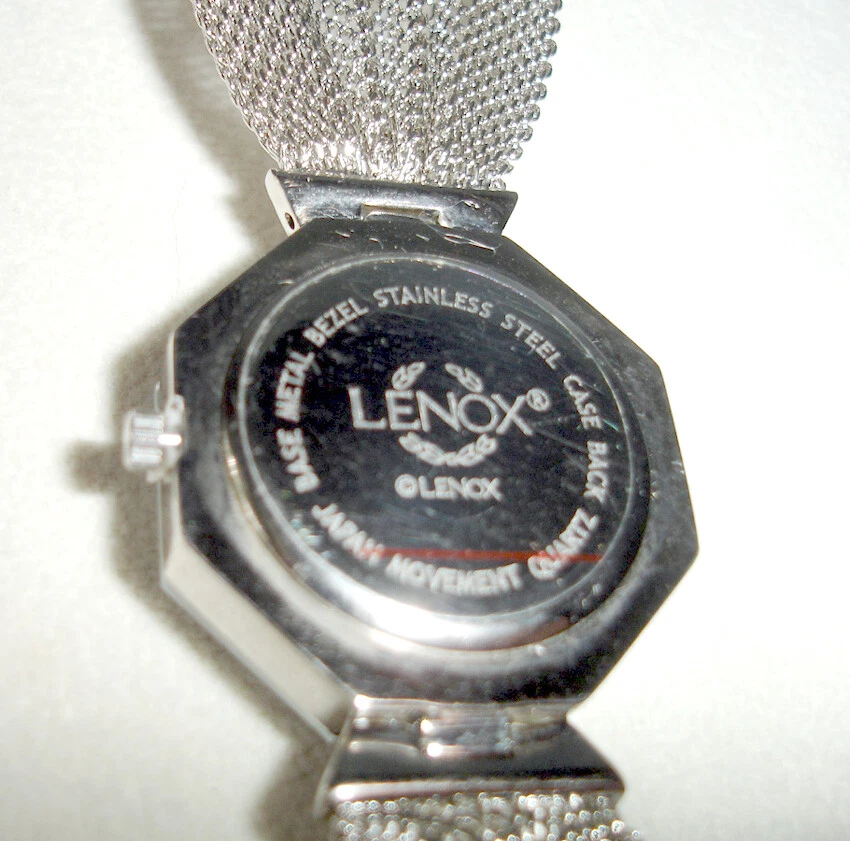 Illusions Mirror Mesh Watch by Lenox Silver Toned W Crystals Quality Quartz