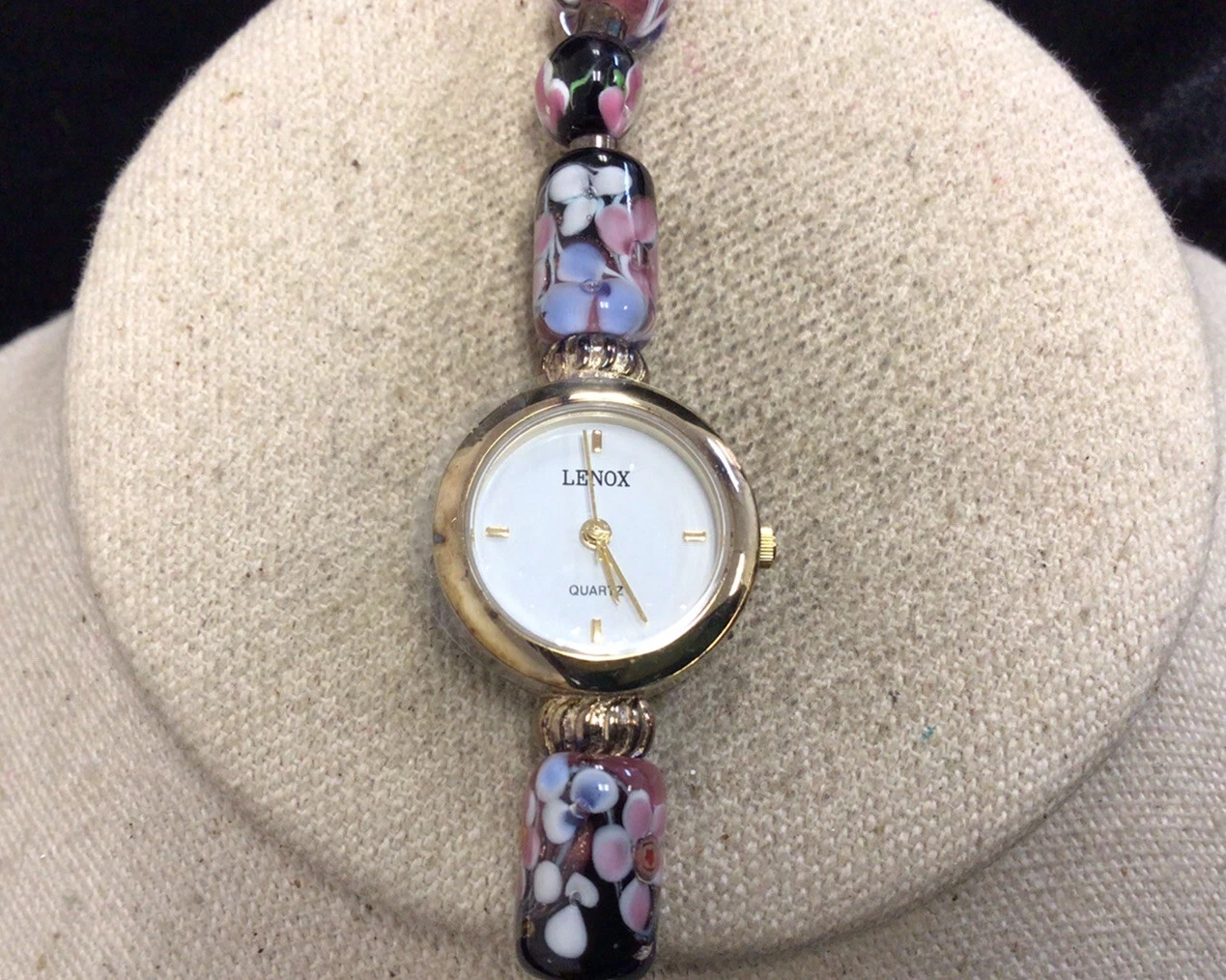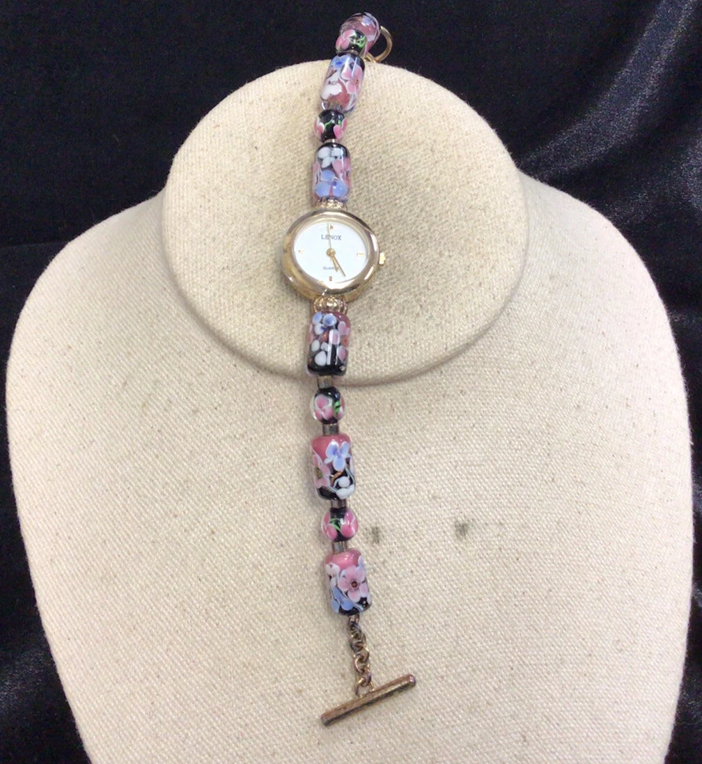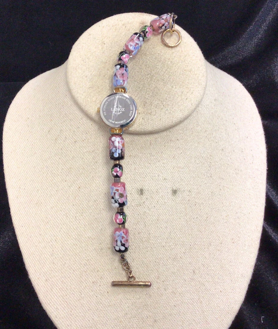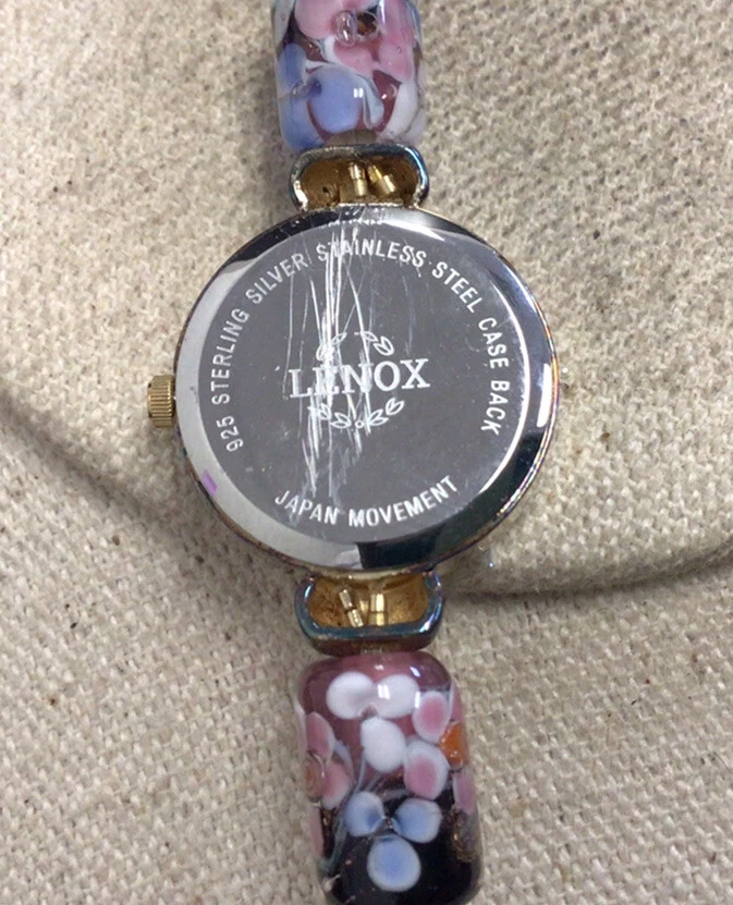 Lenox Ladies Sterling & Stainless Steel Glass Beaded Wrist Watch "As Is" W335