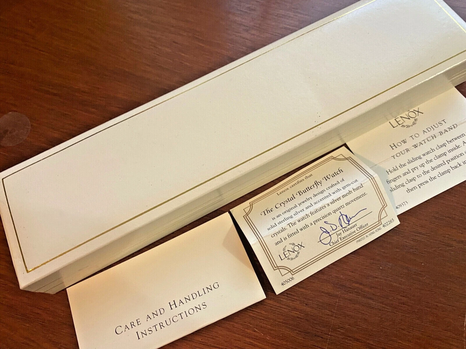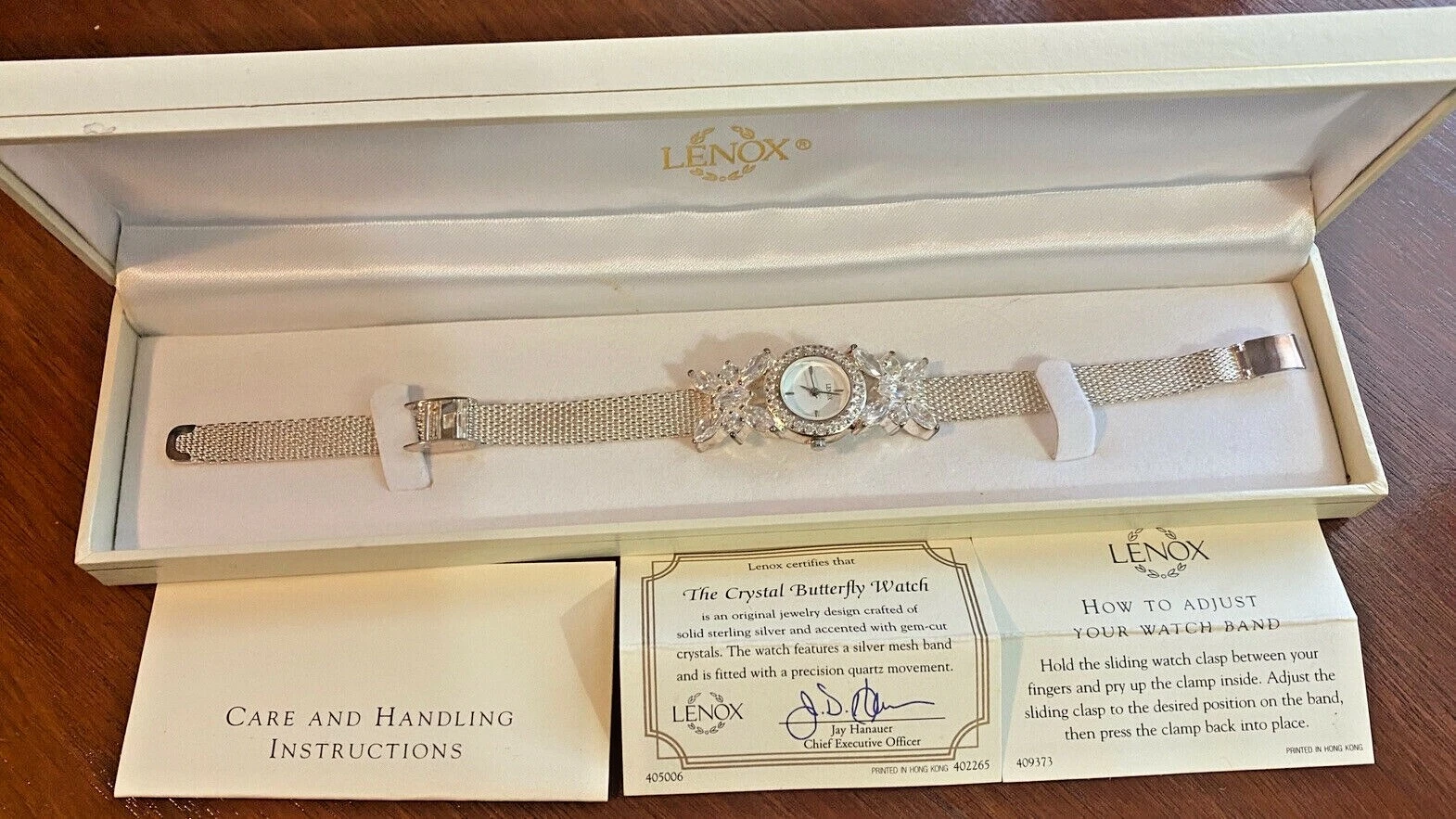 Lenox Sterling Silver 925 Crystal Butterfly Women's Wristwatch w Box & COA