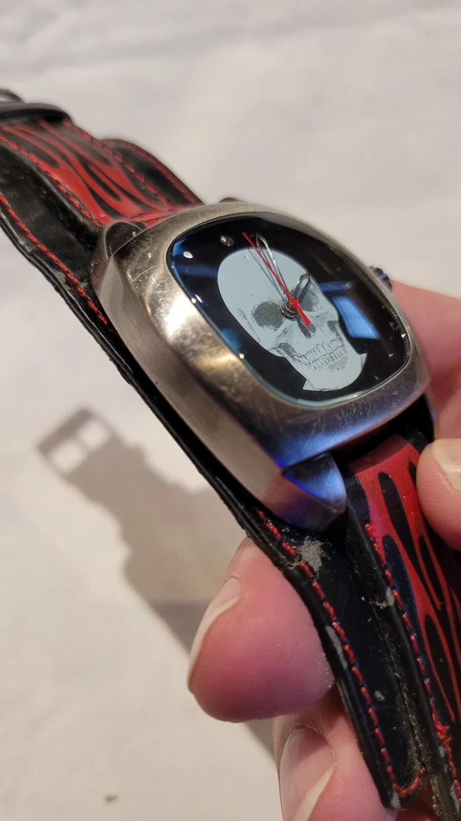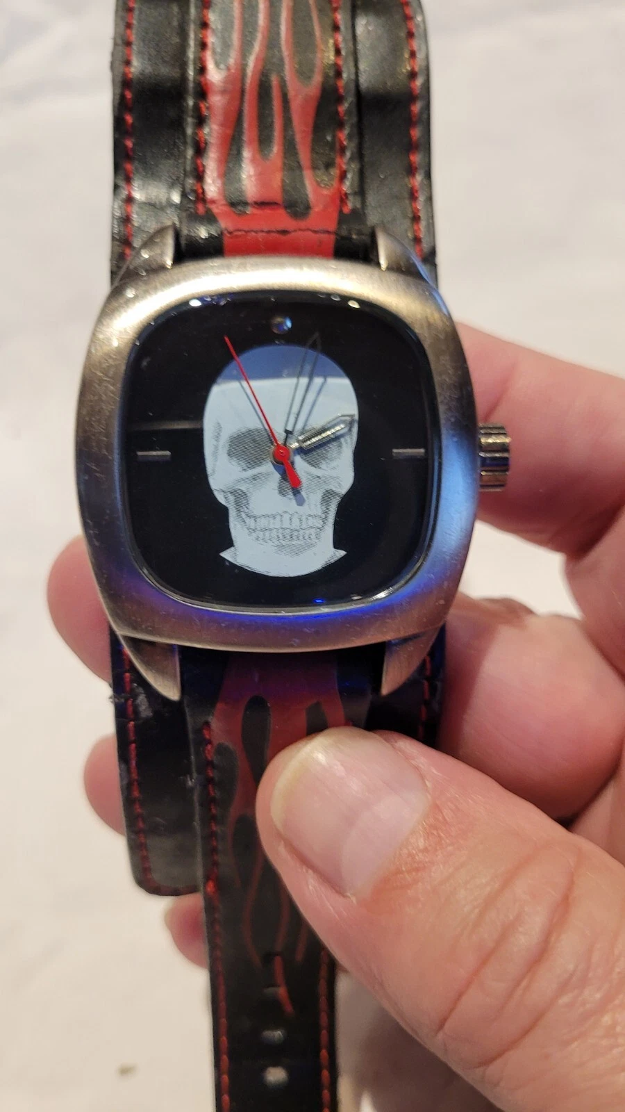 Hudson Skull Wristwatch. Quartz Japan Movement. New battery, works well.