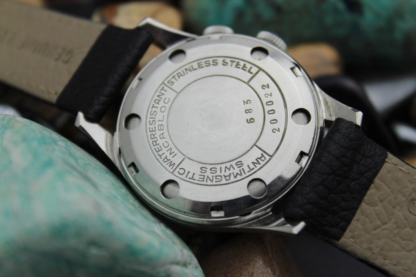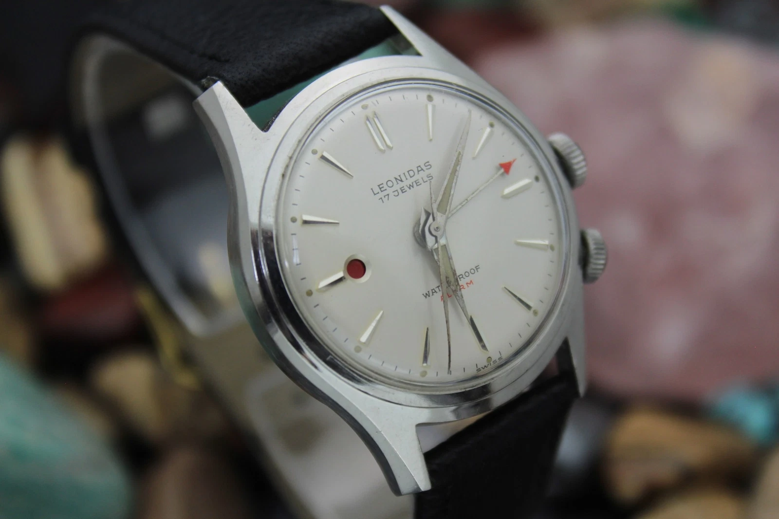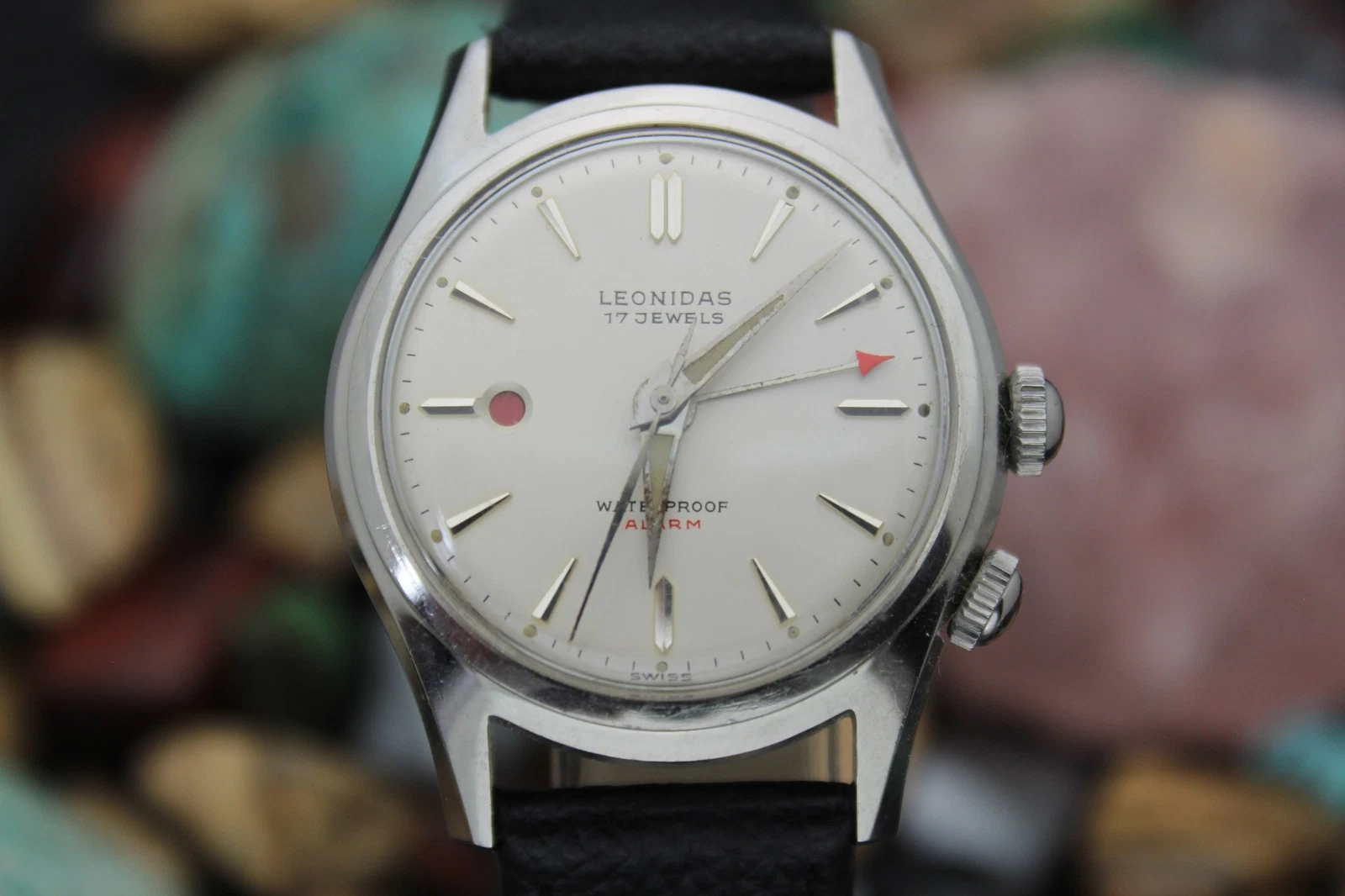 Vintage LEONIDAS Waterproof Alarm 17 Jewel Stainless Steel Men's Watch