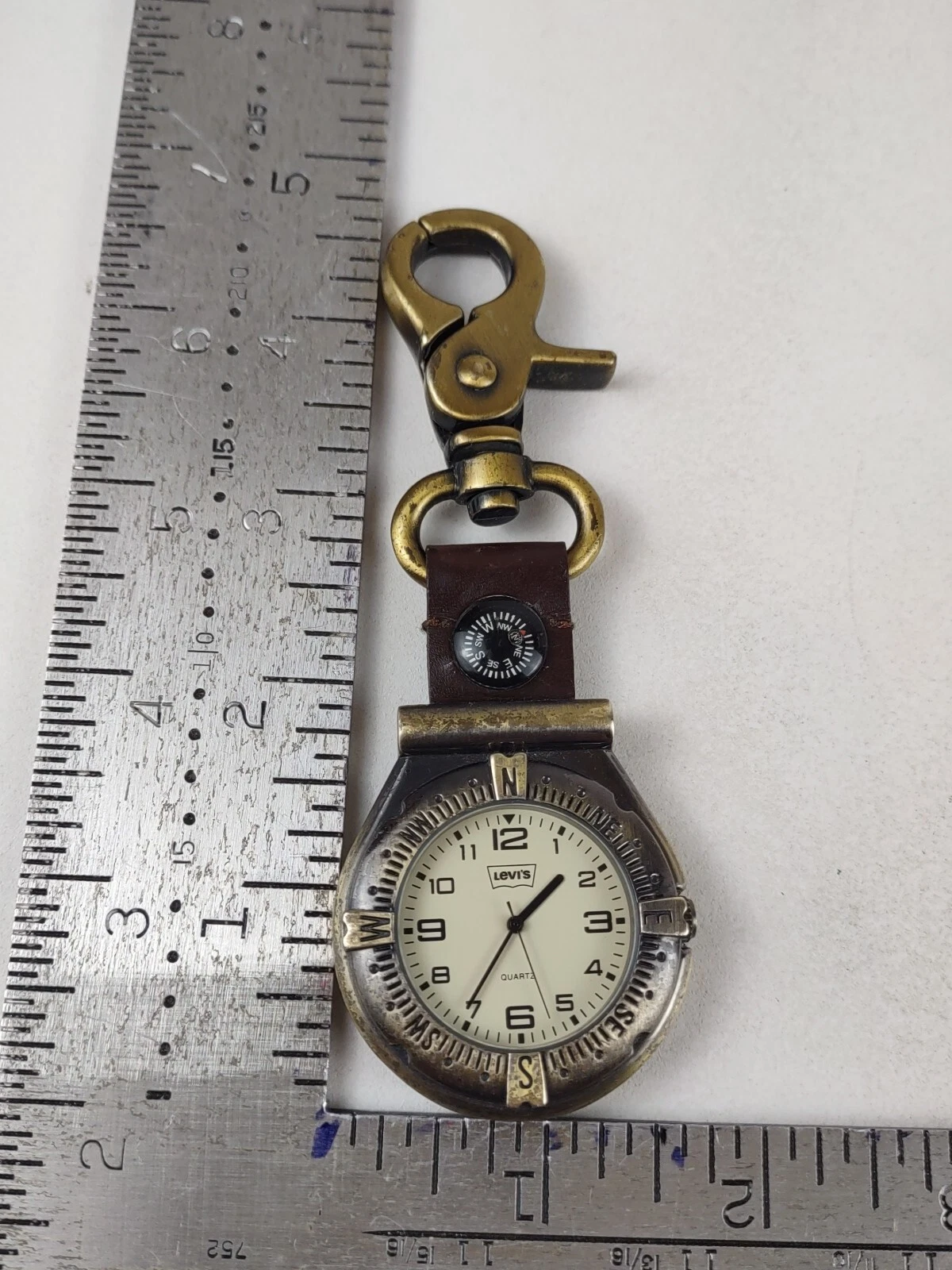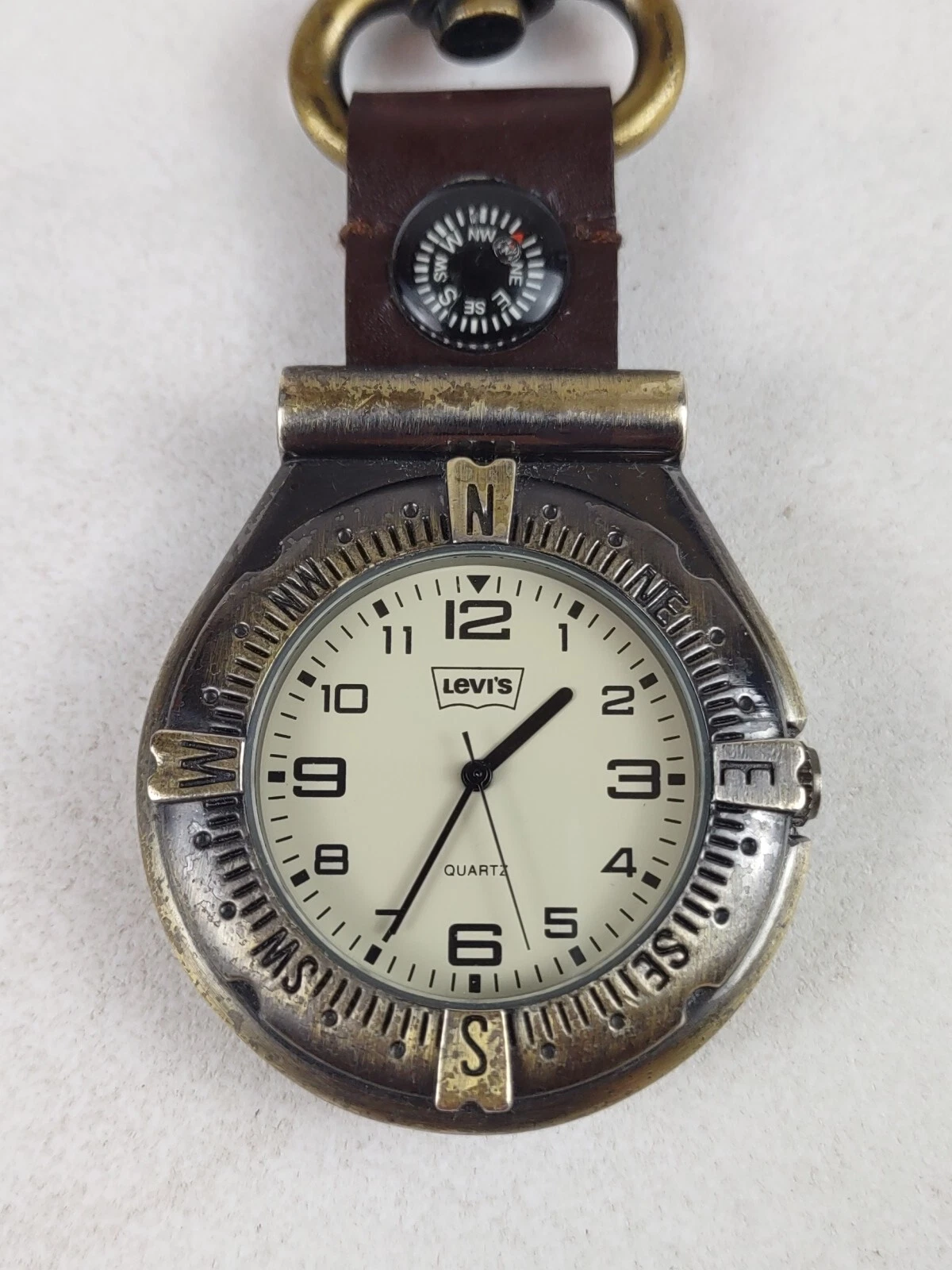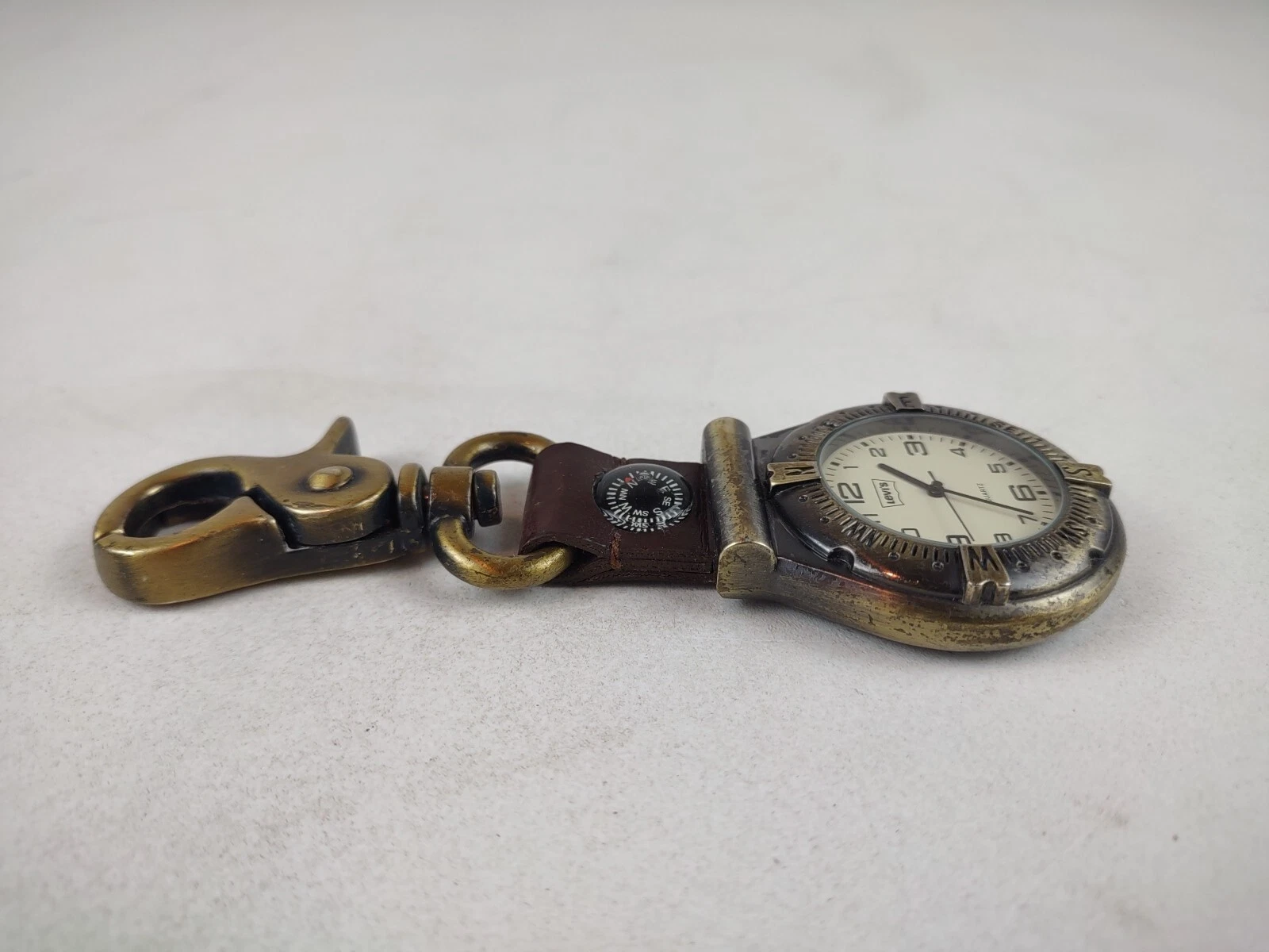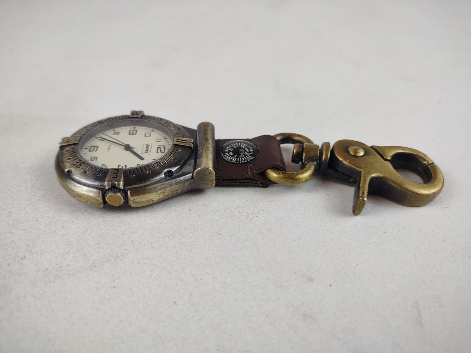 Vintage Levi's Carabiner Pocket Watch Men Gold Tone Compass - New Battery