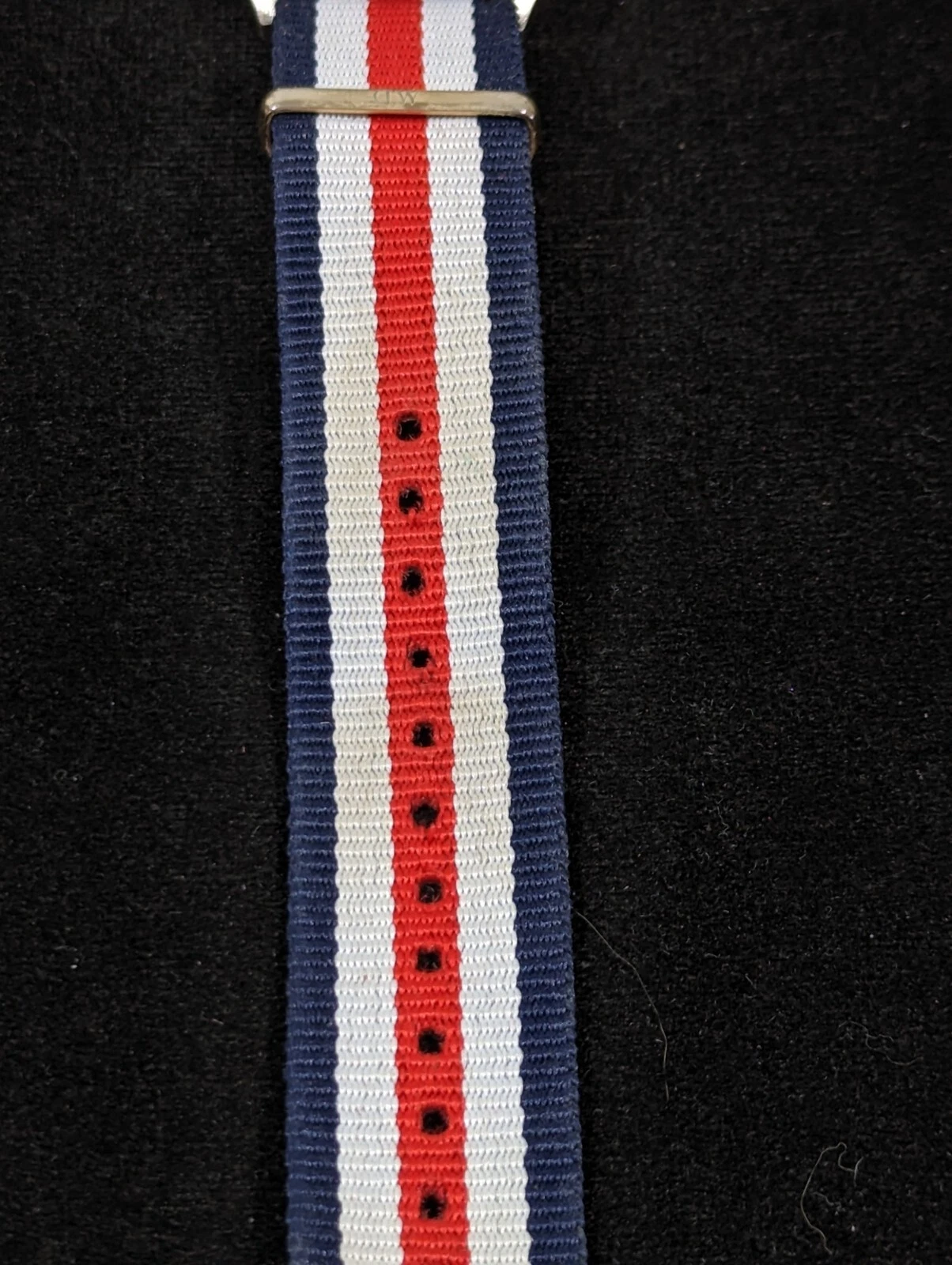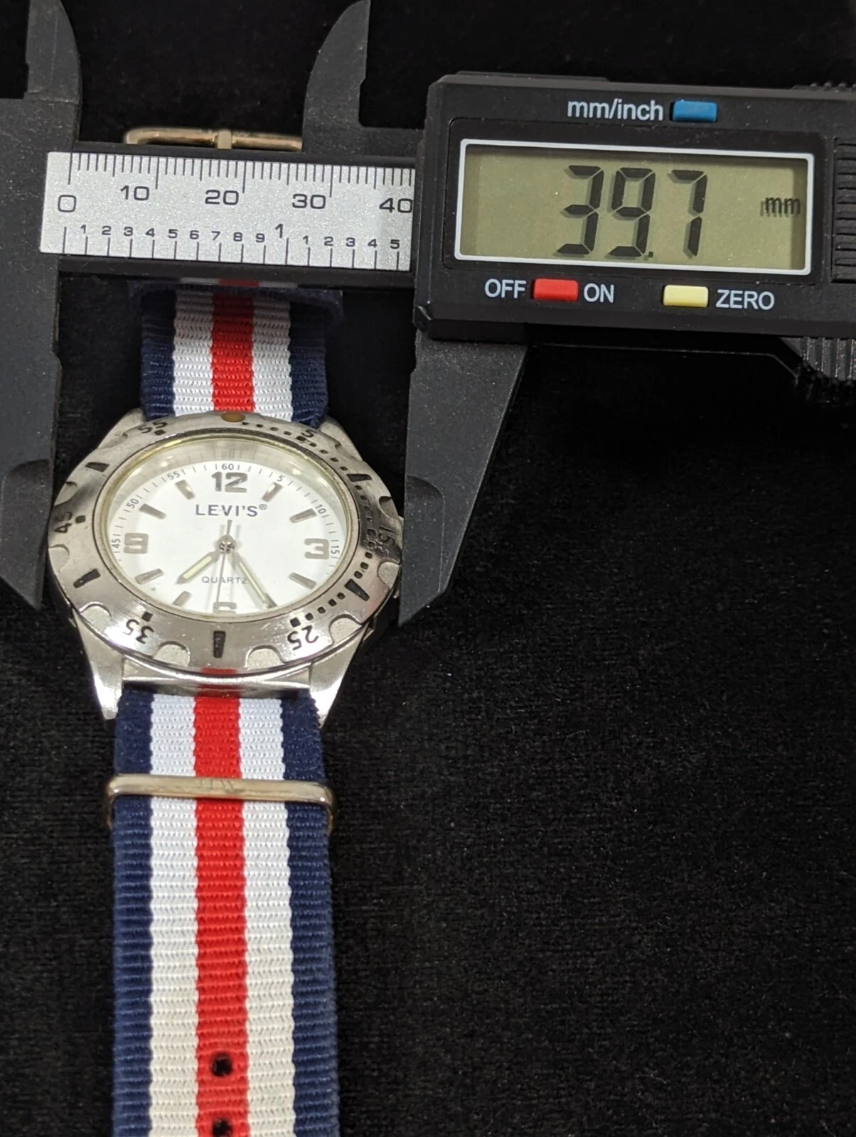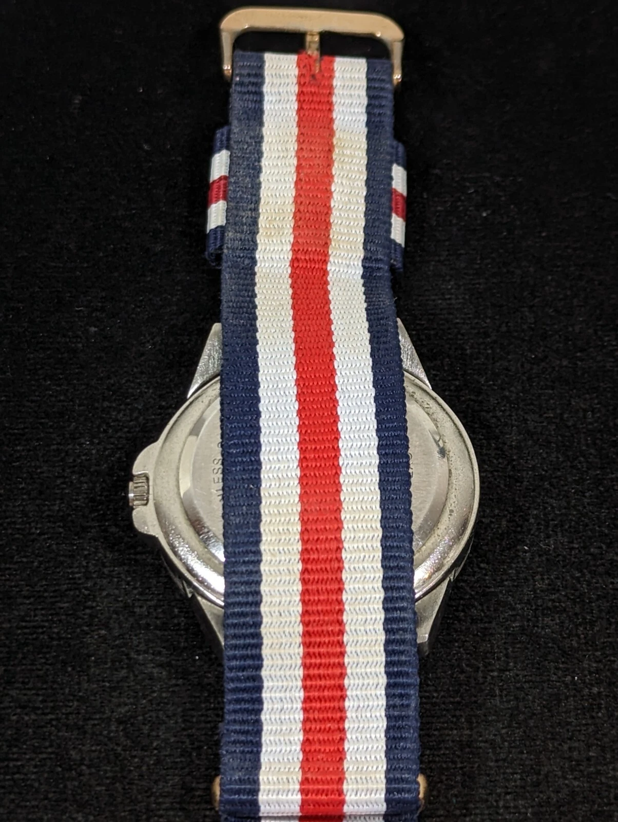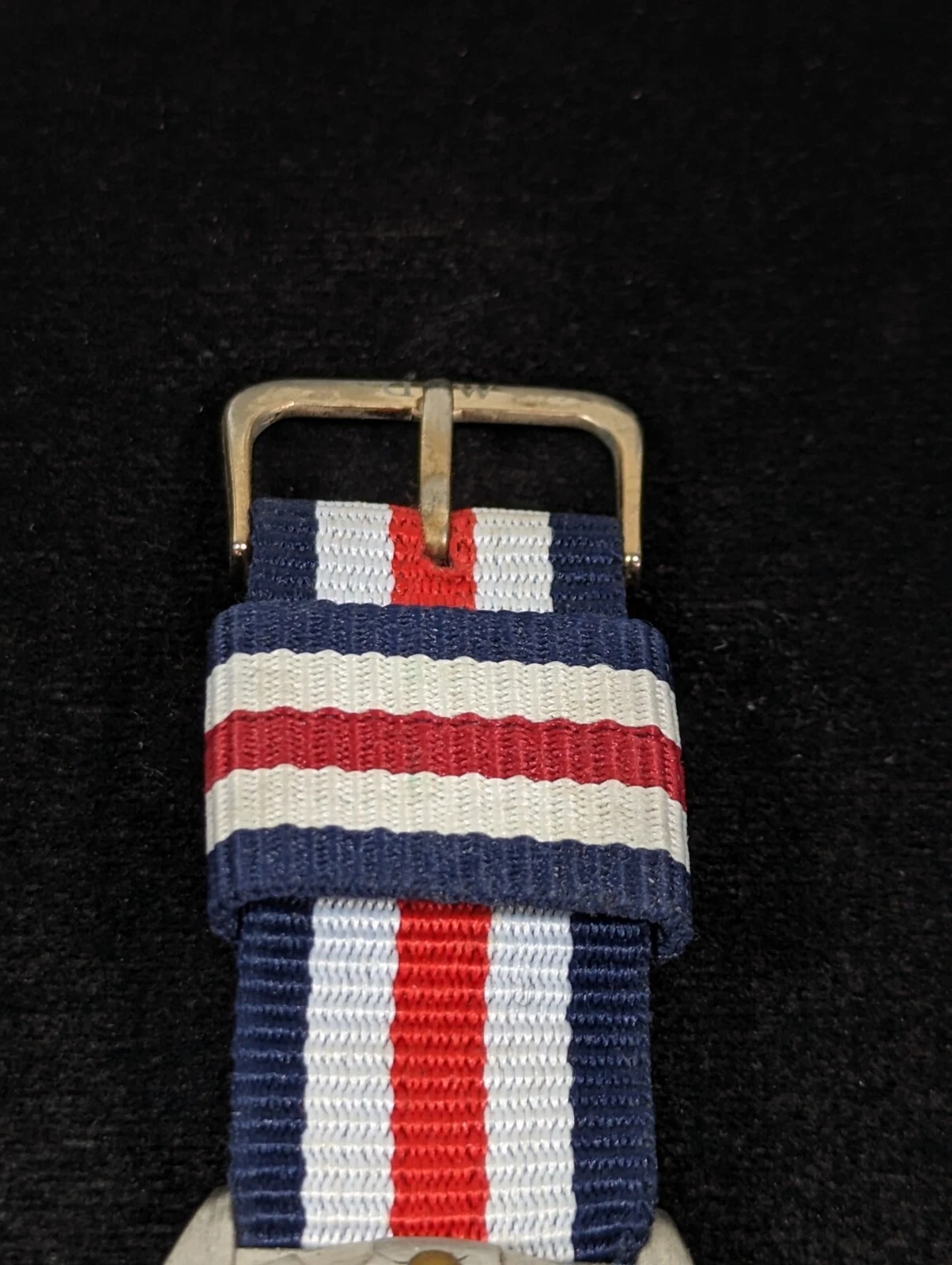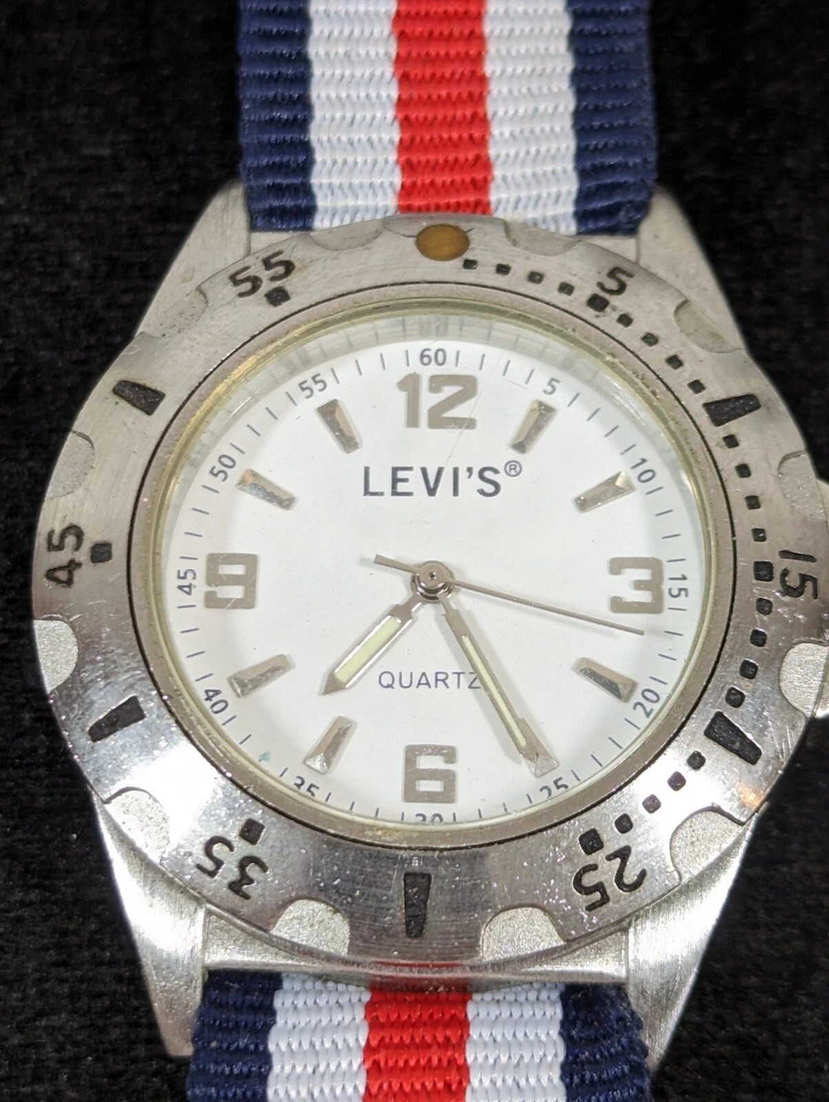 Levi's White Dial Round Silver Tone Case Red White Blue Band Watch