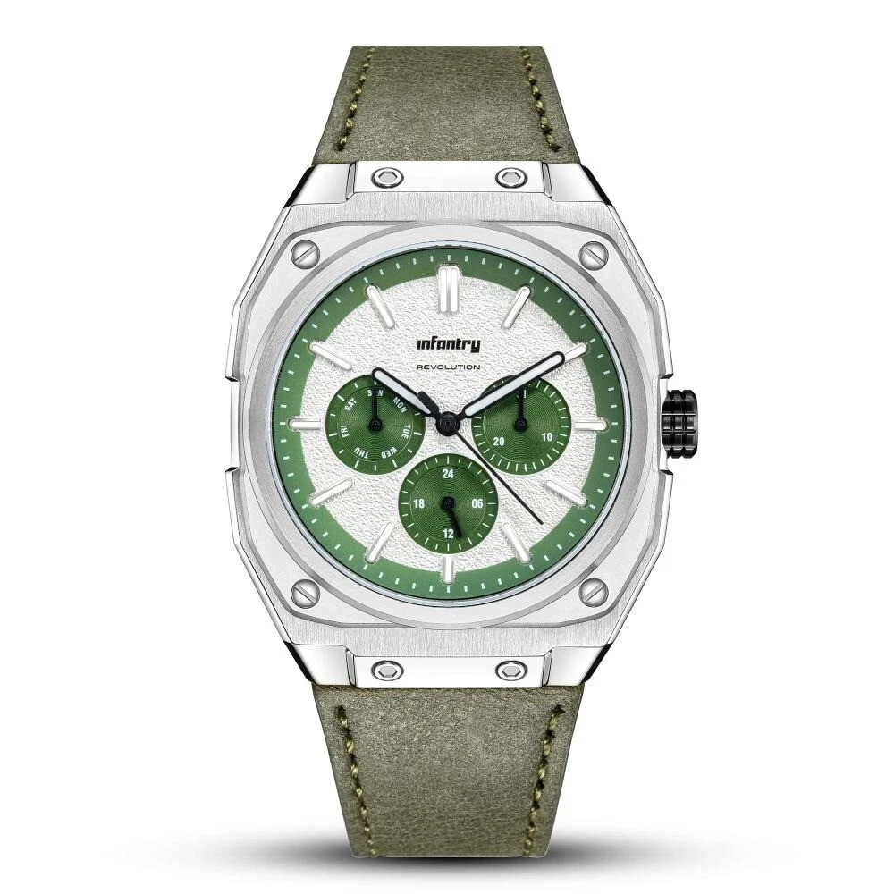 Infantry MOD 42 Modular Watch Club Green Leather Strap Men's Watch MOD42-PND-GRN