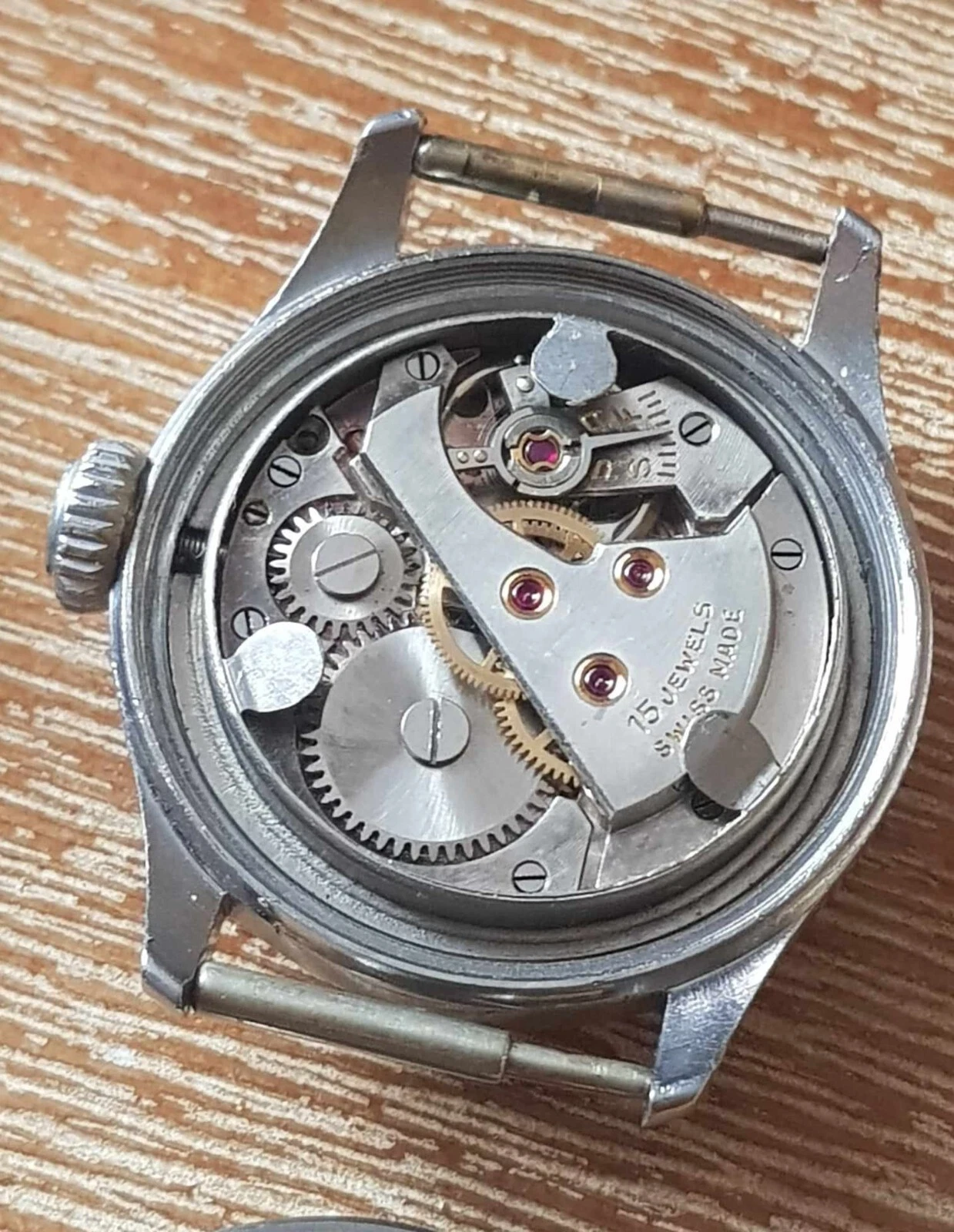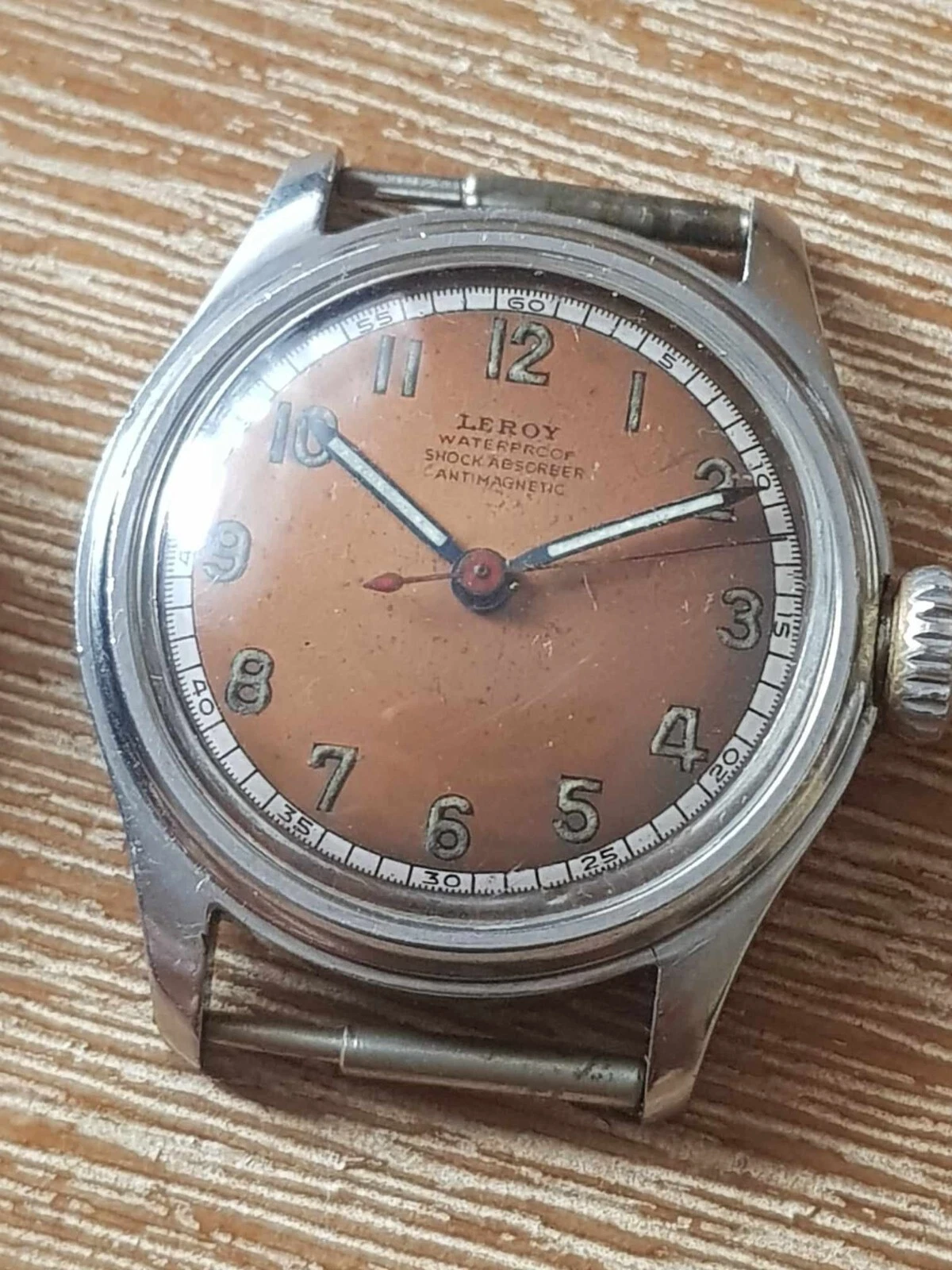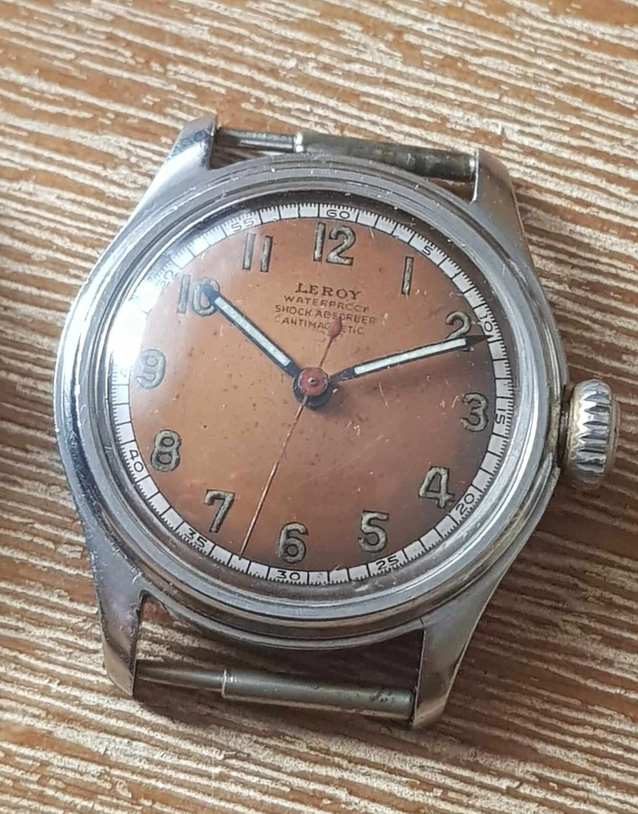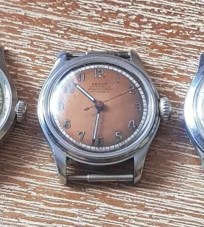 Vintage Leroy WWII era Military Style Steel Watch Tropical Two Tone Dial