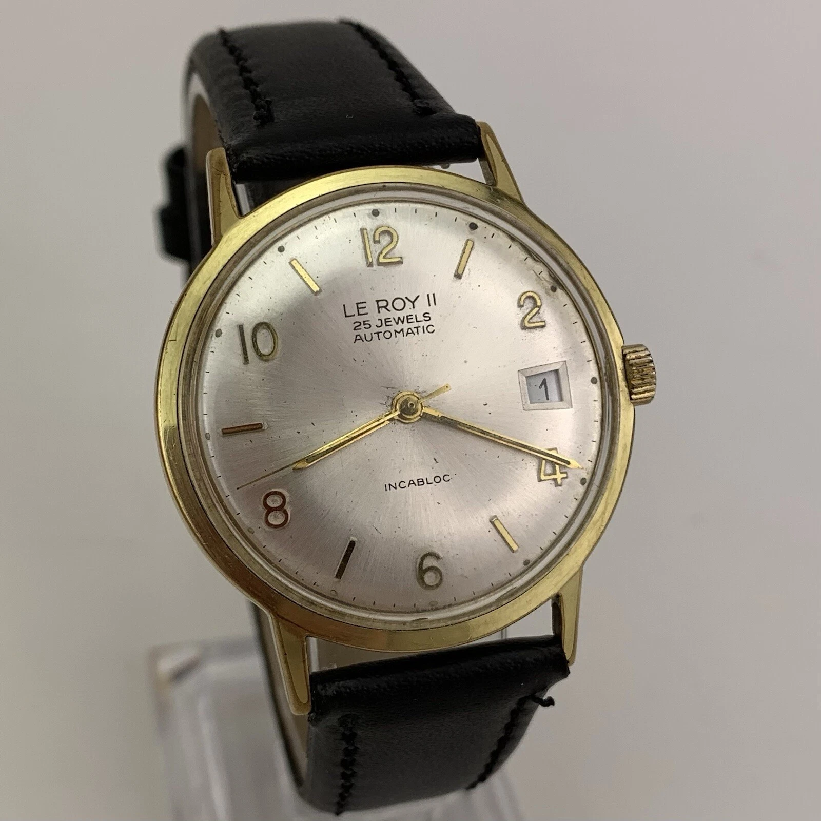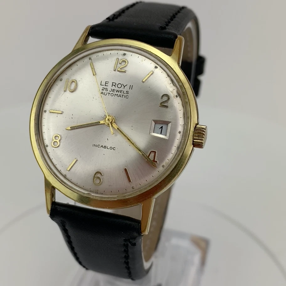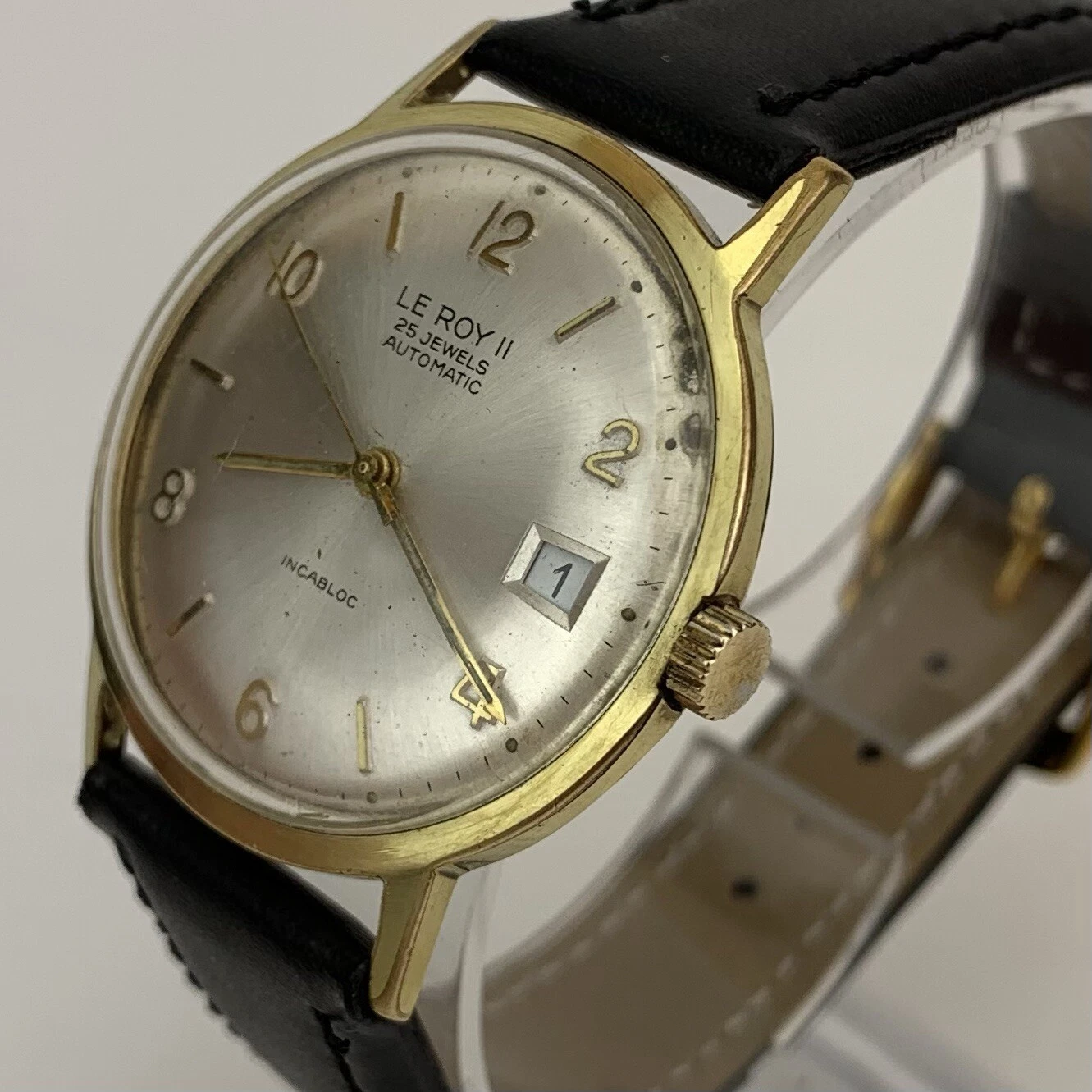 Vintage Le Roy II Mens Watch 1960’s Automatic Date ETA 2452 25J 34mm New Strap