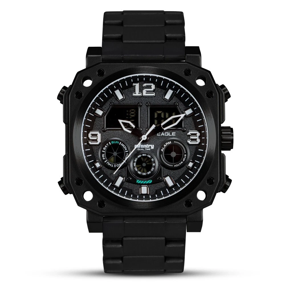 Infantry Analogue-Digital Black Stainless Steel Strap Men Watch FS-011-BLK-BS