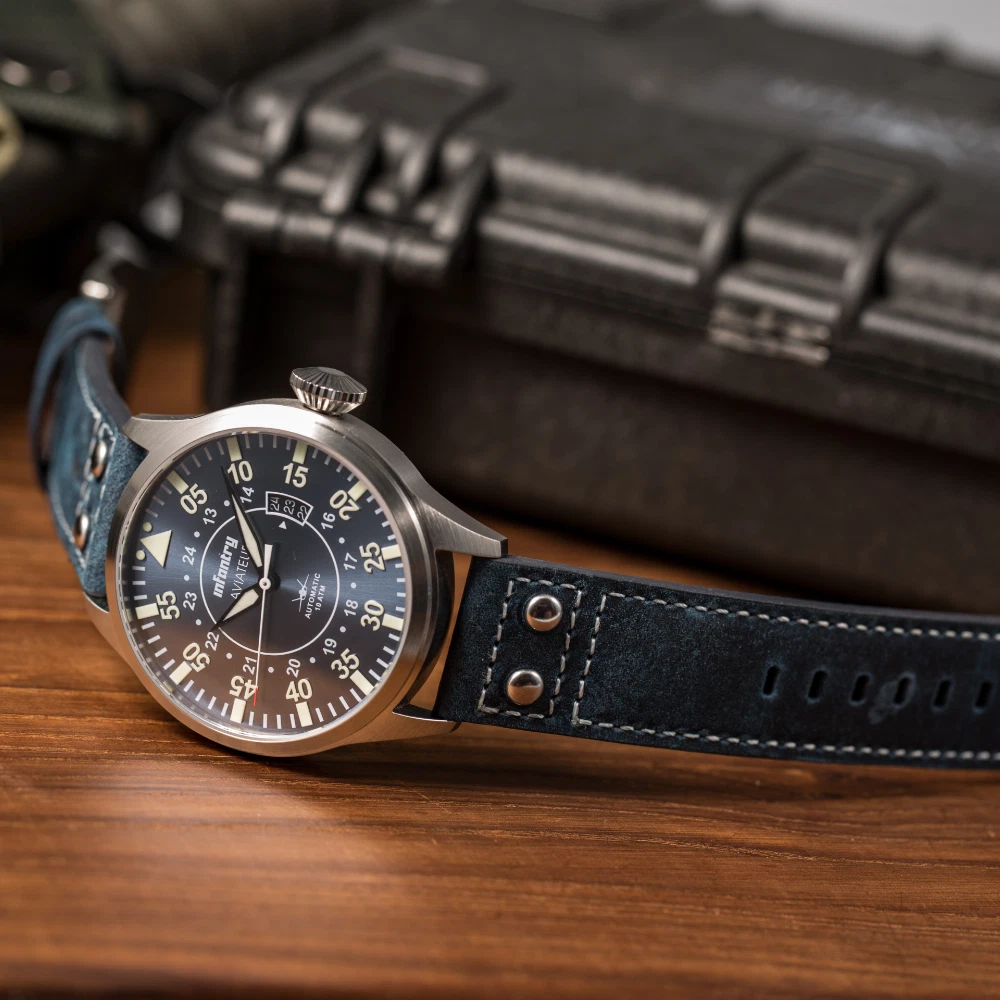 Infantry Aviateur Blue Dial Leather Strap Men Watch AVR-004-BLU-L