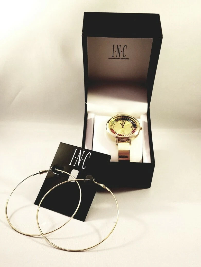 INC International Concepts Women's Watch & Earrrings Set Gold NEW OVER STOCK