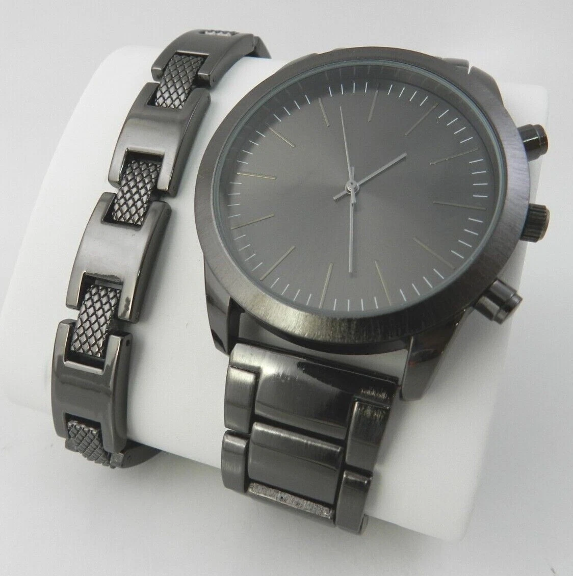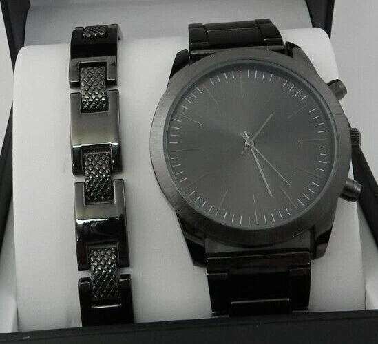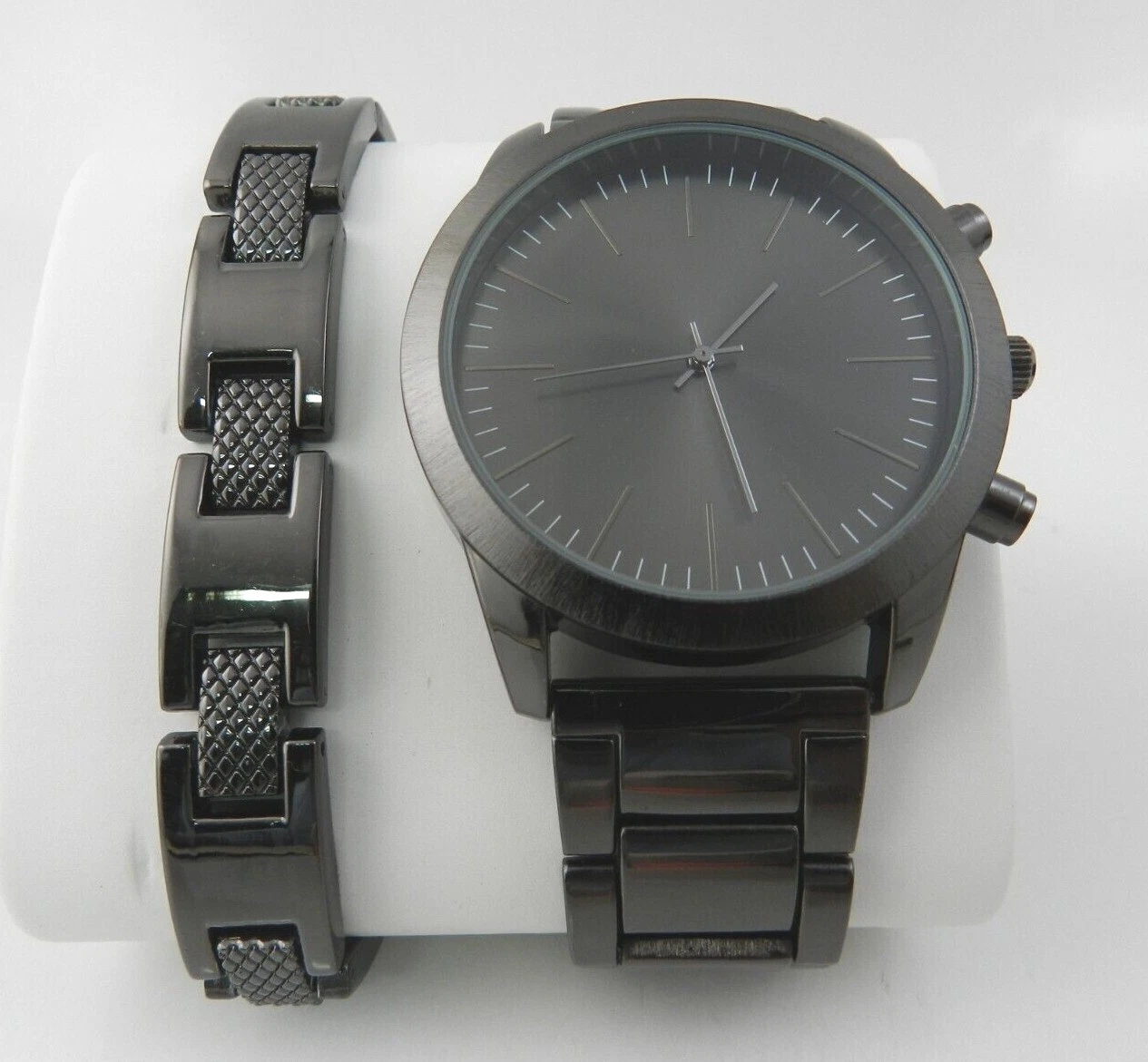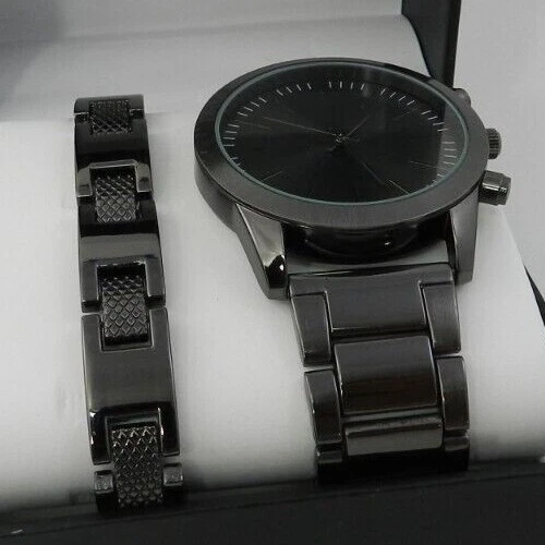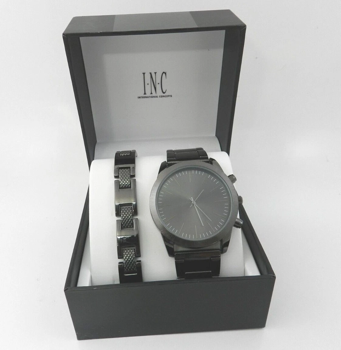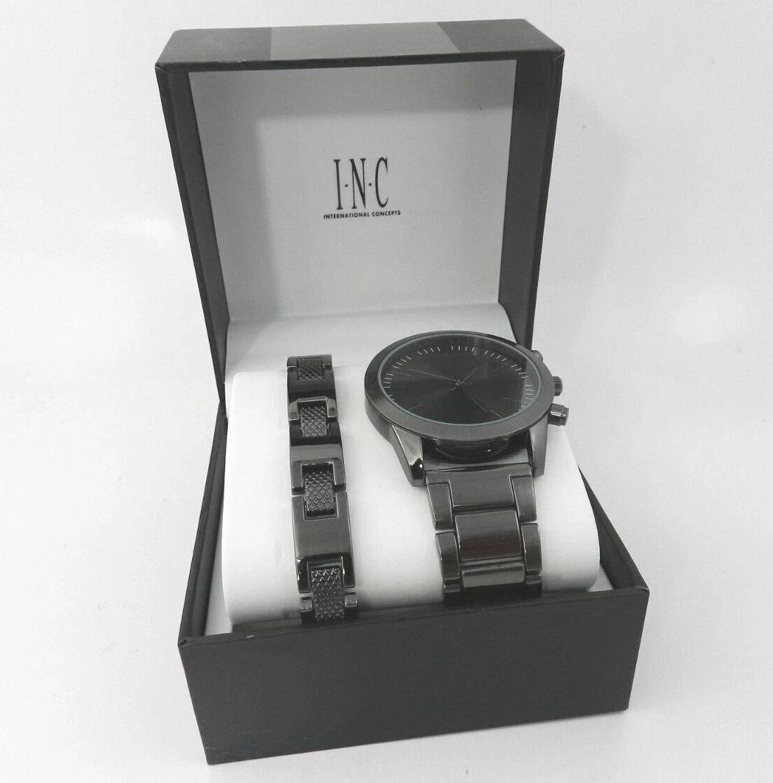 INC International Concepts Men's Black Gunmetal Bracelet & Watch 45mm Gift Set