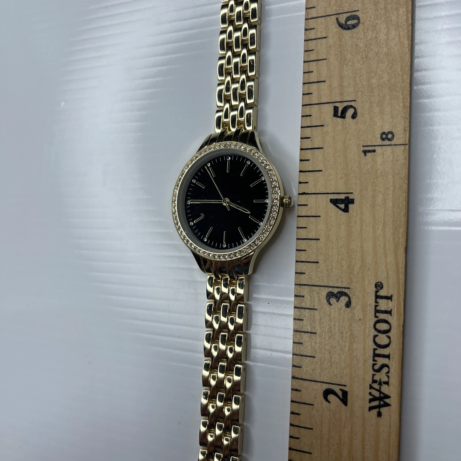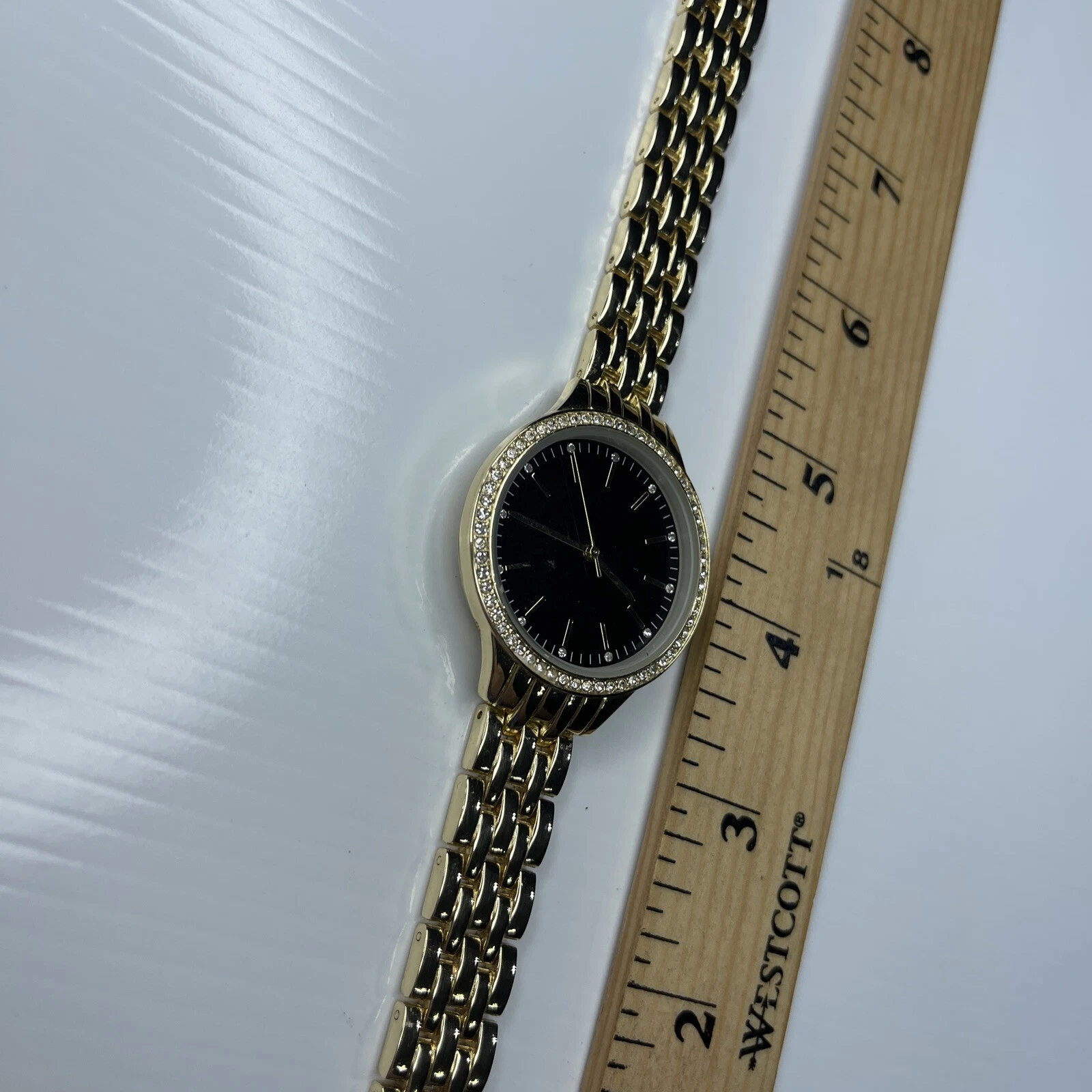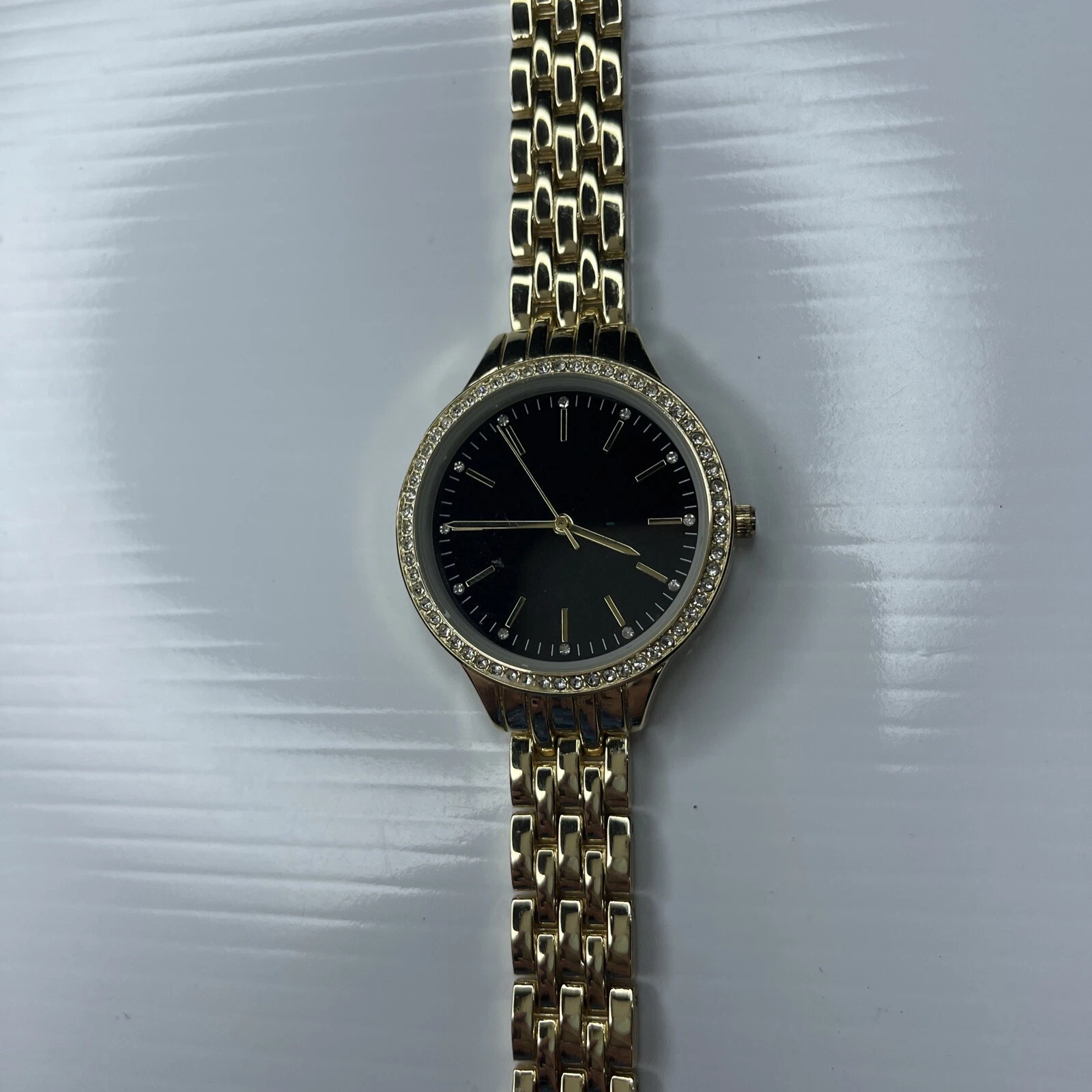 F INC 100079320WA SINGAPORE Black Gold Crystals Ladies Watch Untested