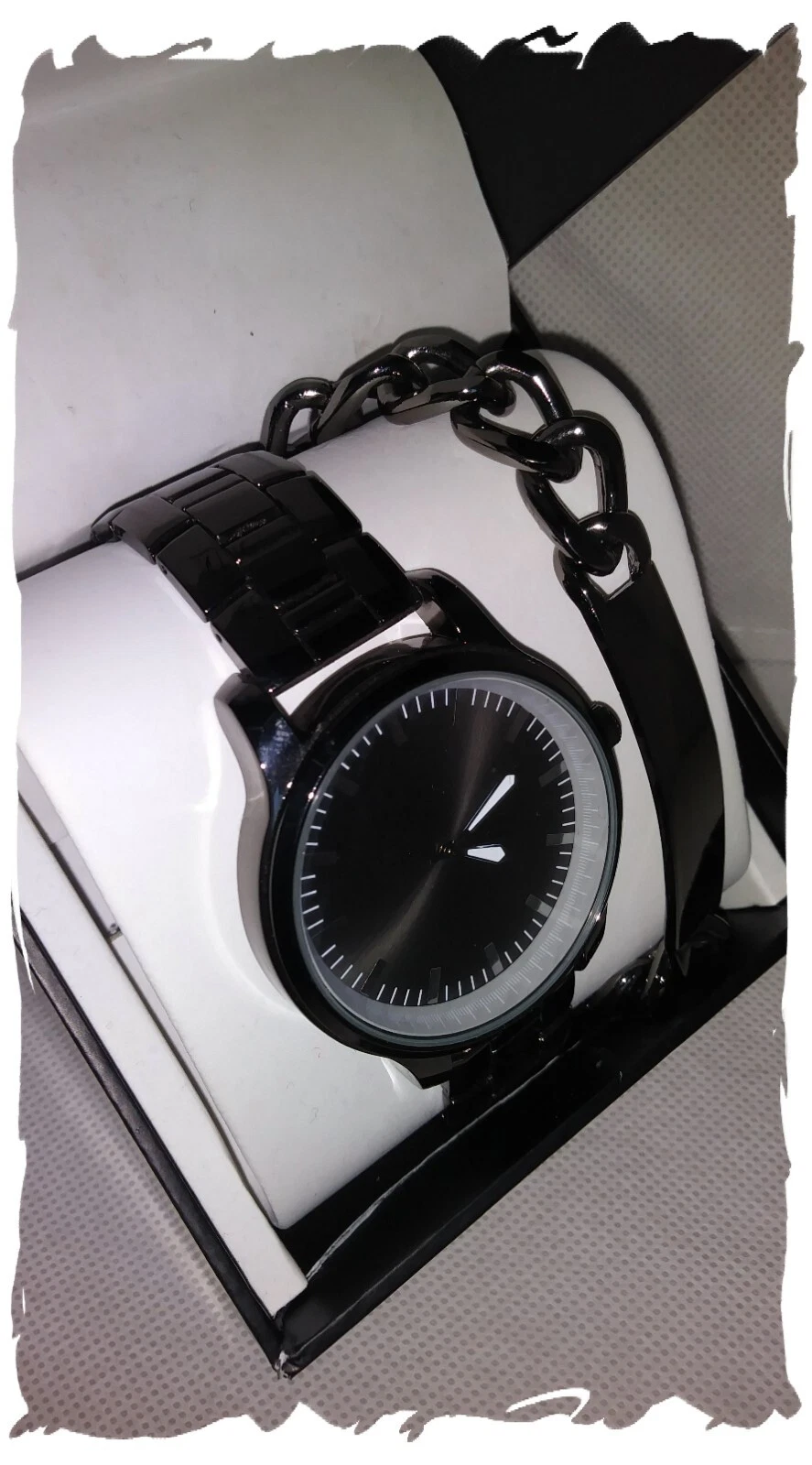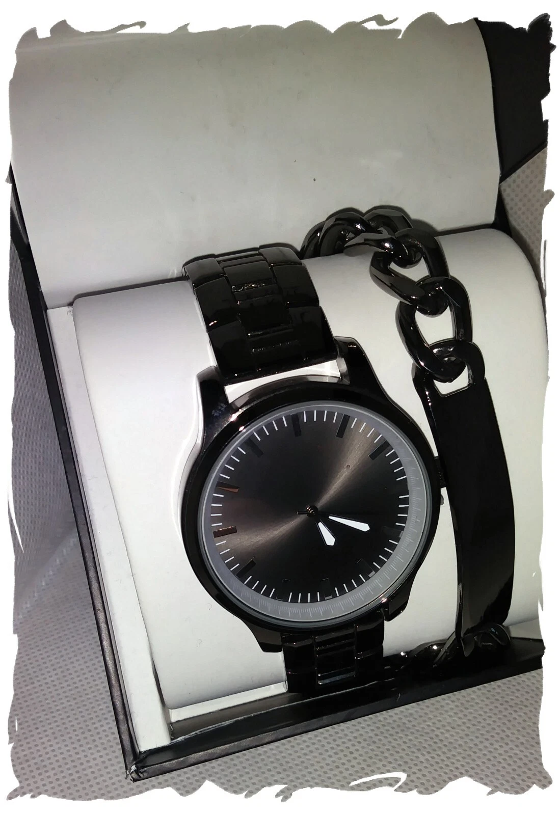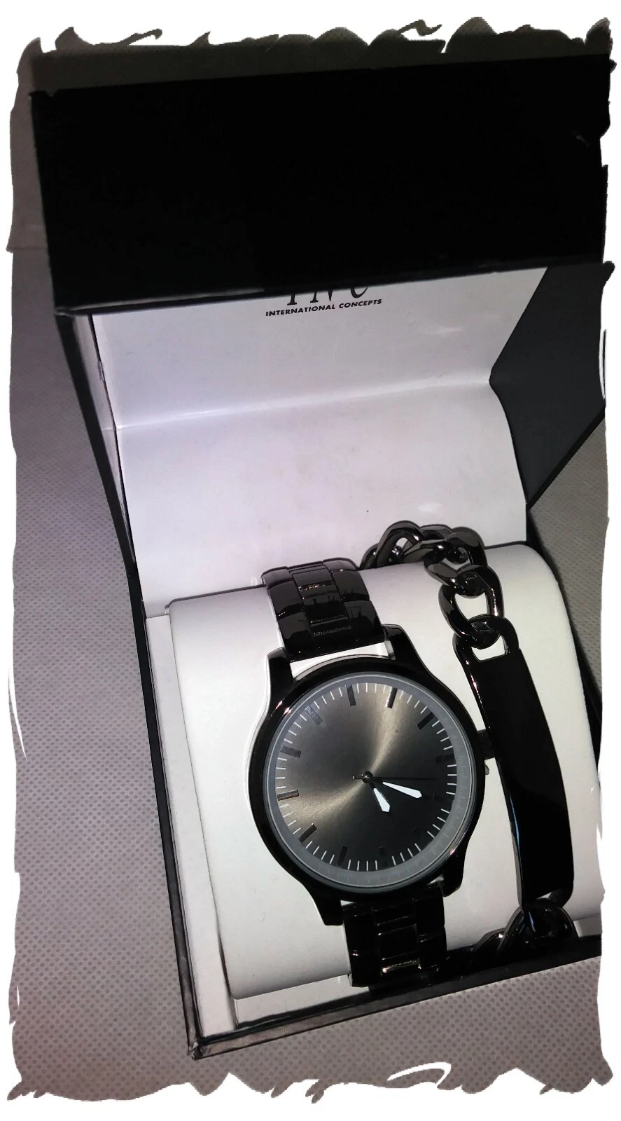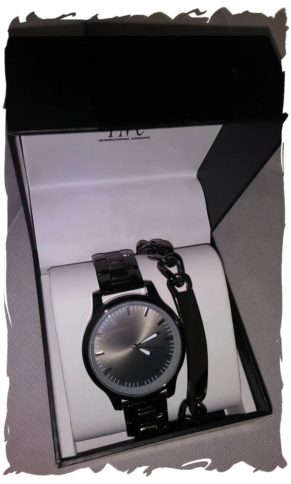 Men's GUNMETAL Stainless Steel Watch + BRACELET by INC. New in Box with papers.