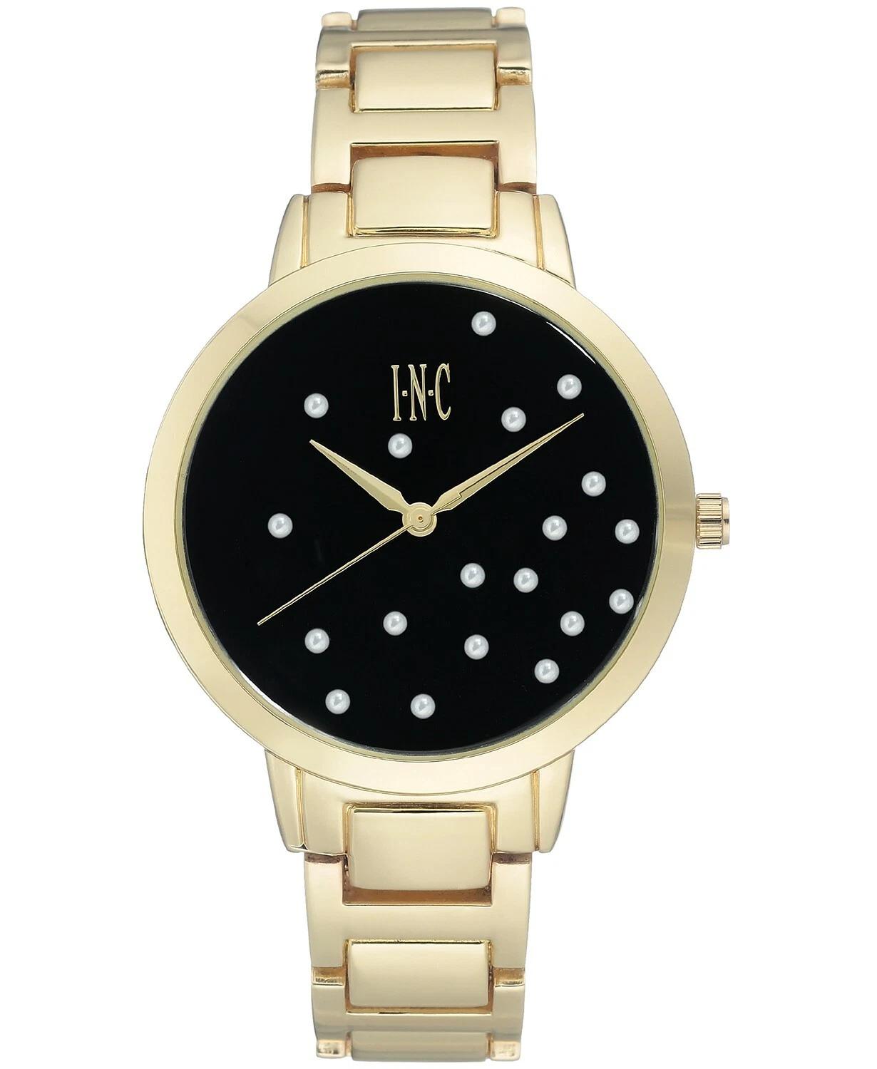 I.N.C. Women's Gold-Tone Bracelet Black w Pearl Accents Dial 36mm Quartz Watch