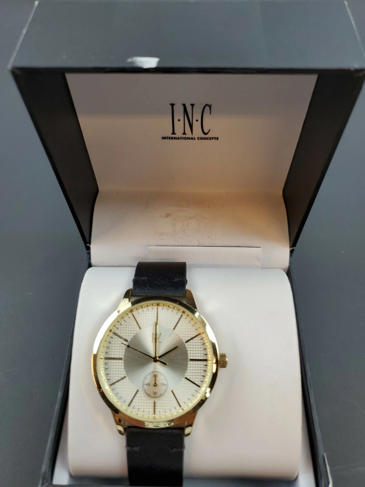 INC International Concepts Mens Gold Tone & Black Dress Watch 43MM Free Shipping