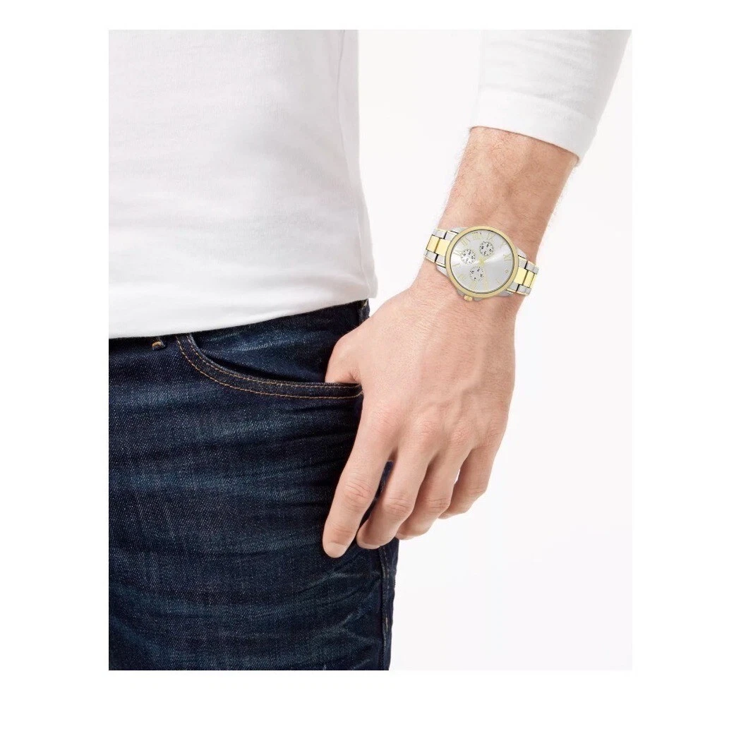 INC Men's Two-Tone Link Bracelet Watch 44mm & Bracelet Set NIB