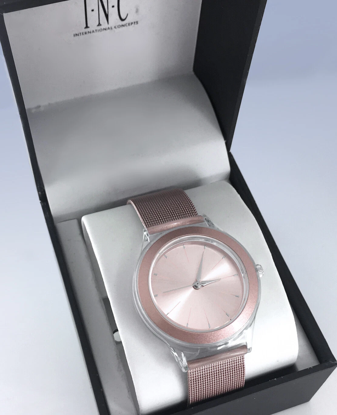 Inc International Concepts Women's Rose Pink Stainless Steel Mesh Bracelet Watch