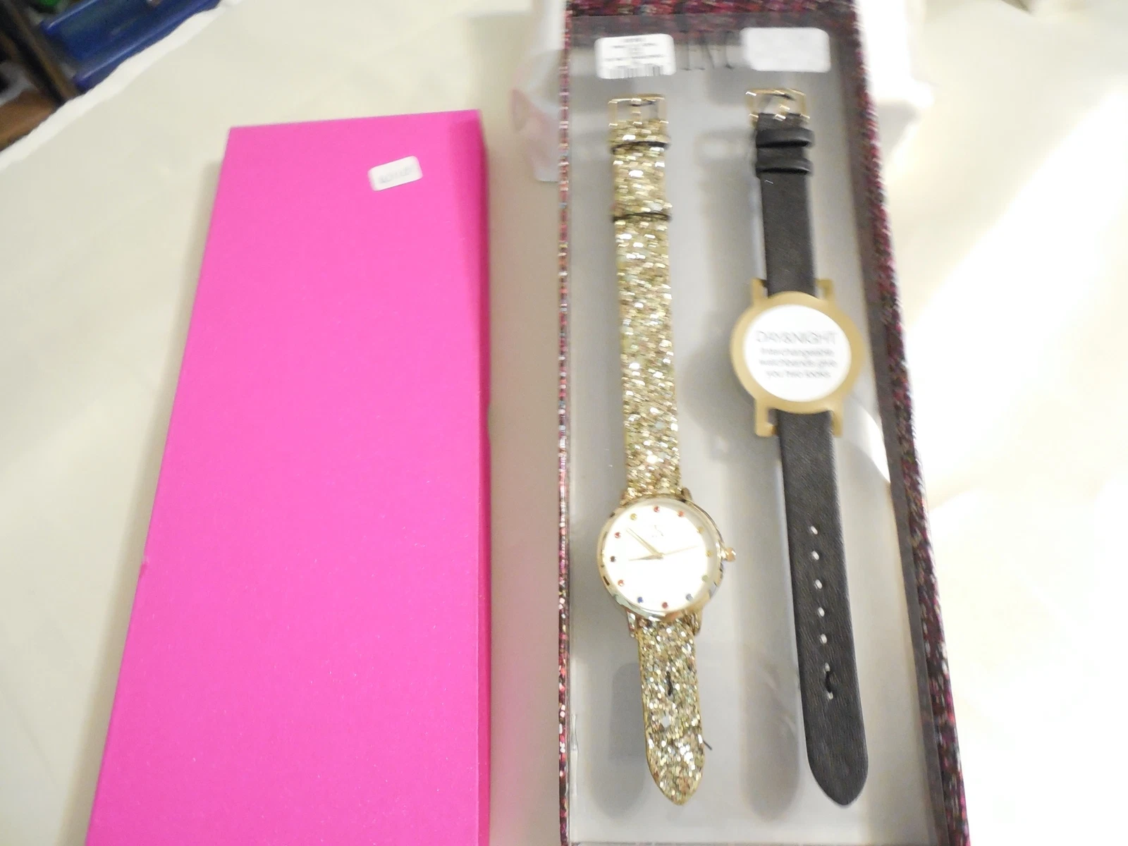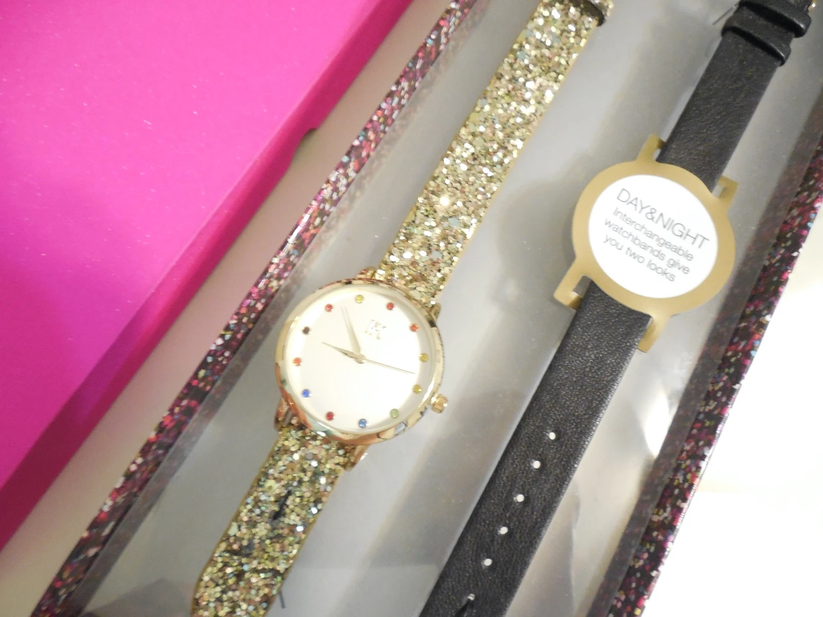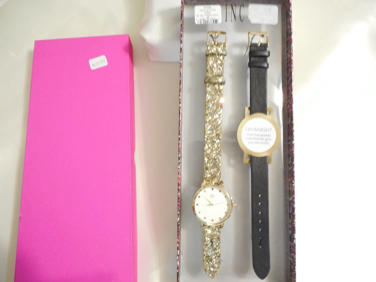 I.N.C. Women's Glitter Faux Leather Strap Watch 36mm Interchangeable Strap Set