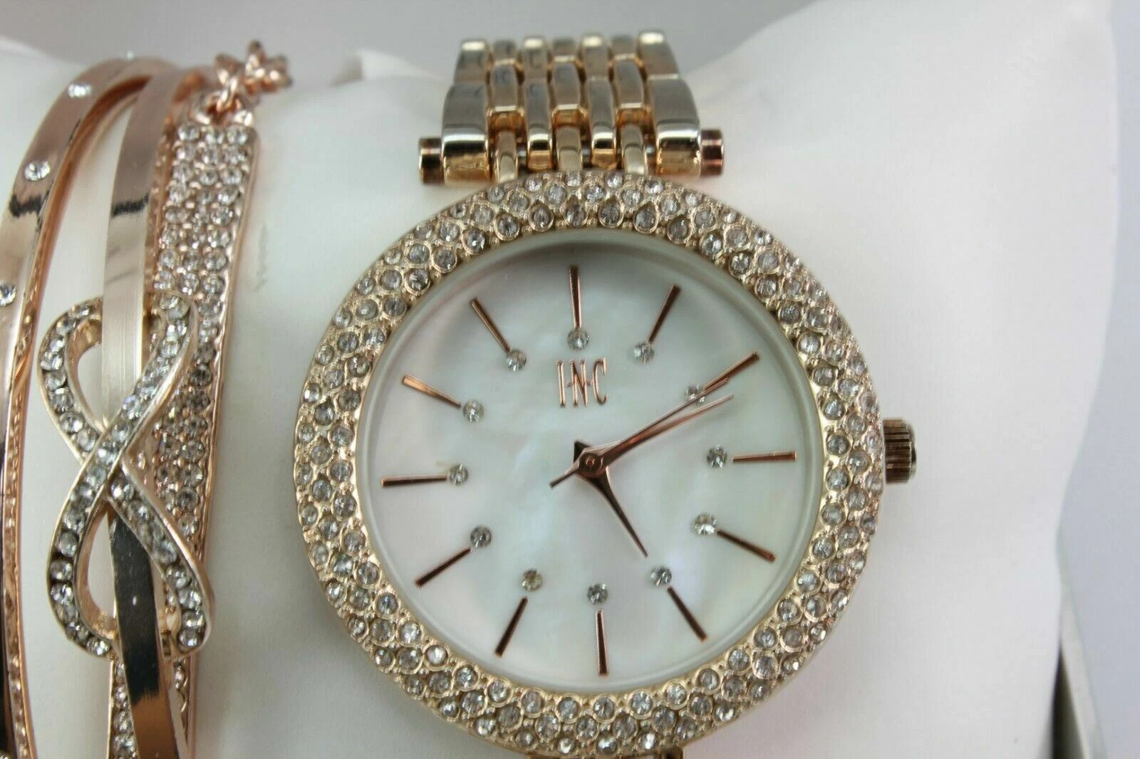 INC Crystal Bezel Stainless Steel Womens Watch & 3 Bracelets IN002RG FS!