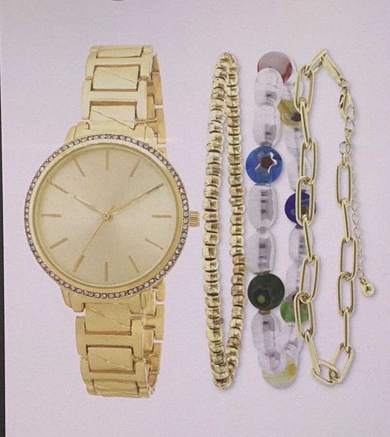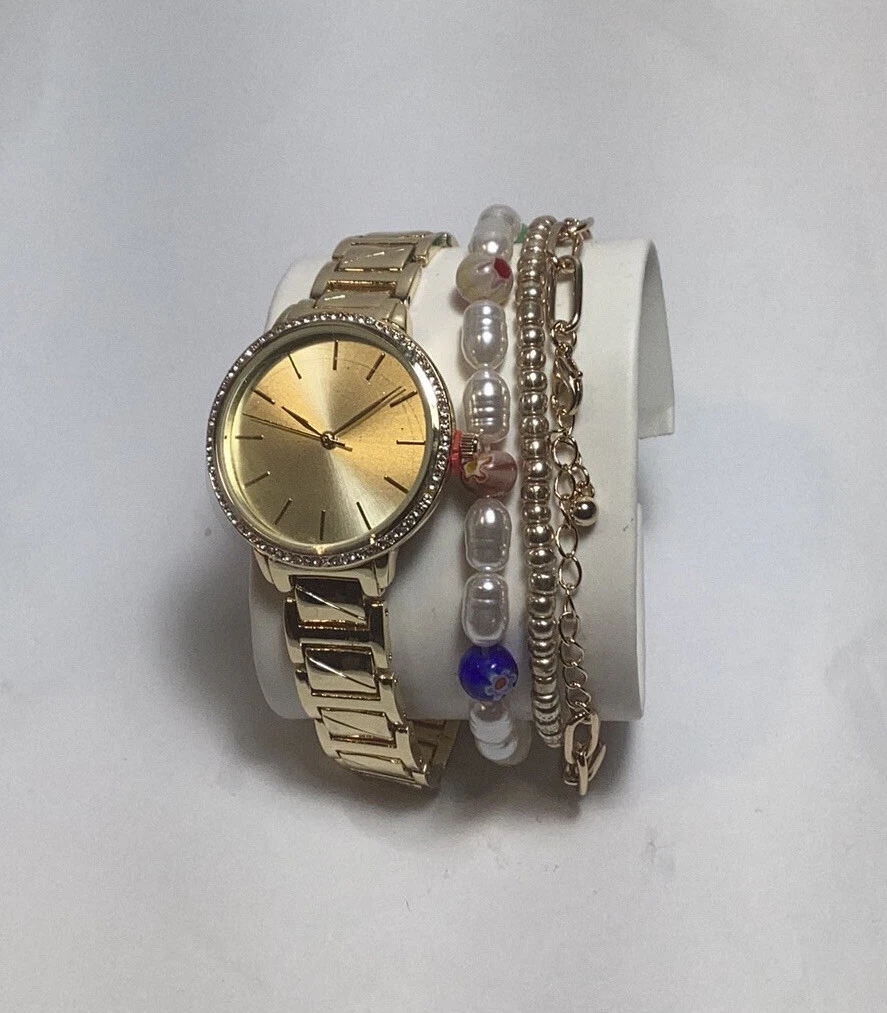 INC International Concepts Watch Set- Gold White Chain Link w/ Beaded Bracelets