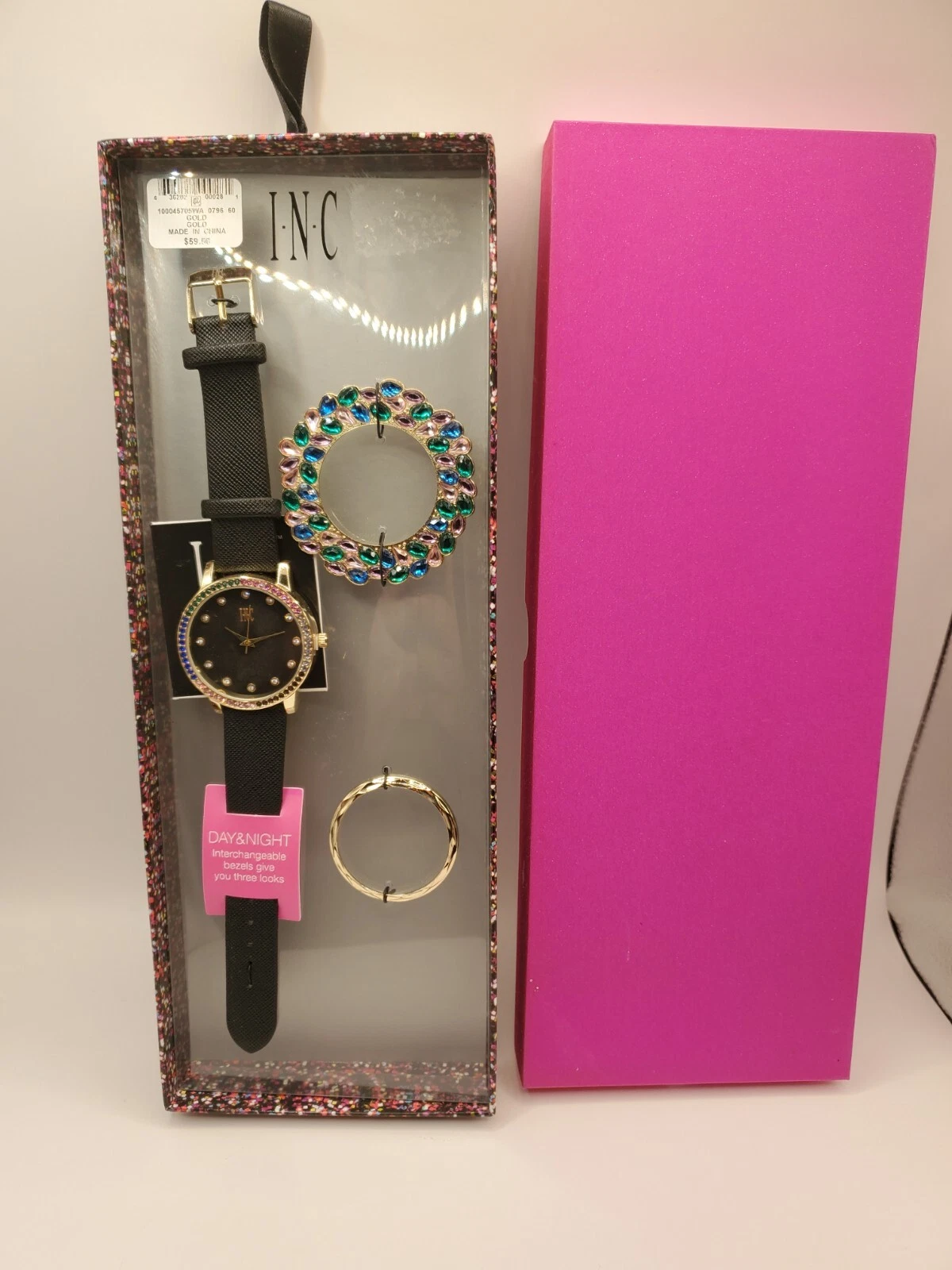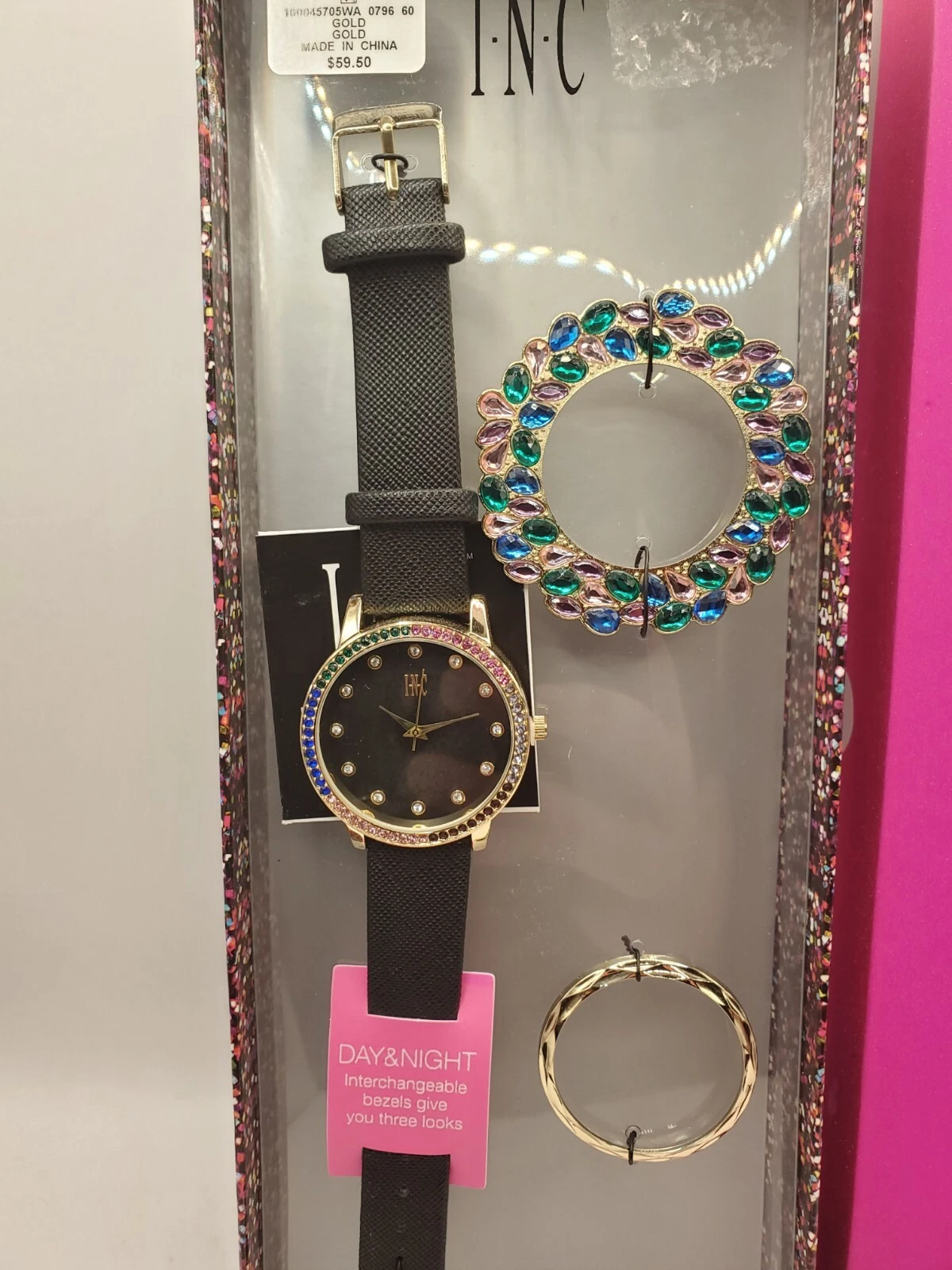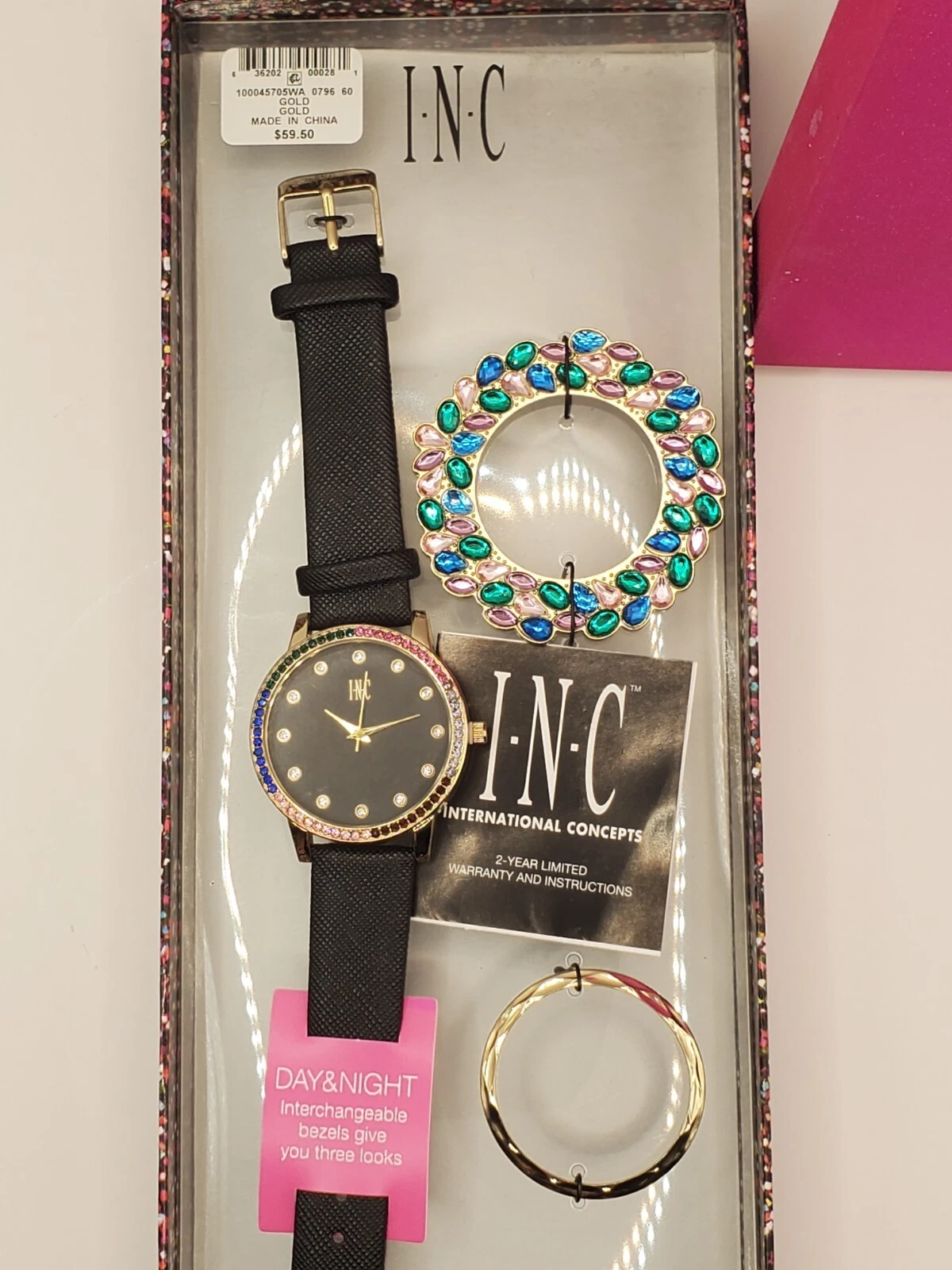 I.N.C. Women's Black Faux Leather Strap Watch 38mm / Interchangeable Bezel W1100