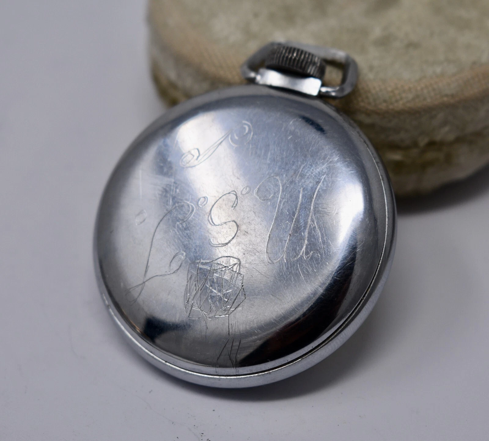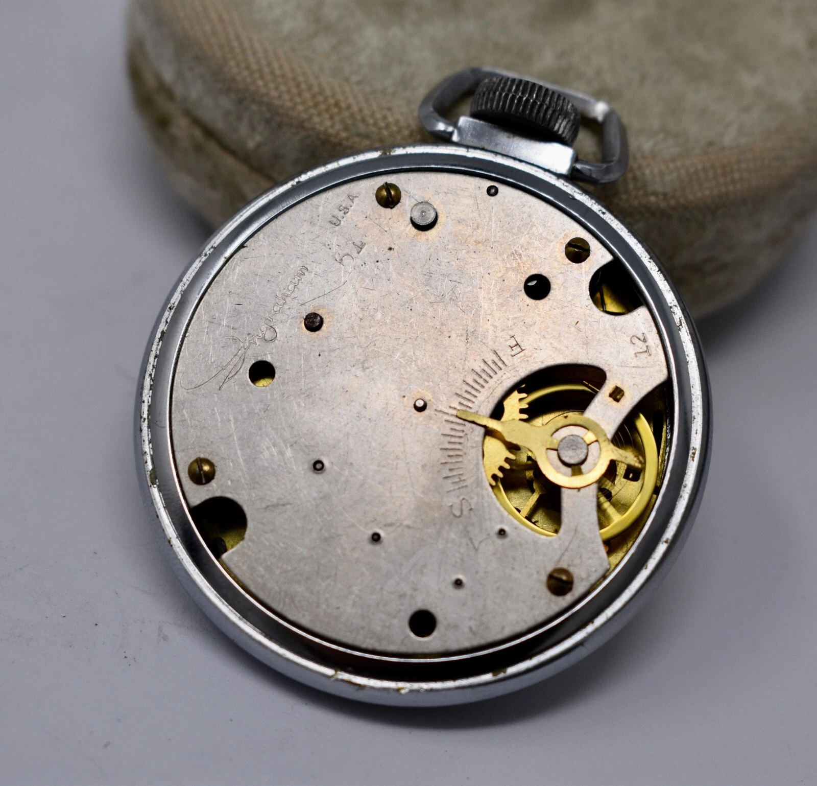 Vintage MCM Mid. Mod. Ingraham Autocrat Dollar Pocket Watch - Good Running