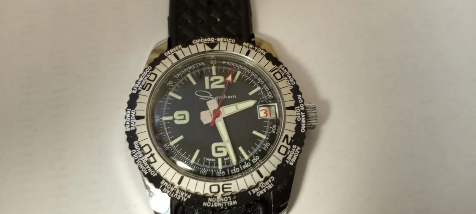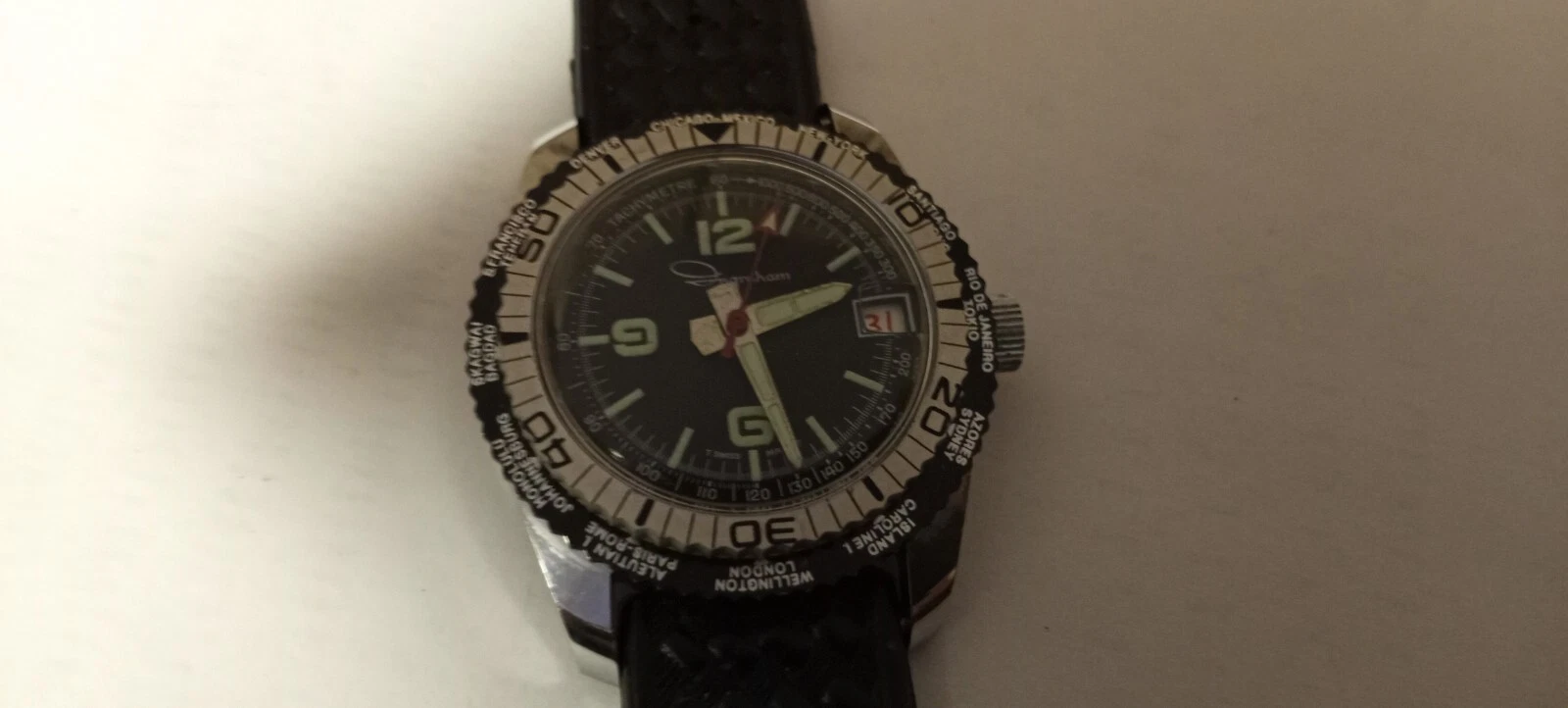 VINTAGE INGRAHAM DIVER STYLE WORLD TIME WATCH...FOR REPAIR...PLS READ