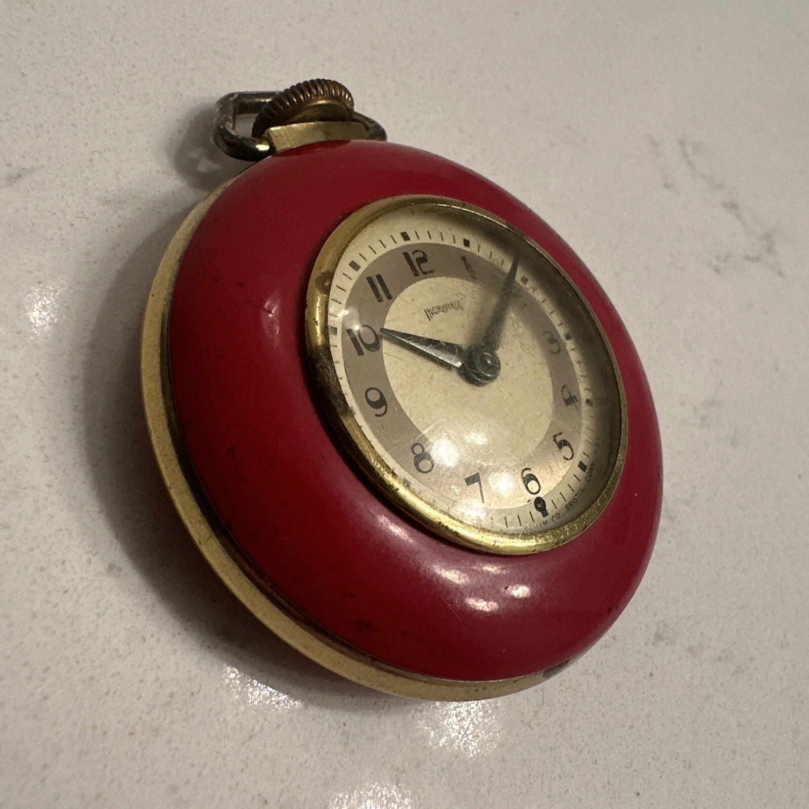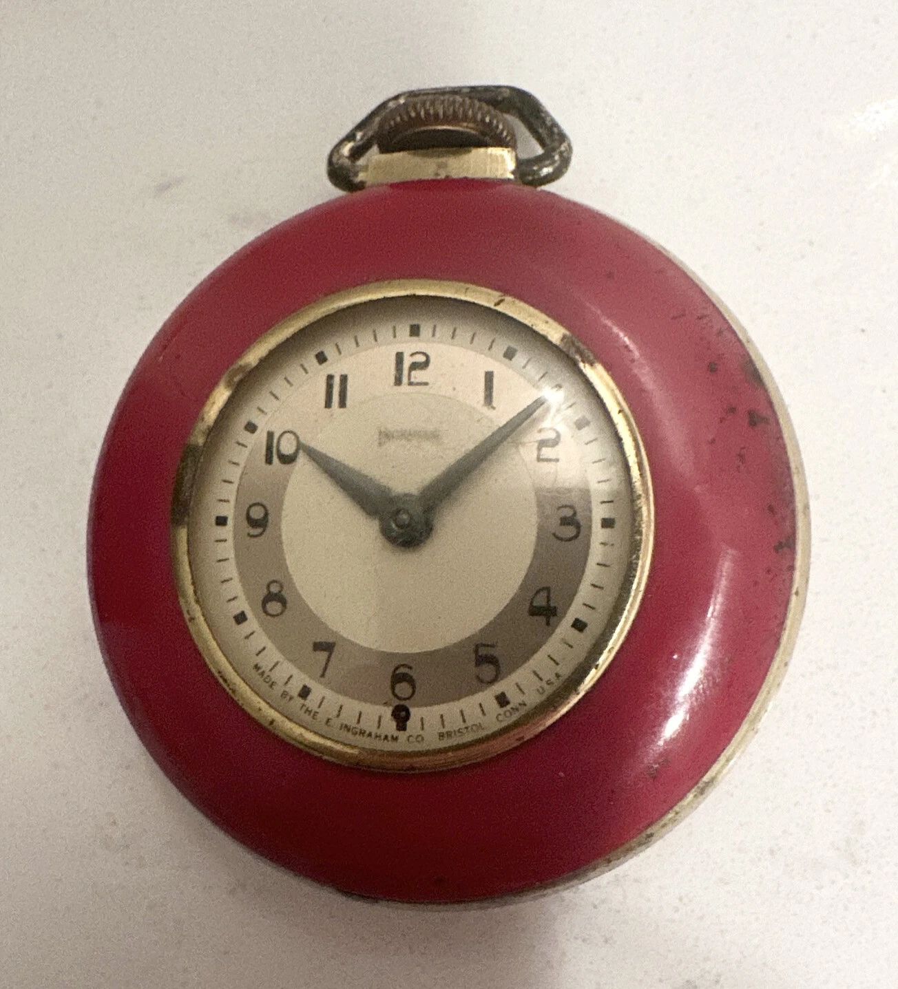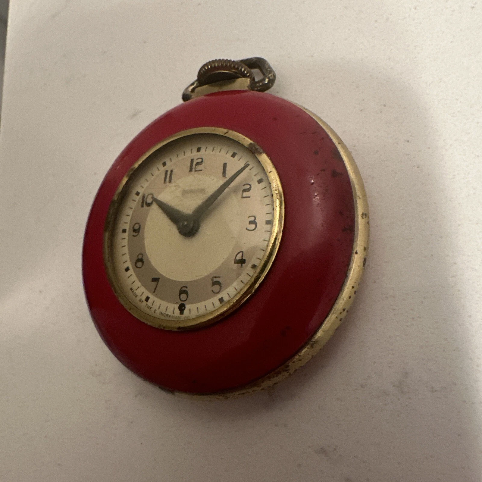 RARE ANTIQUE INGRAHAM POCKET WATCH ART DECO NUMBERS PAINTED RED FACE UNTESTED