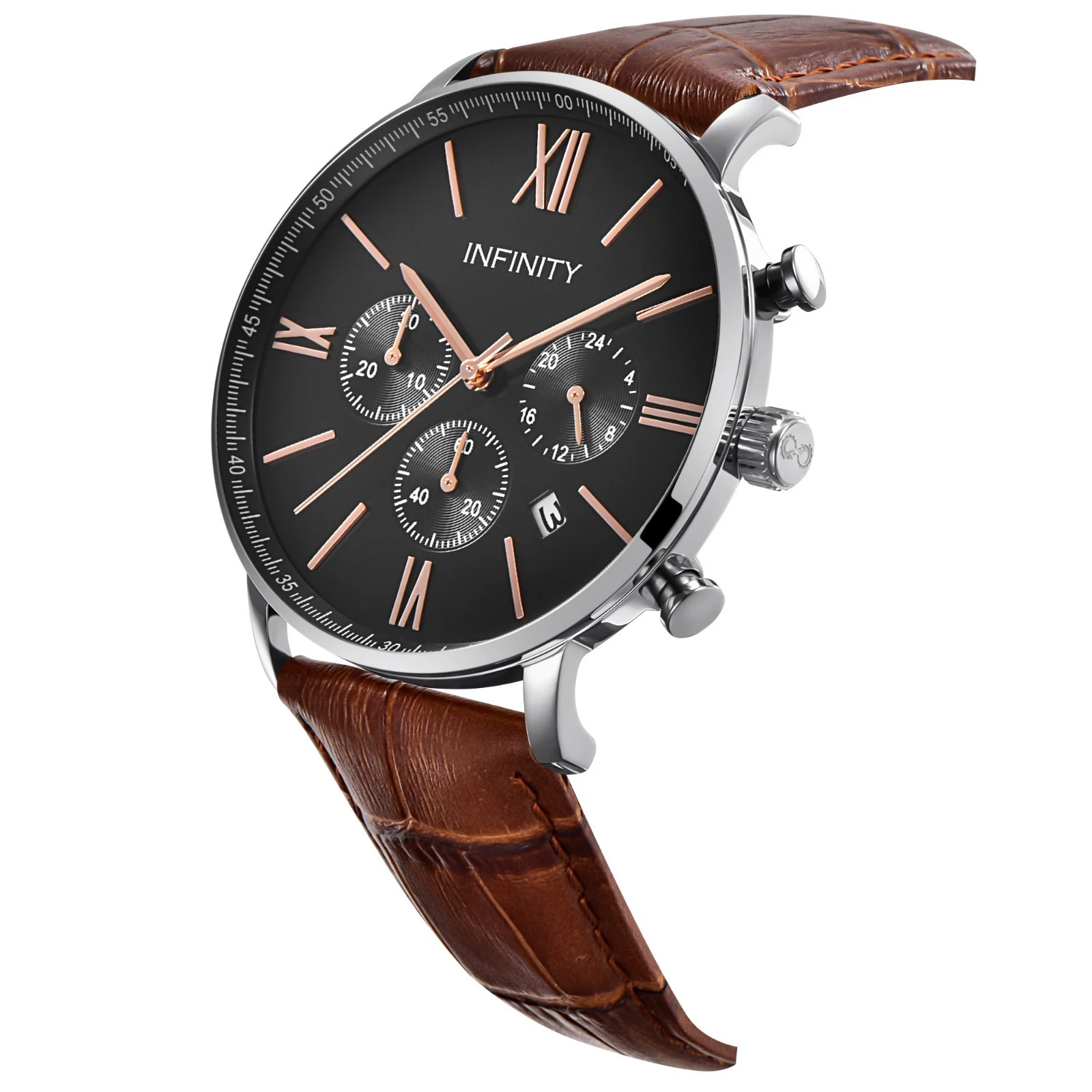 Infinity SP 04 Rosegold & Black Men's Classic Chronograph Watch- Black Leather