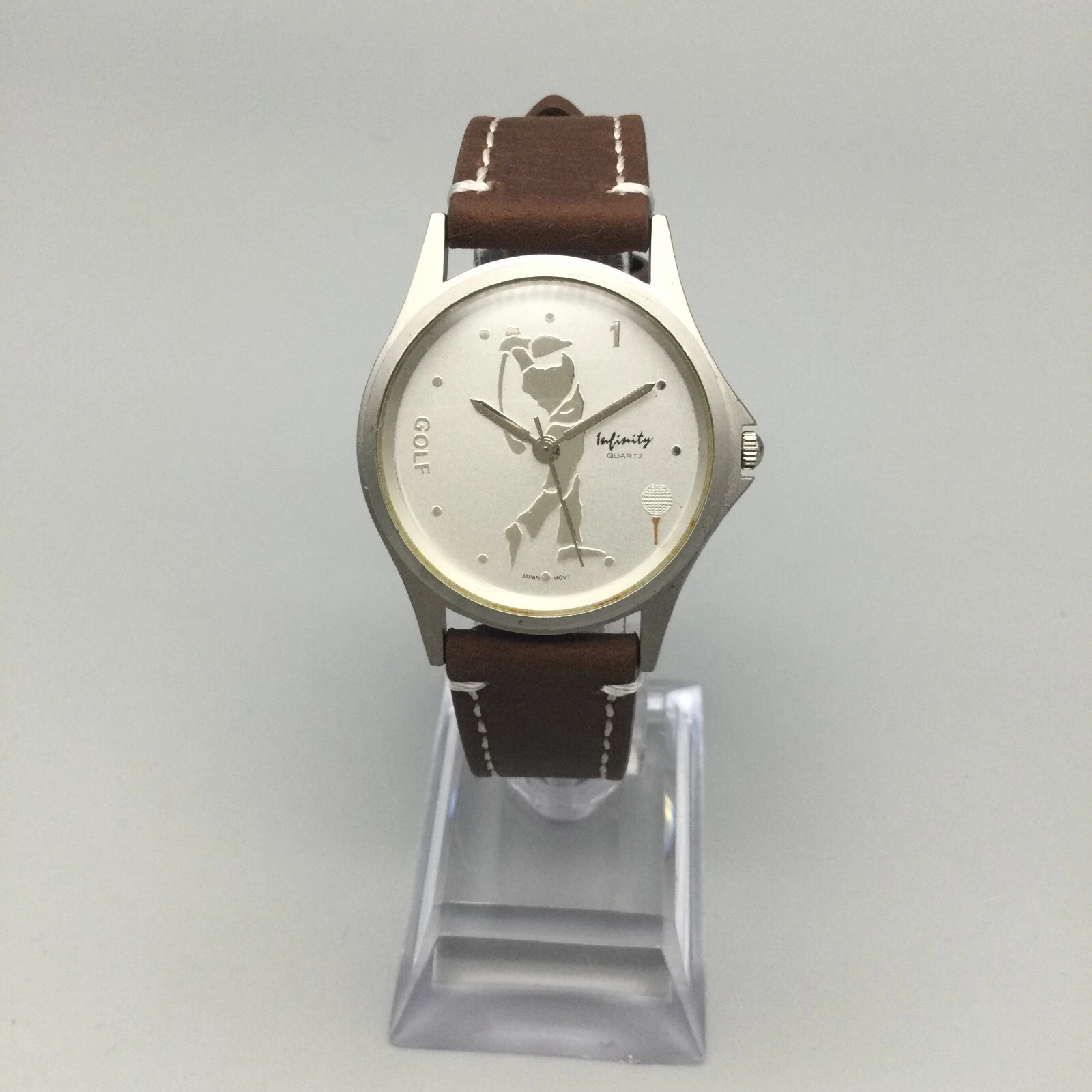 Infinity Watch Women Golf 34mm Silver Tone Brown Leather Band New Battery