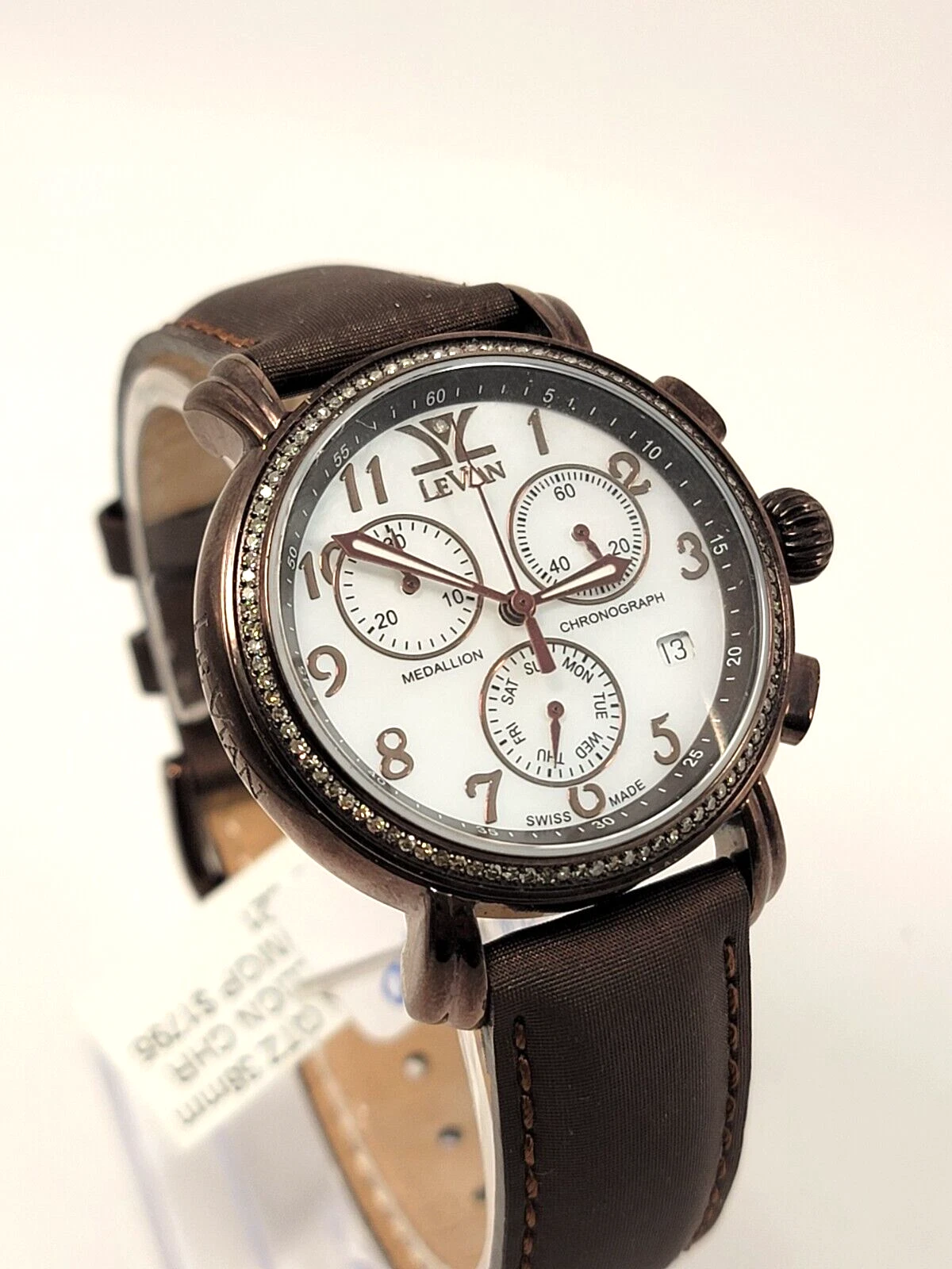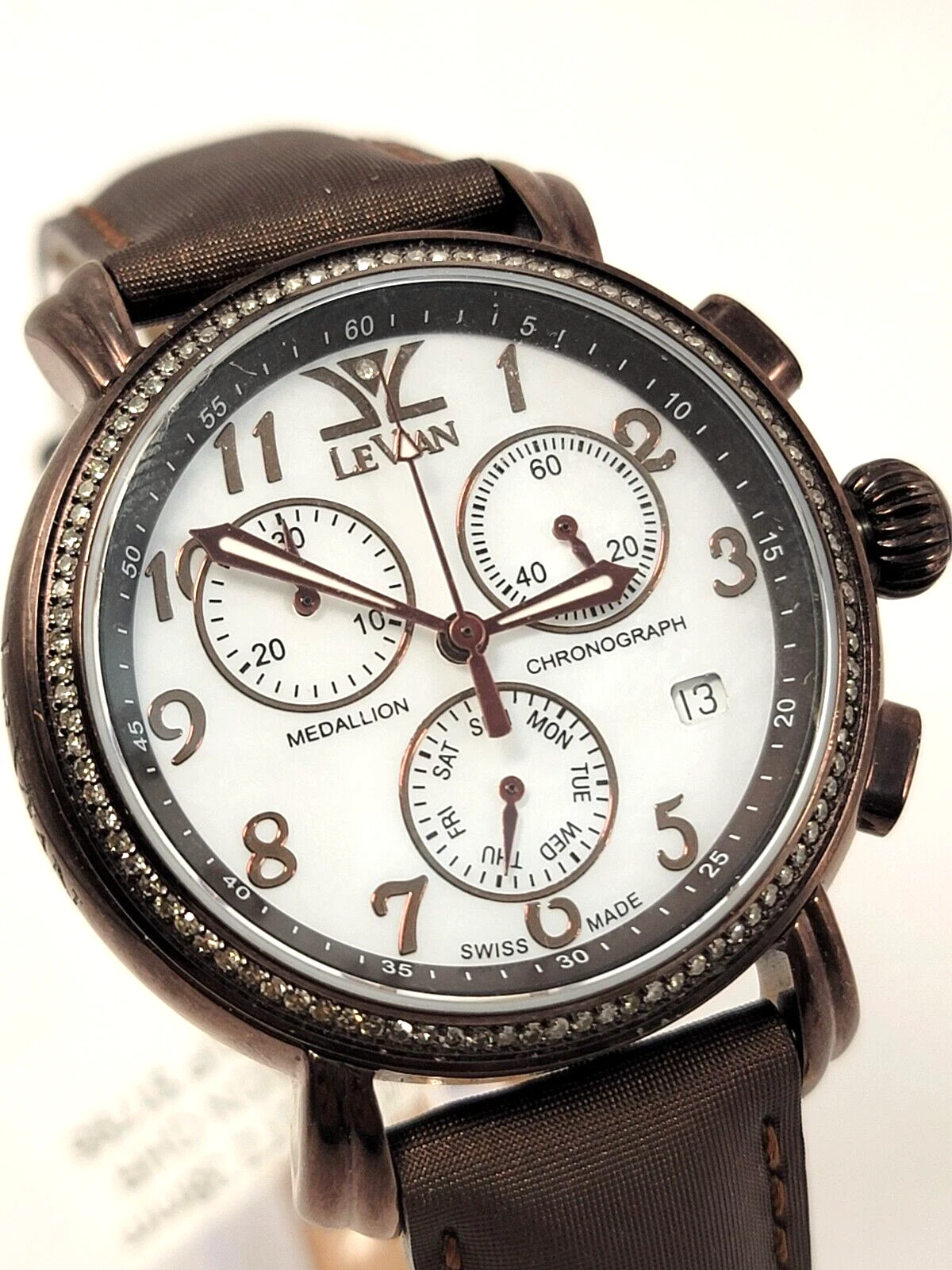LE VIAN $1795 CHOCOLATE DIAMONDS BROWN CHRONO MOP DIAL SWISS WATCH ZAG 221