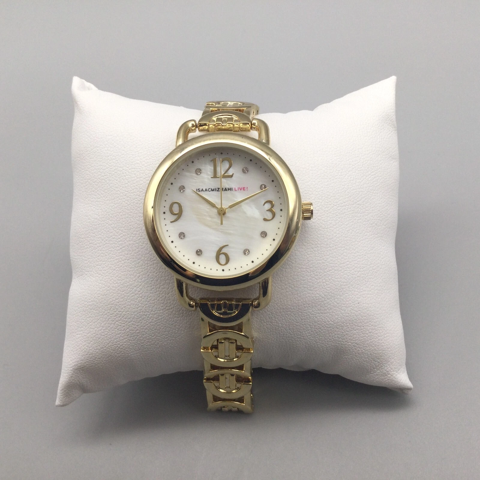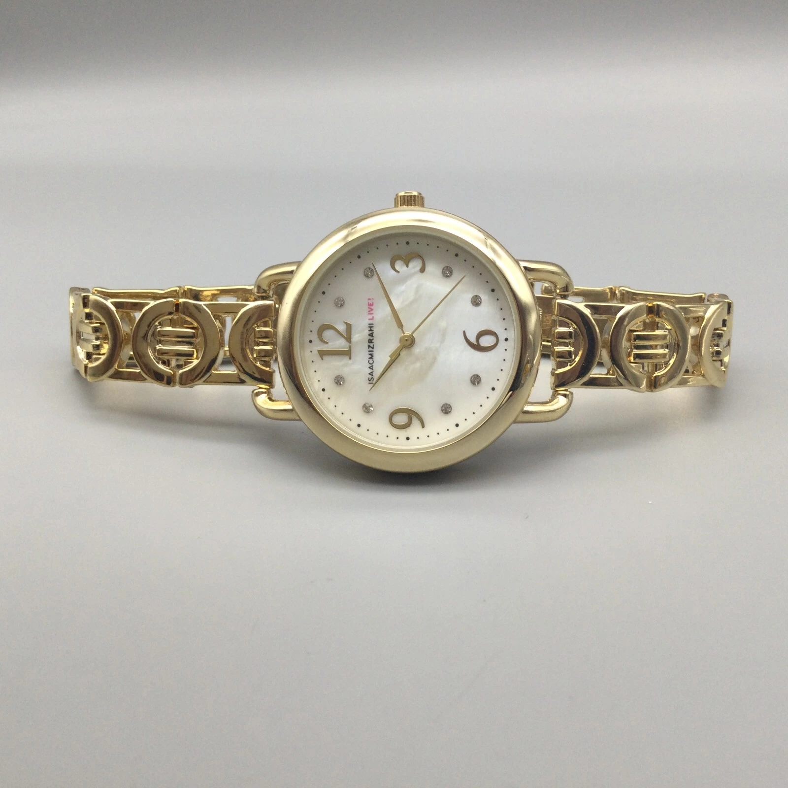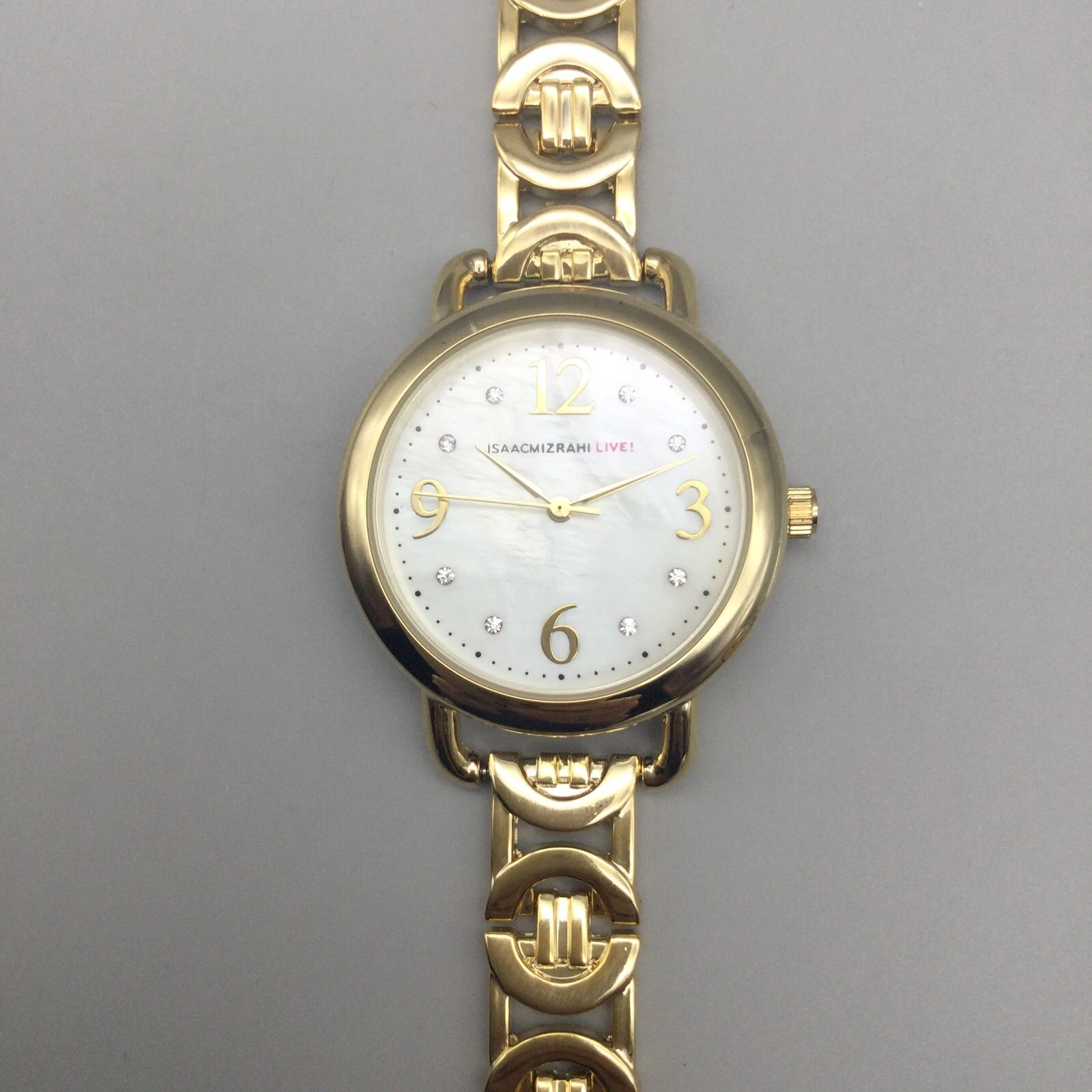 Isaac Mizrahi Live Watch Women 34mm Gold Tone White MOP Dial 6.25"