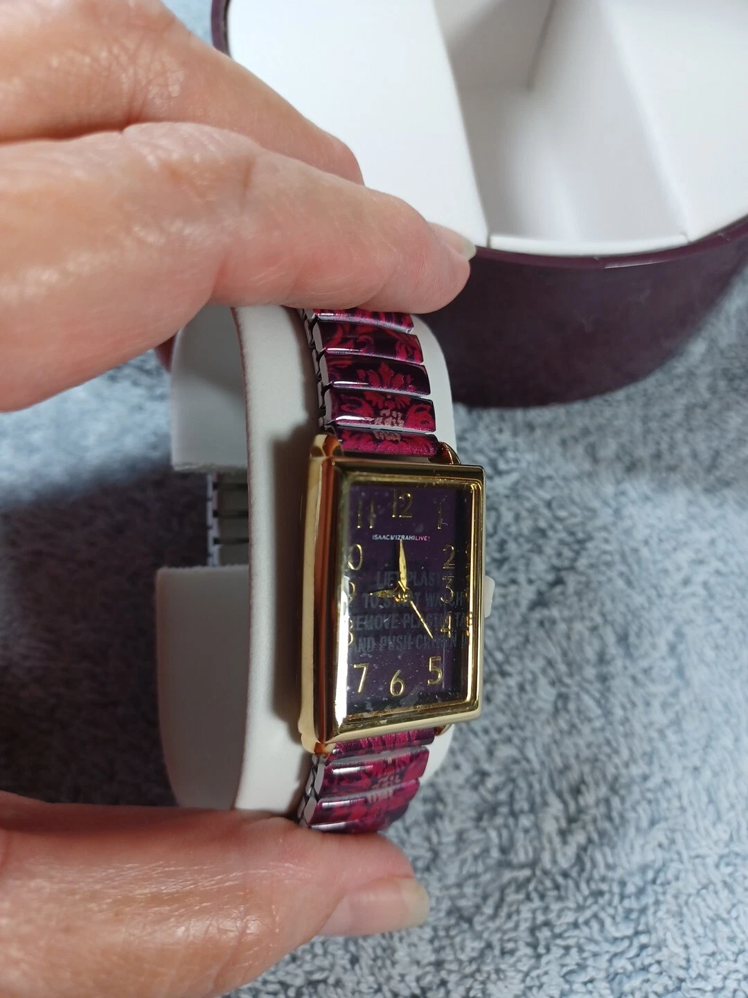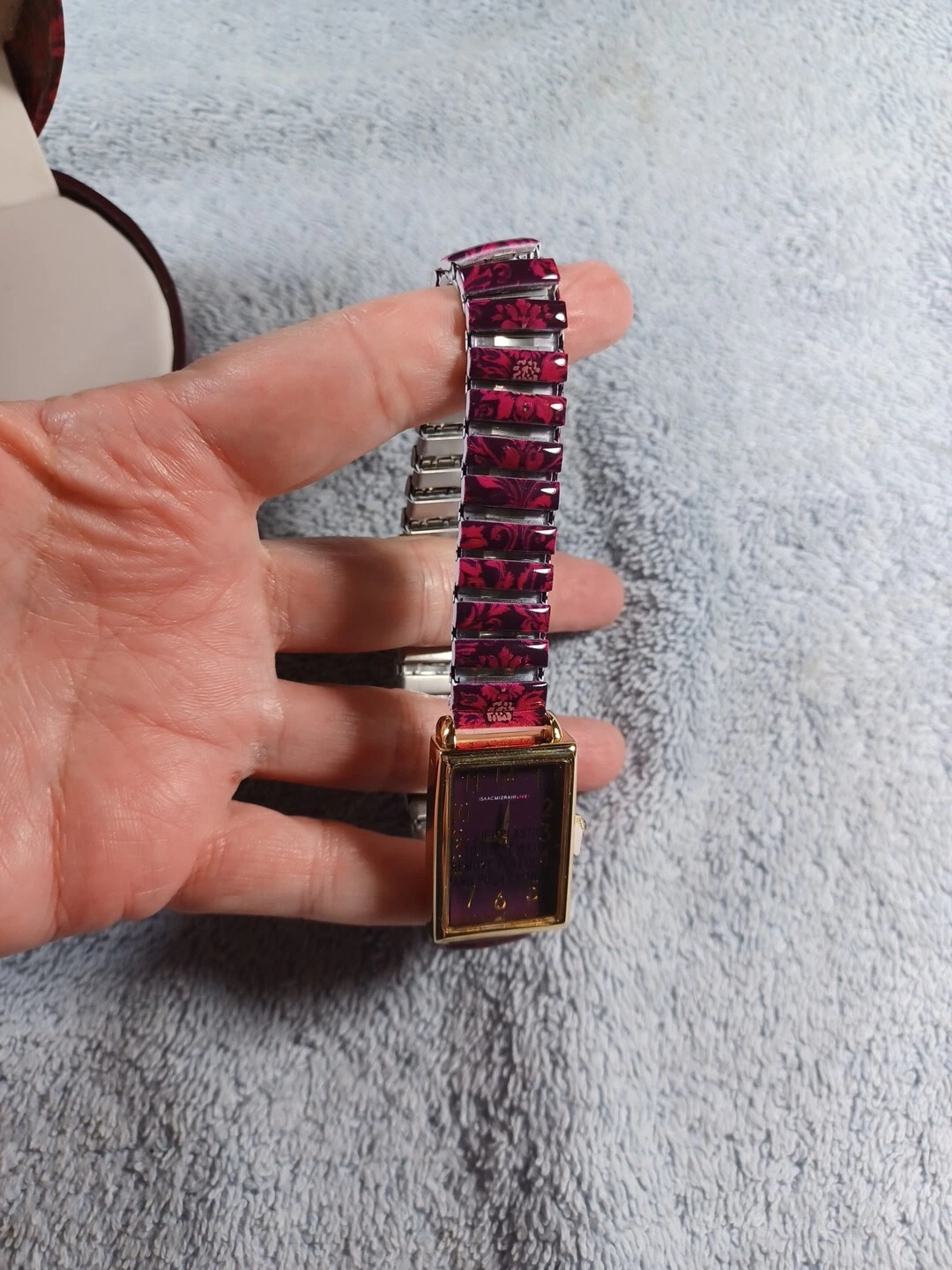 Isaac Mizrahi Live Wristwatch Floral Enamel Expanding Band Rectangle Face NIB