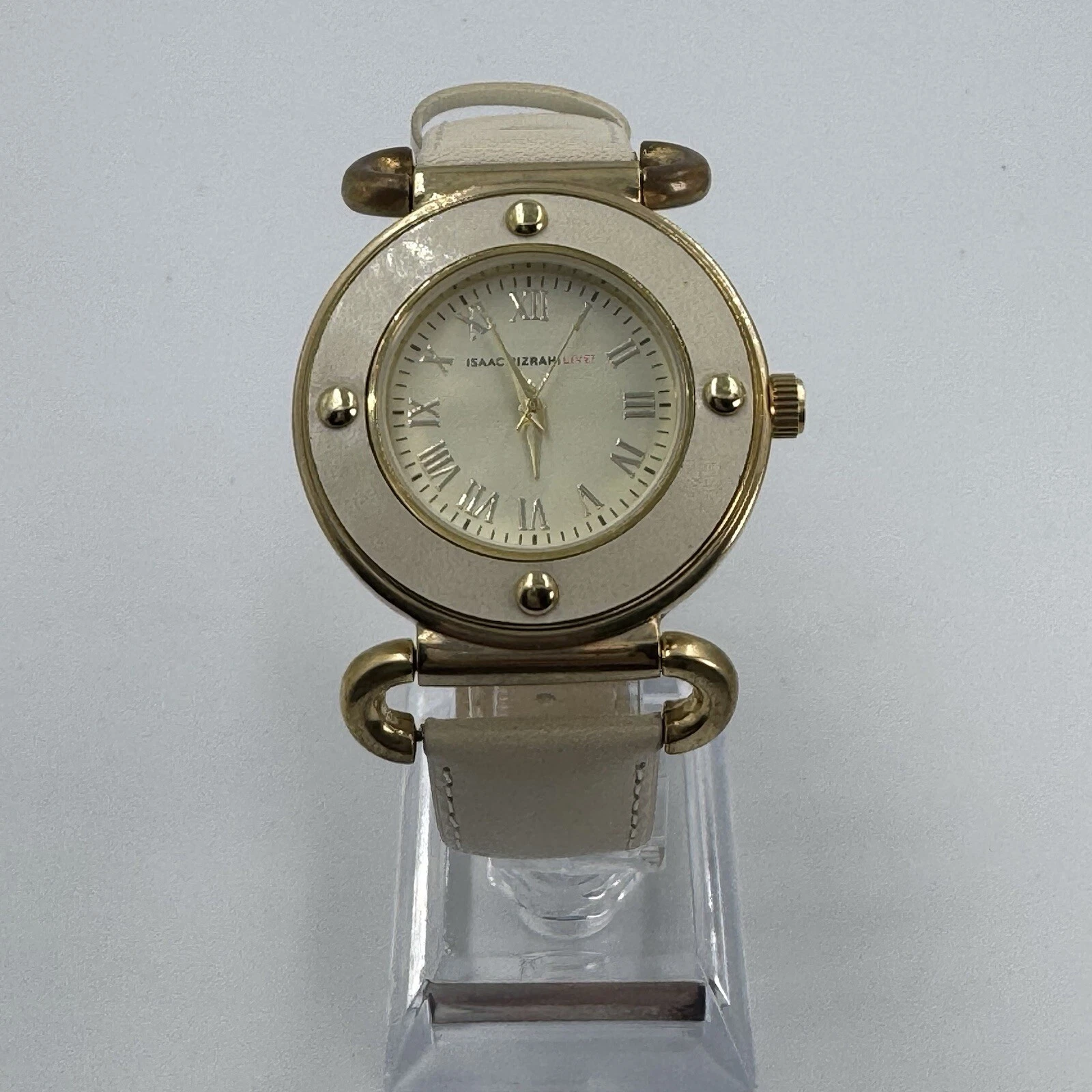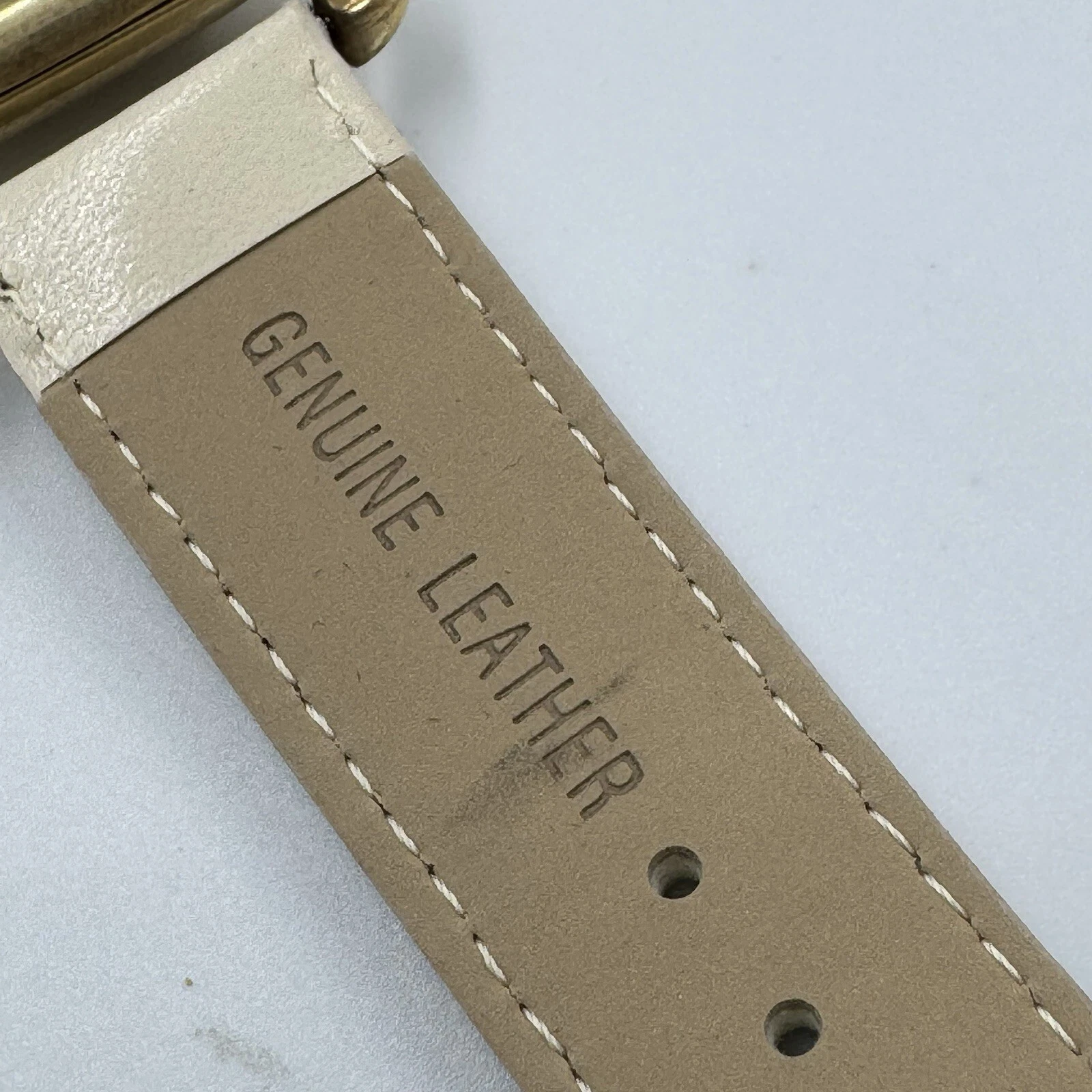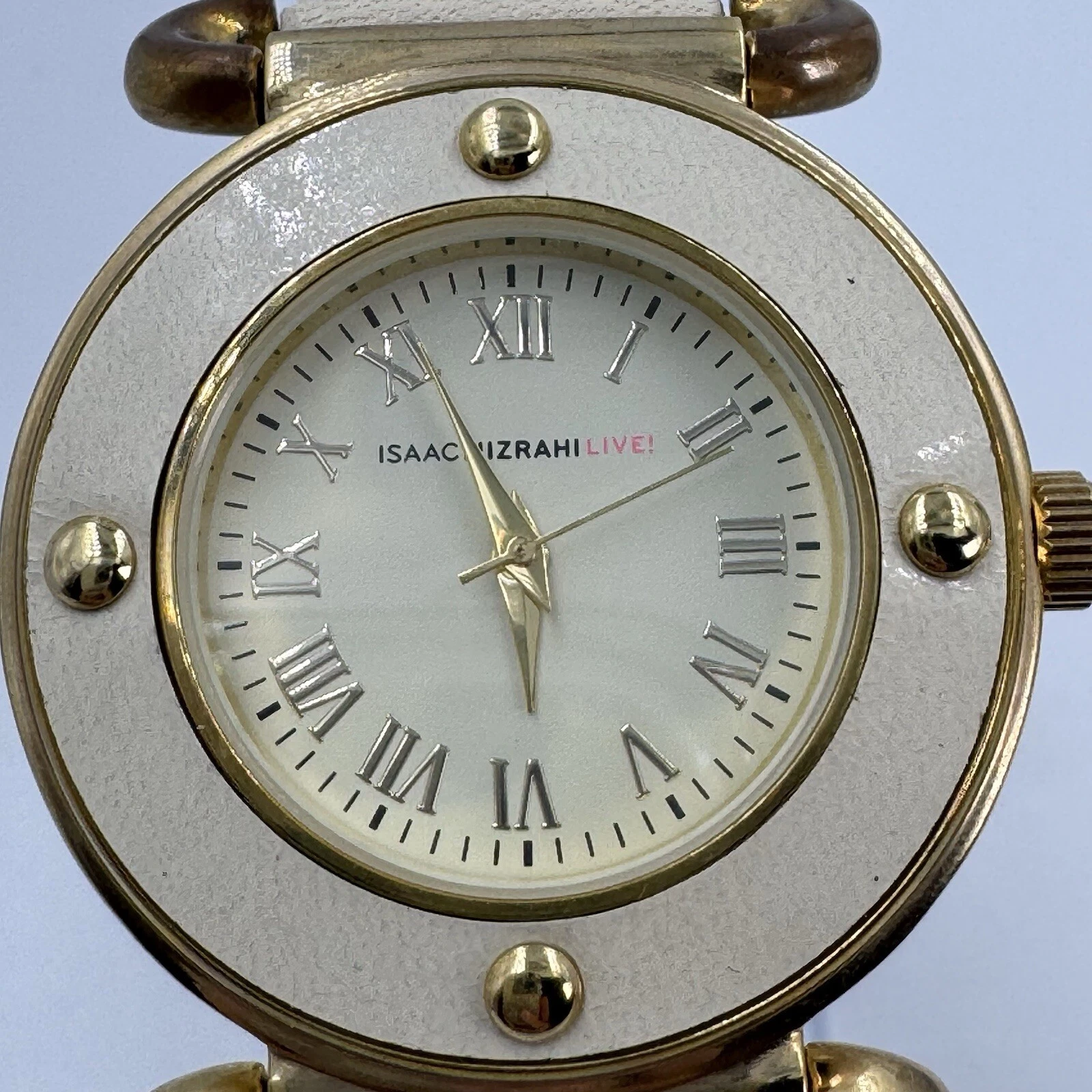 Isaac Mizrahi Live Gold & Cream Genuine Leather Quartz Analog Womens Watch Works