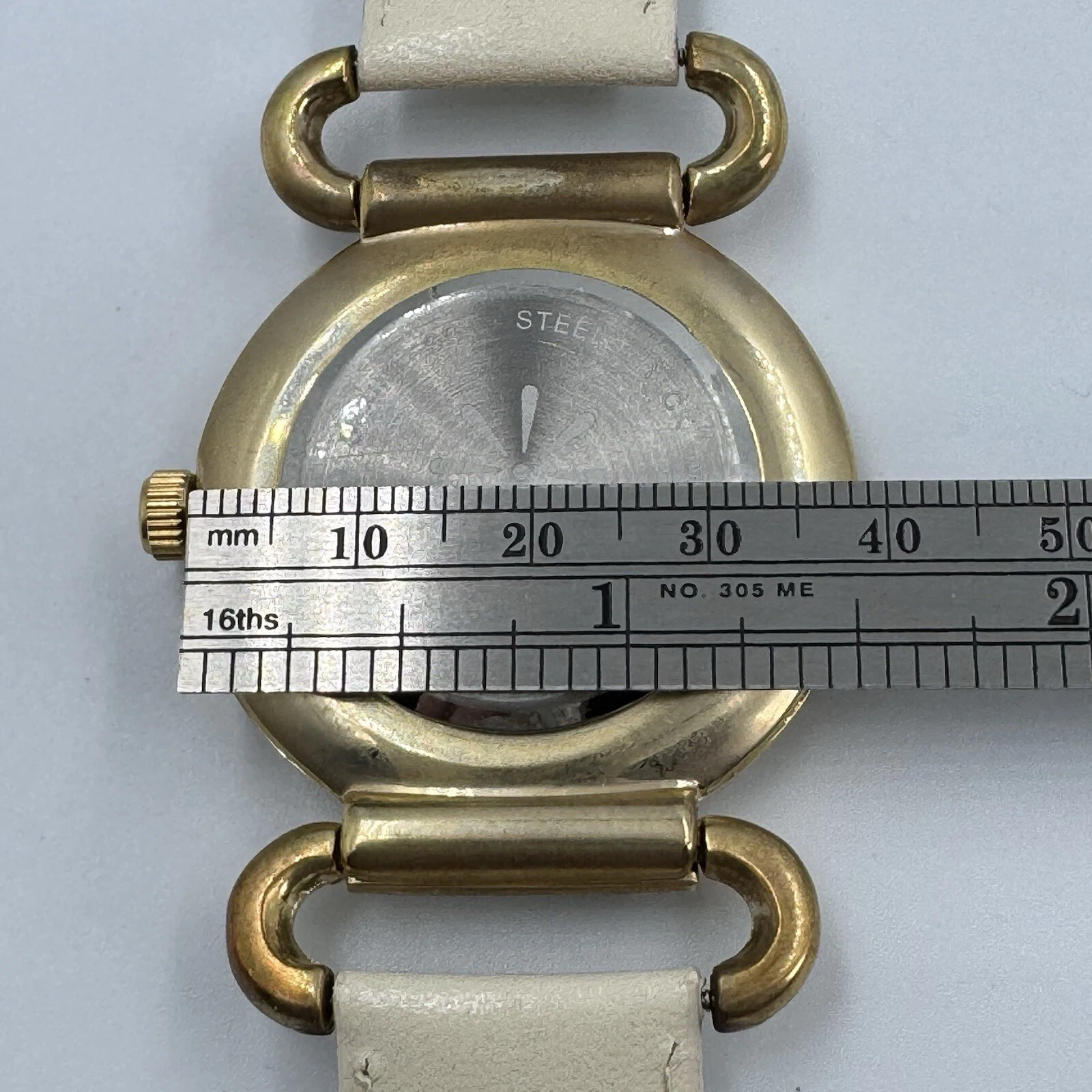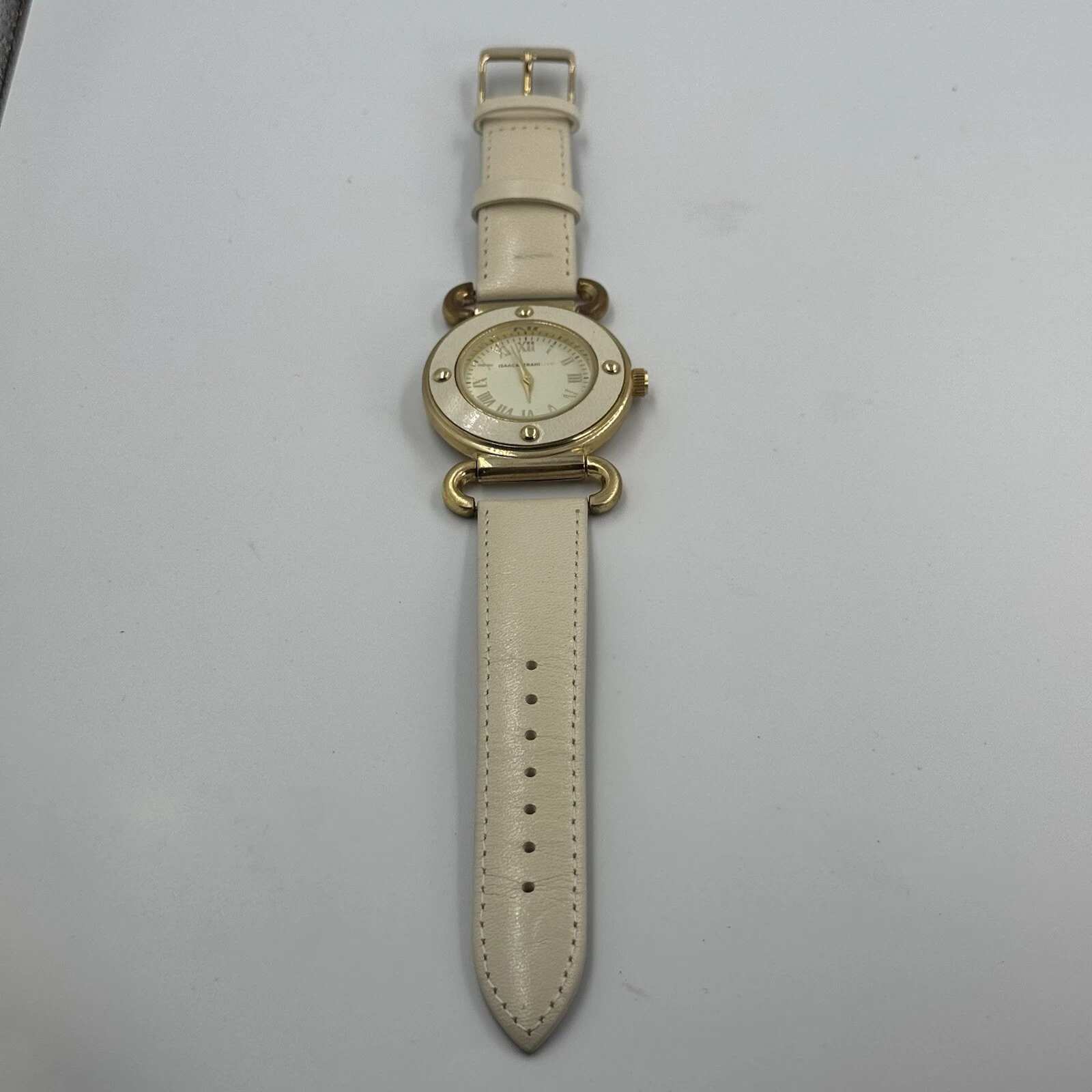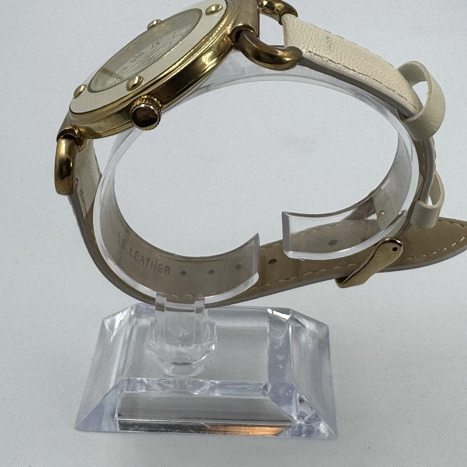 Isaac Mizrahi Live Gold & Cream Genuine Leather Quartz Analog Womens Watch Works