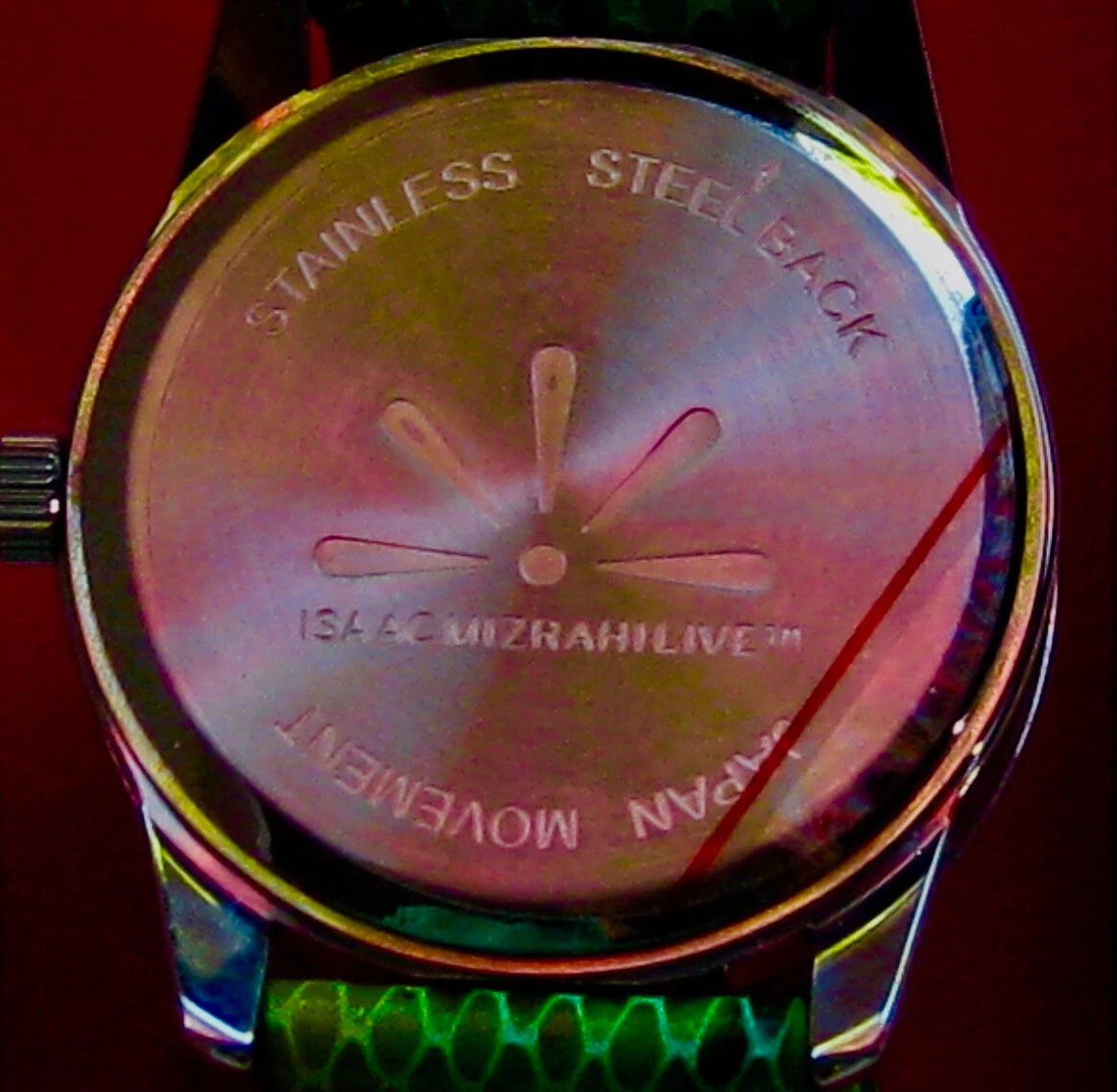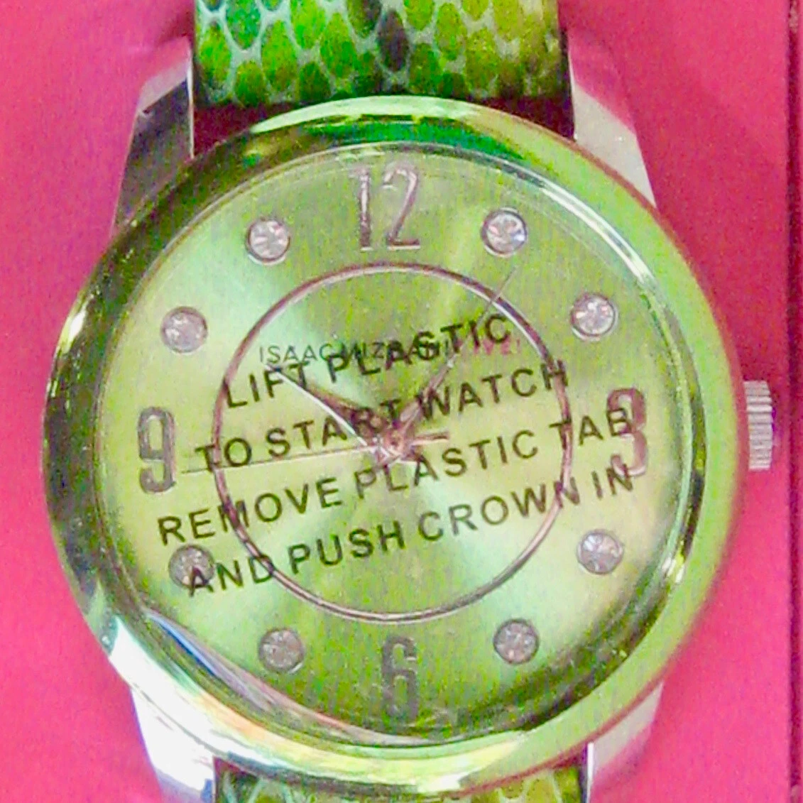 Isaac Mizrahi wrist watch with snake skin band, NEW, in original box
