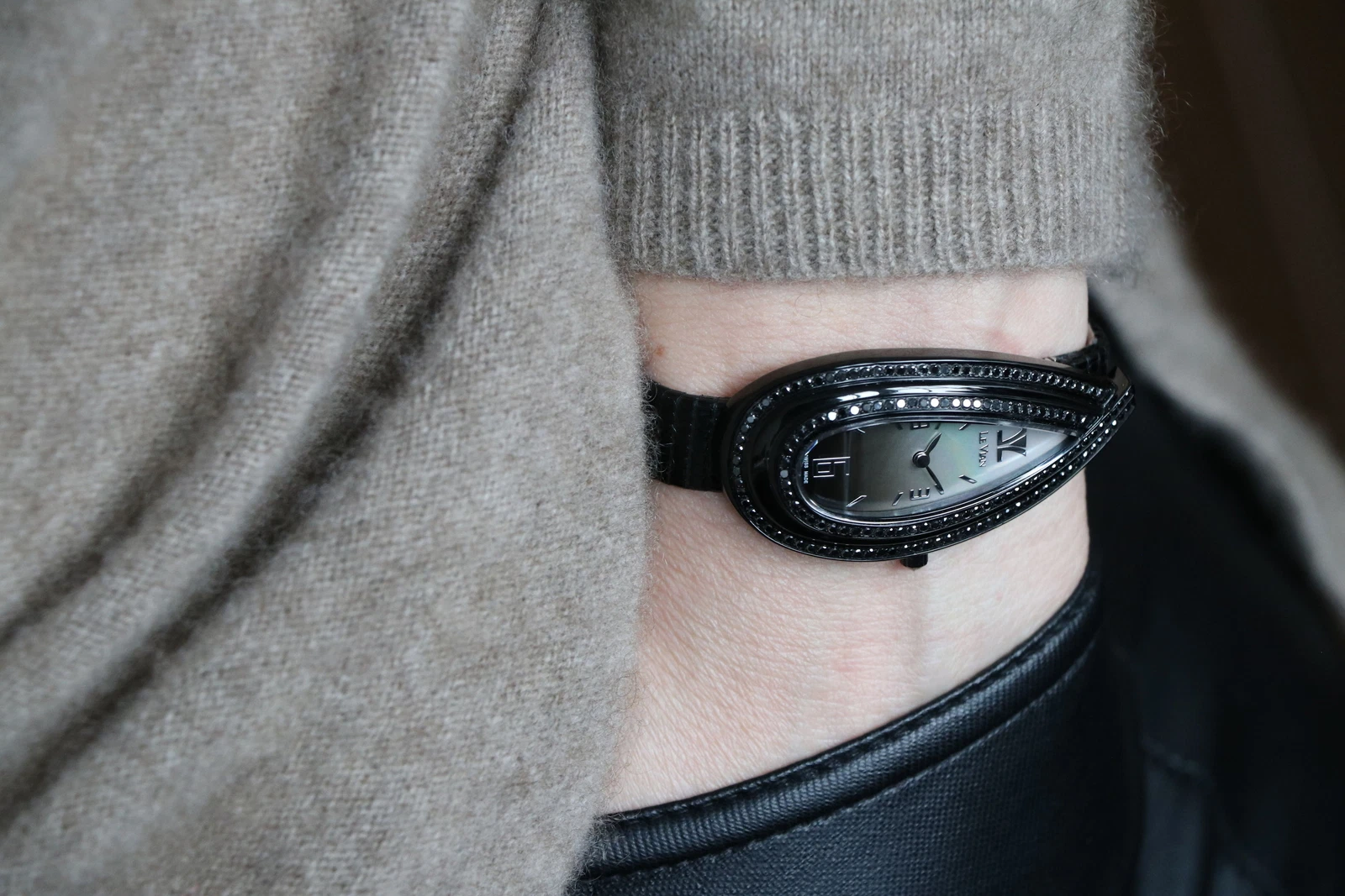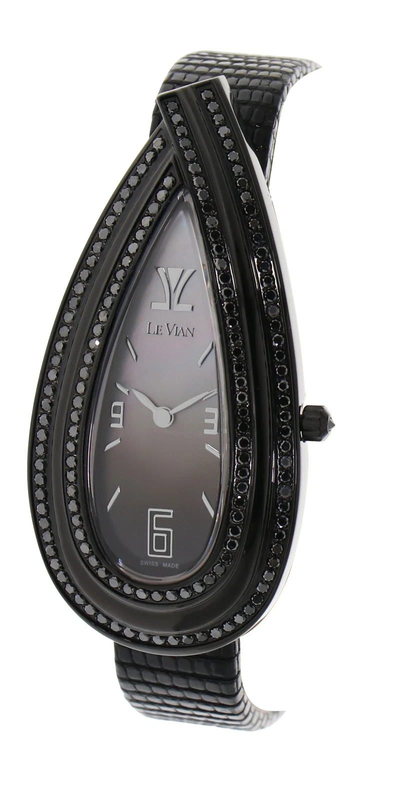 LeVian watch with Blackberry Diamonds in Stainless Steel with a Leather Band