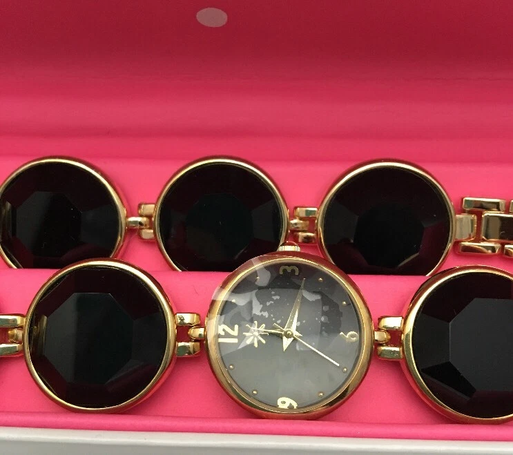 QVC Isaac Mizrahi Live! Black Jeweled Crystal Link Watch & Bracelet Set Unworn