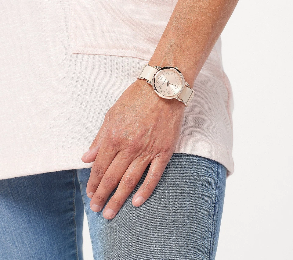 Isaac Mizrahi Live! Watch with Leather & Metal Bracelet, Cream/Island Pink: