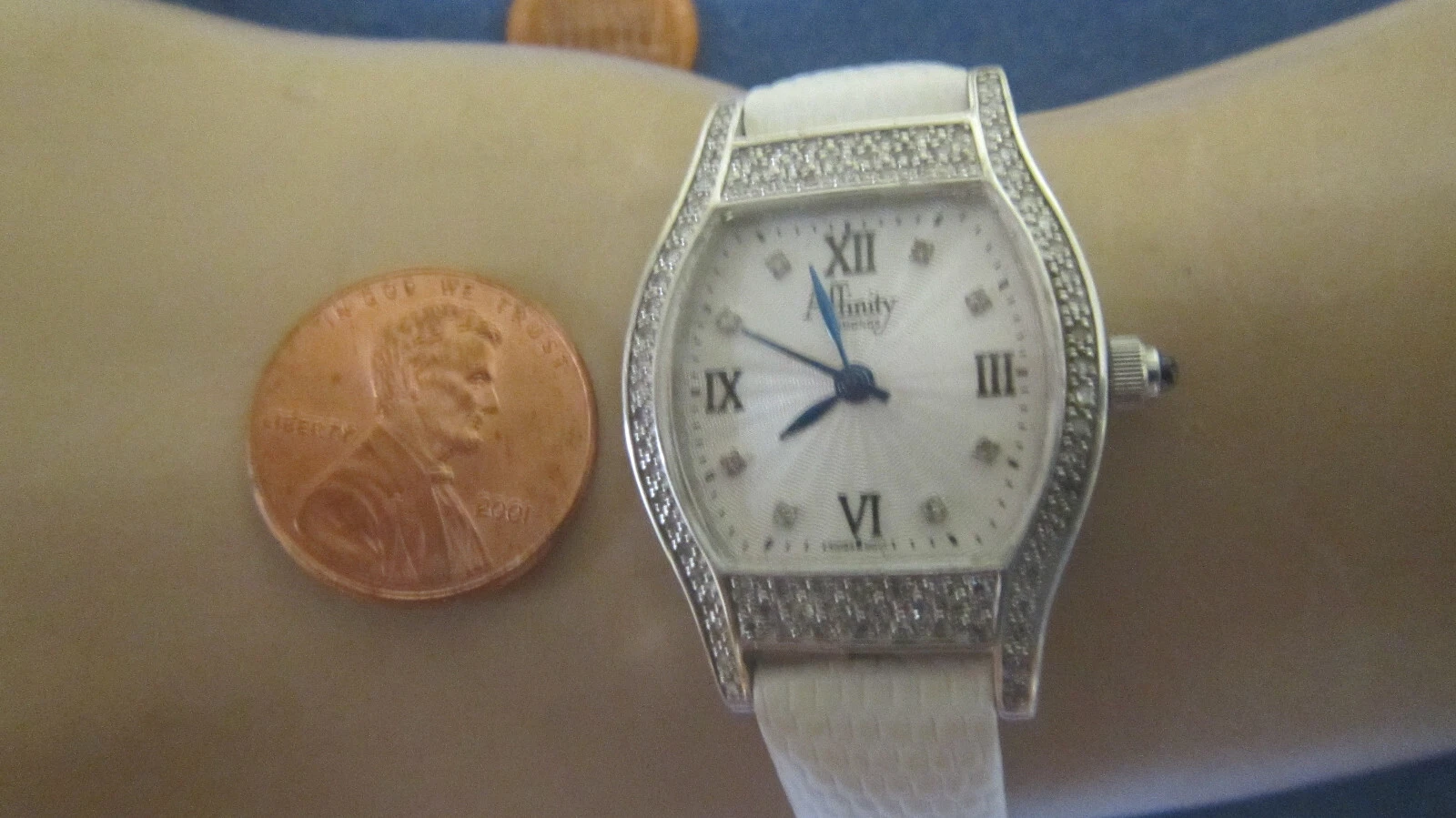 H 717  ladys sterling silver INFINITY diamond watch bracelet