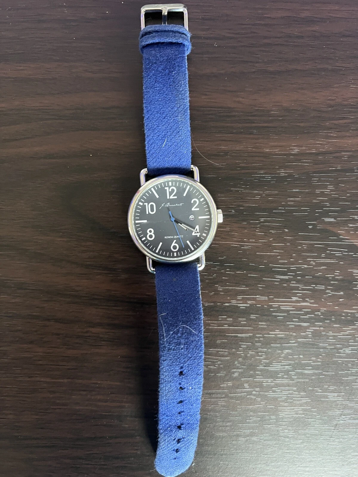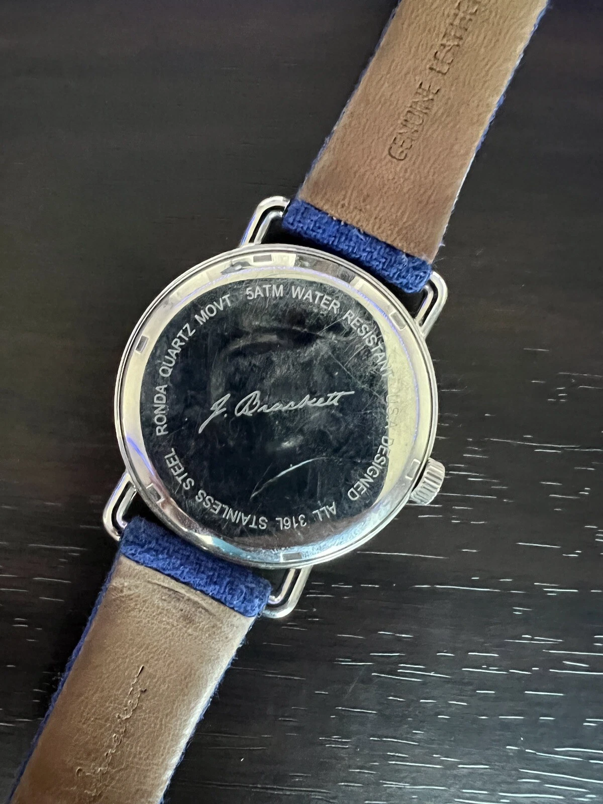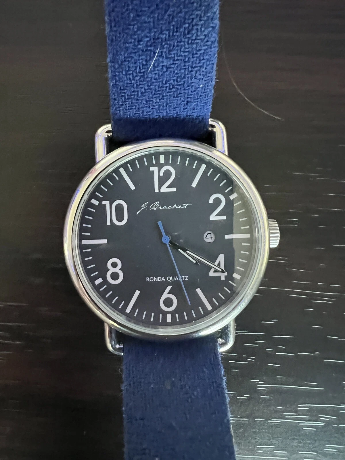 J. Brackett Camden 42 mm SS Case Gray Dial Swiss Ronda Movement Blue Wool Strap