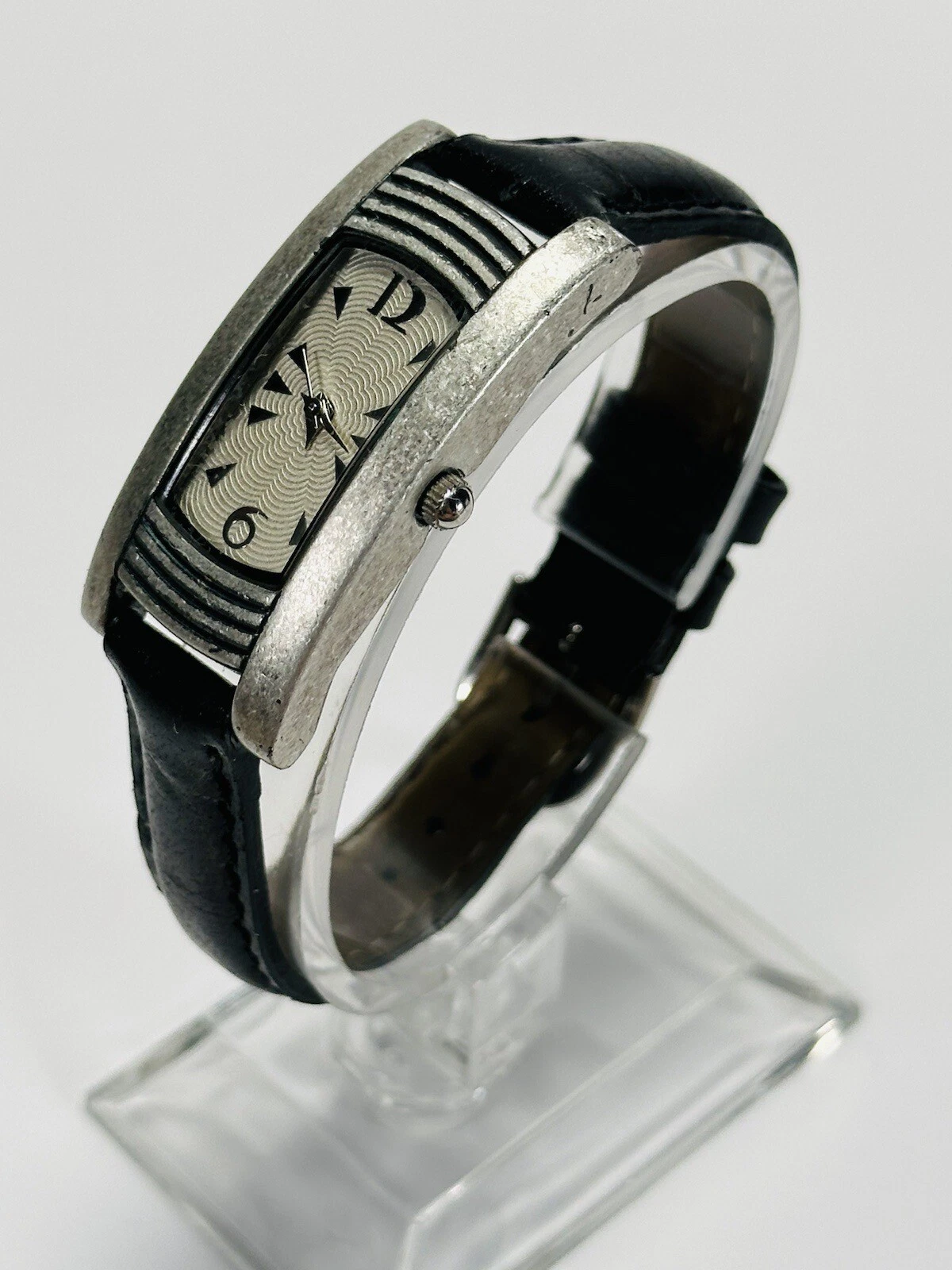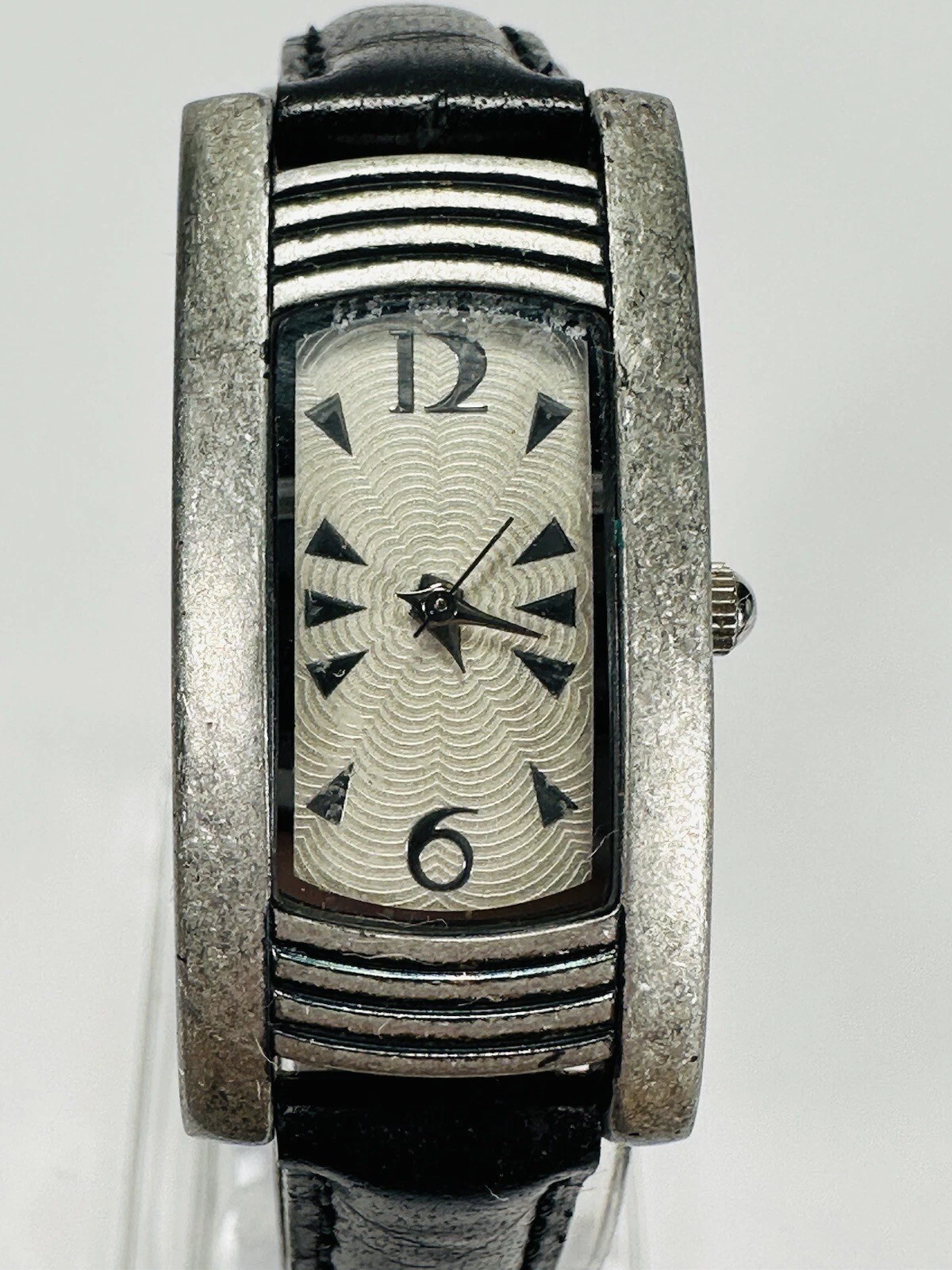 Working Vintage J Jill Ladies Silver  Watch Leather Band Rectangle Dial W3
