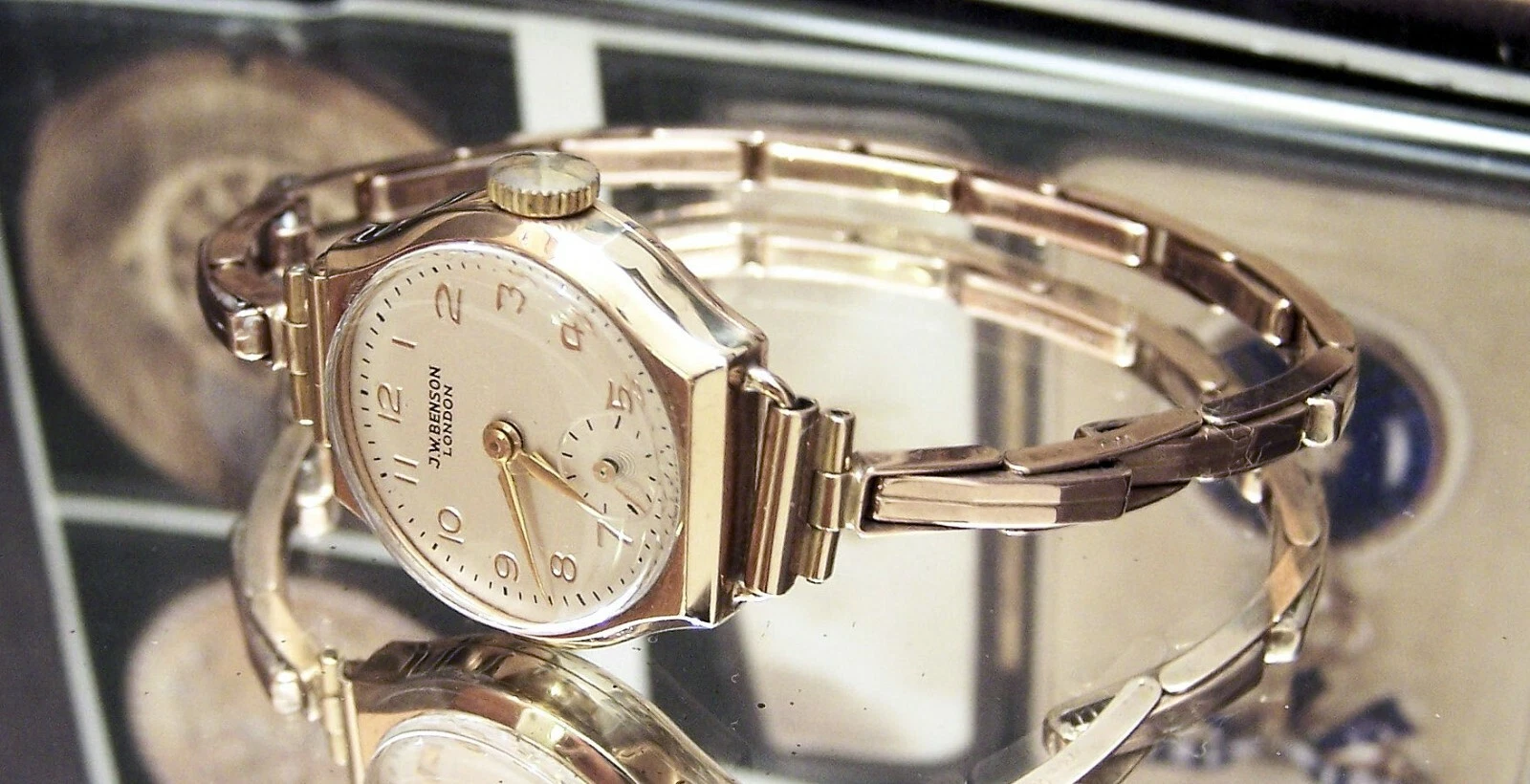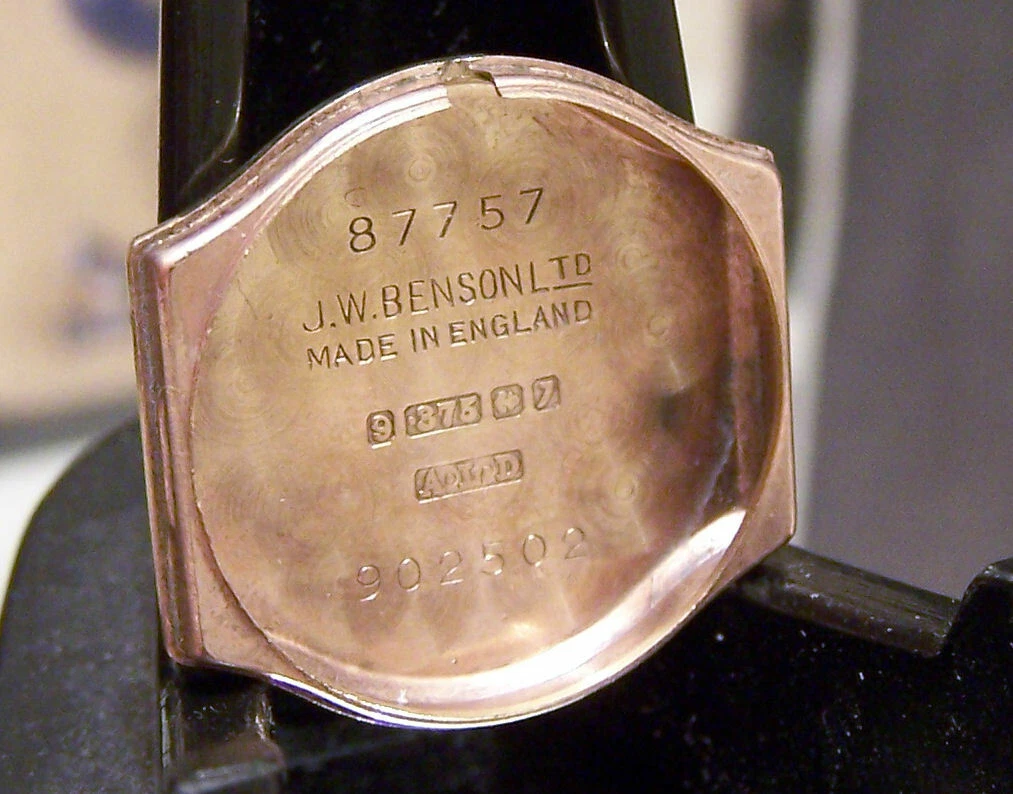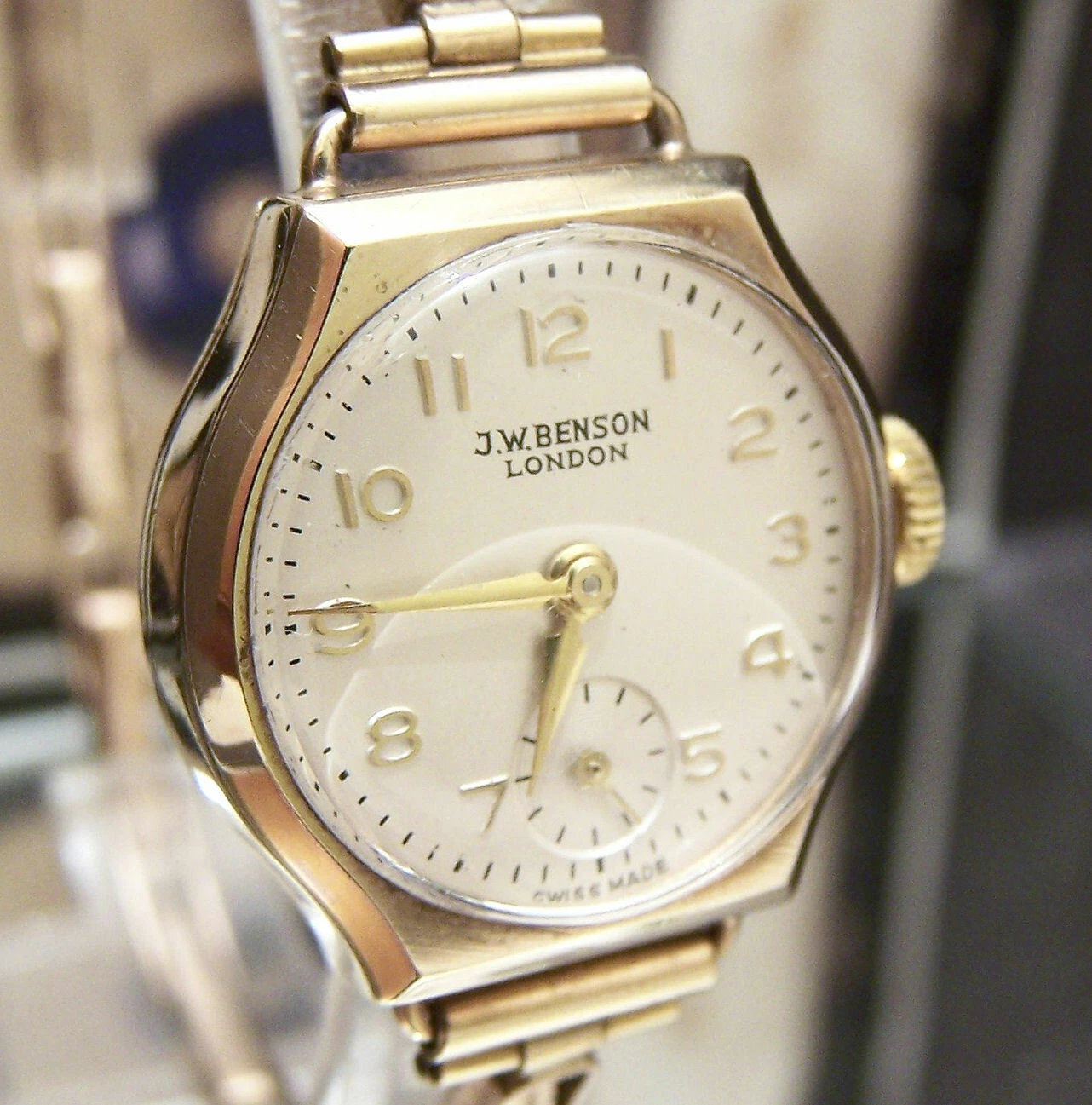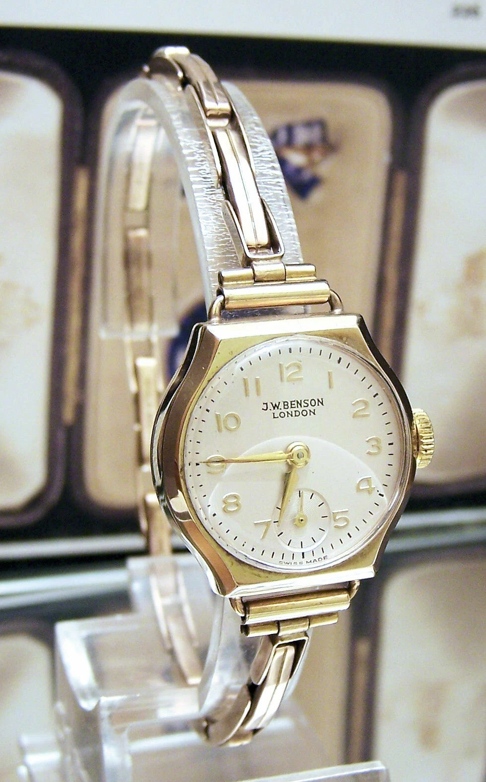 ANTIQUE VINTAGE STUNNING J W BENSON SOLID GOLD WATCH & BAND + BOX AND PAPER