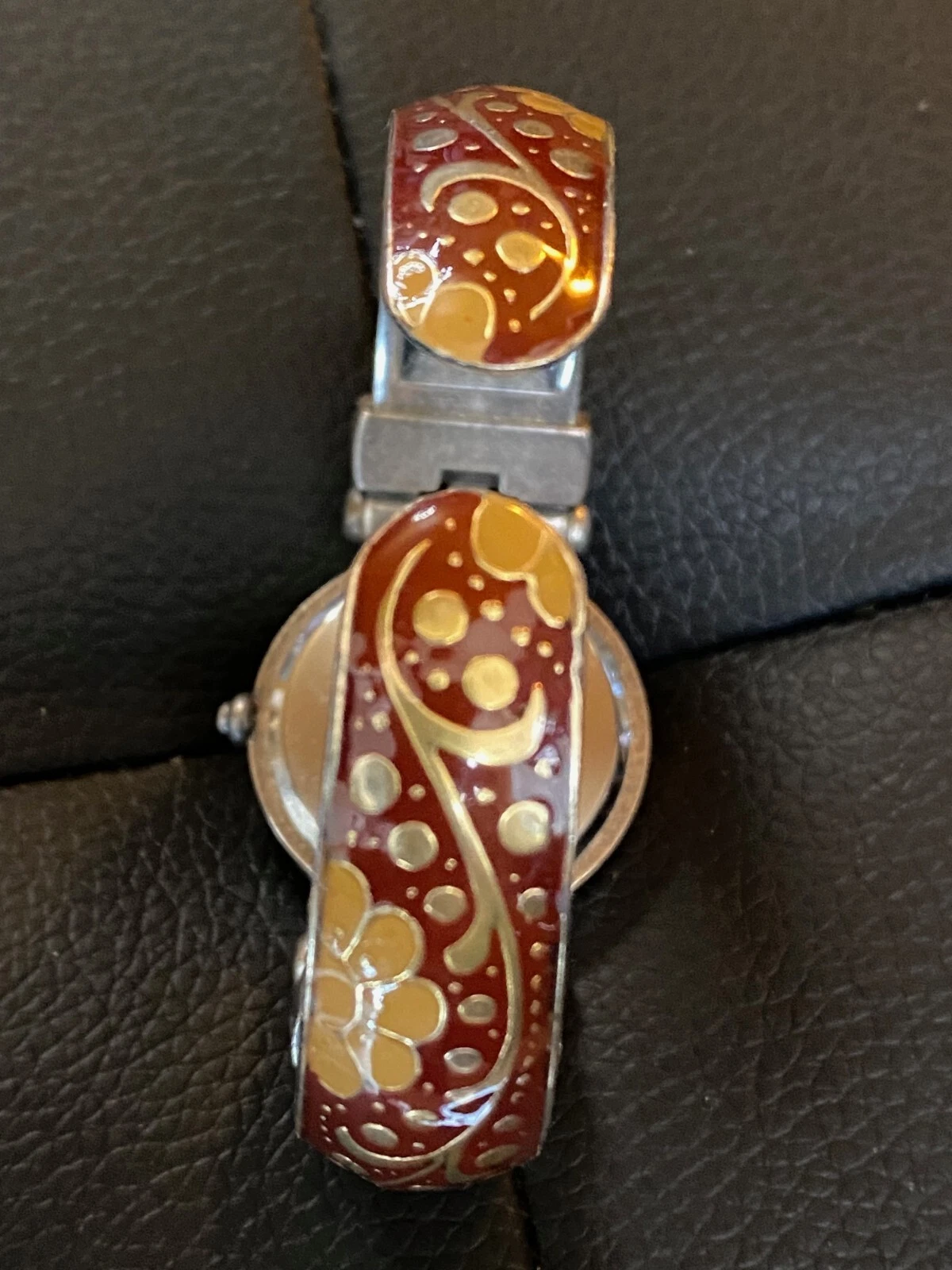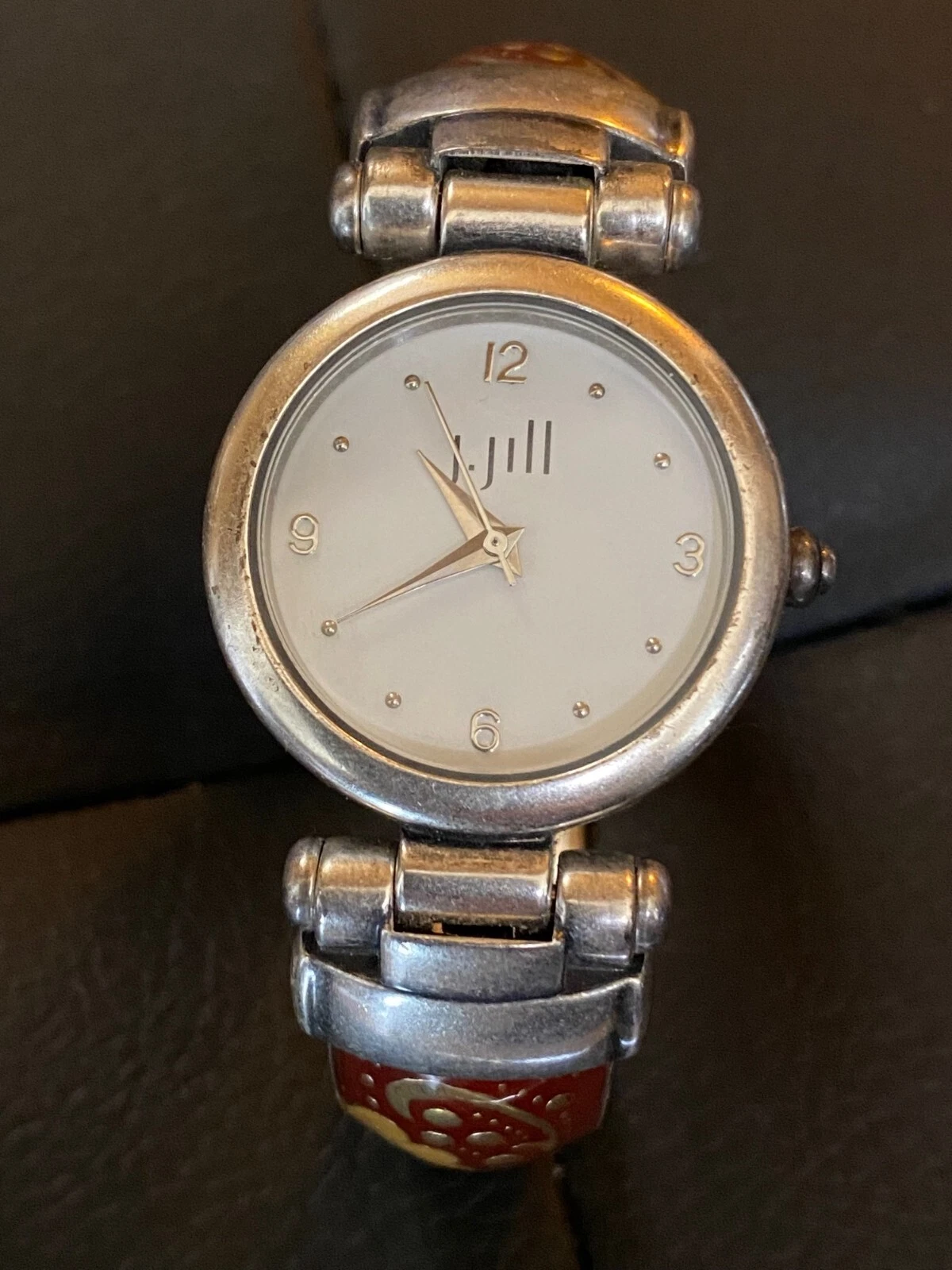 J. Jill Floral Enameled Bracelet Cuff Women's Wrist Watch - Silver toned with Pr