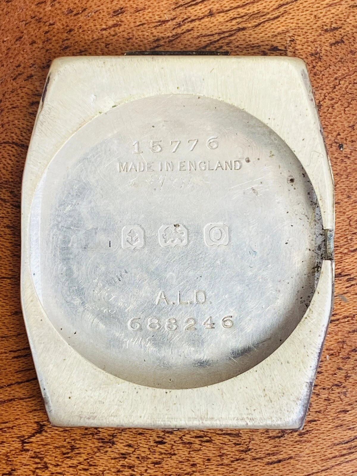 JW Benson London 1938 Art Deco Sterling Silver, Flared, Rectangular Watch.